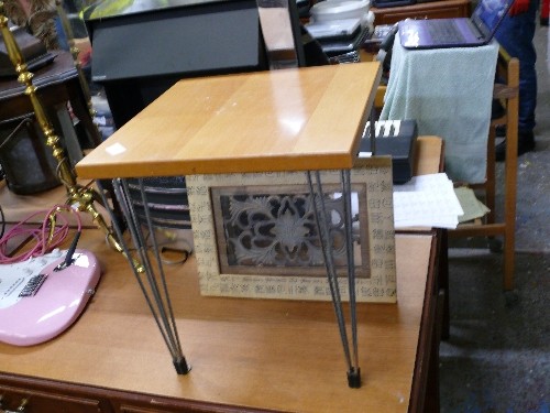 MODERN SQUARE METAL LEGGED OCCASIONAL TABLE.