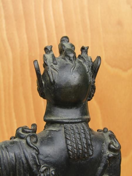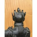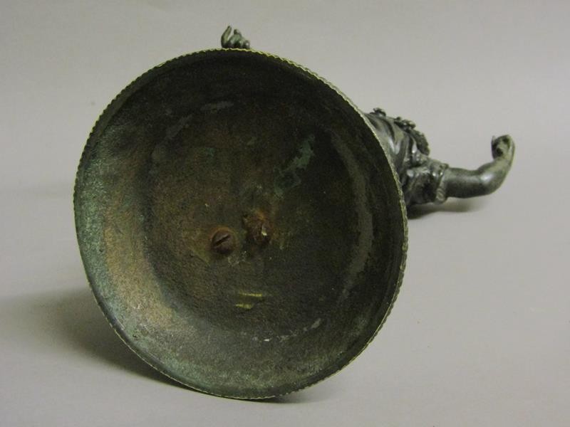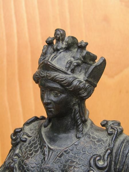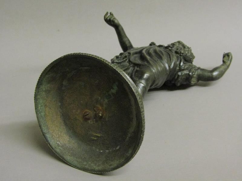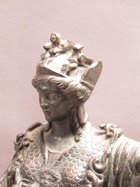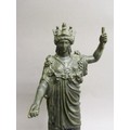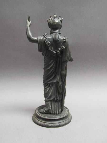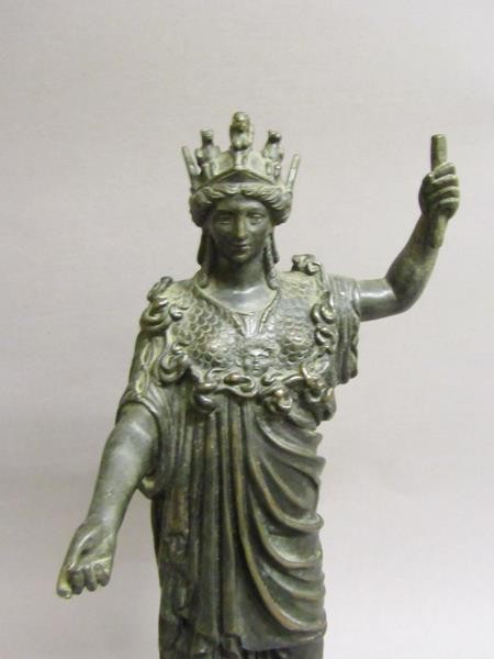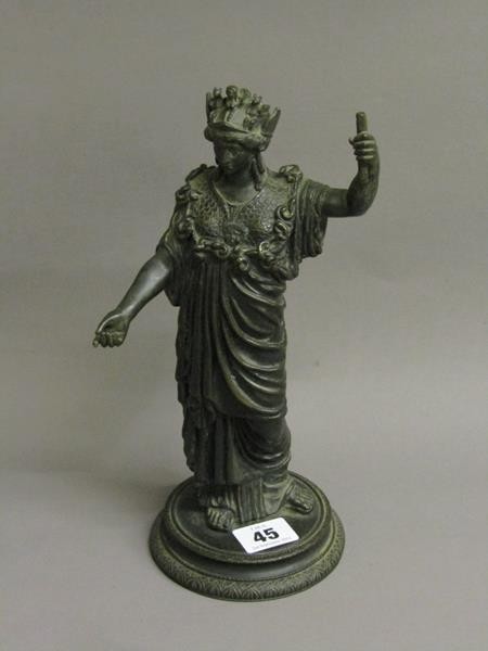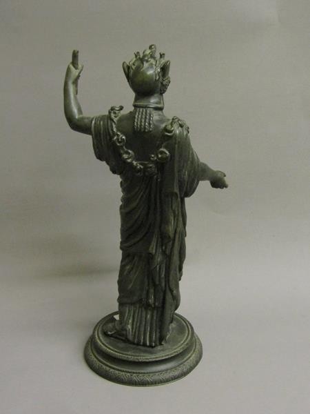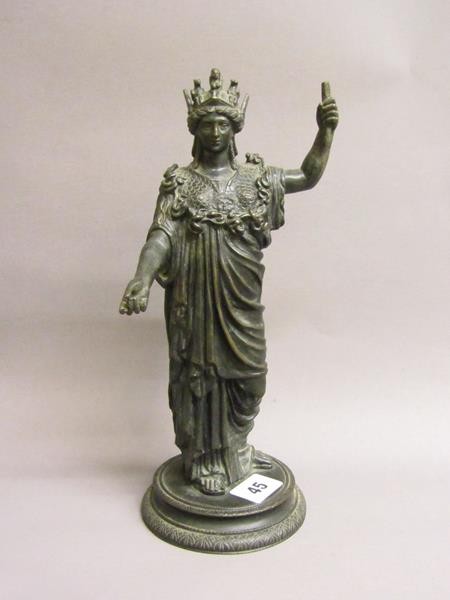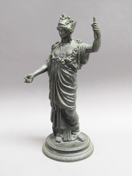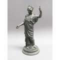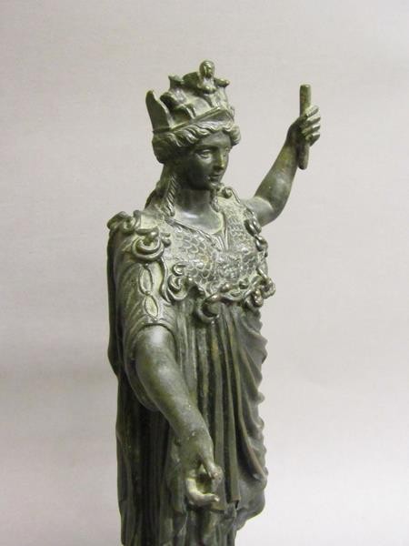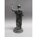 A 19c patinated bronze figure of Athena, Goddess of War, on a circular stepped base, 28cm h.