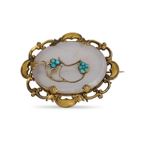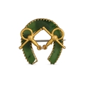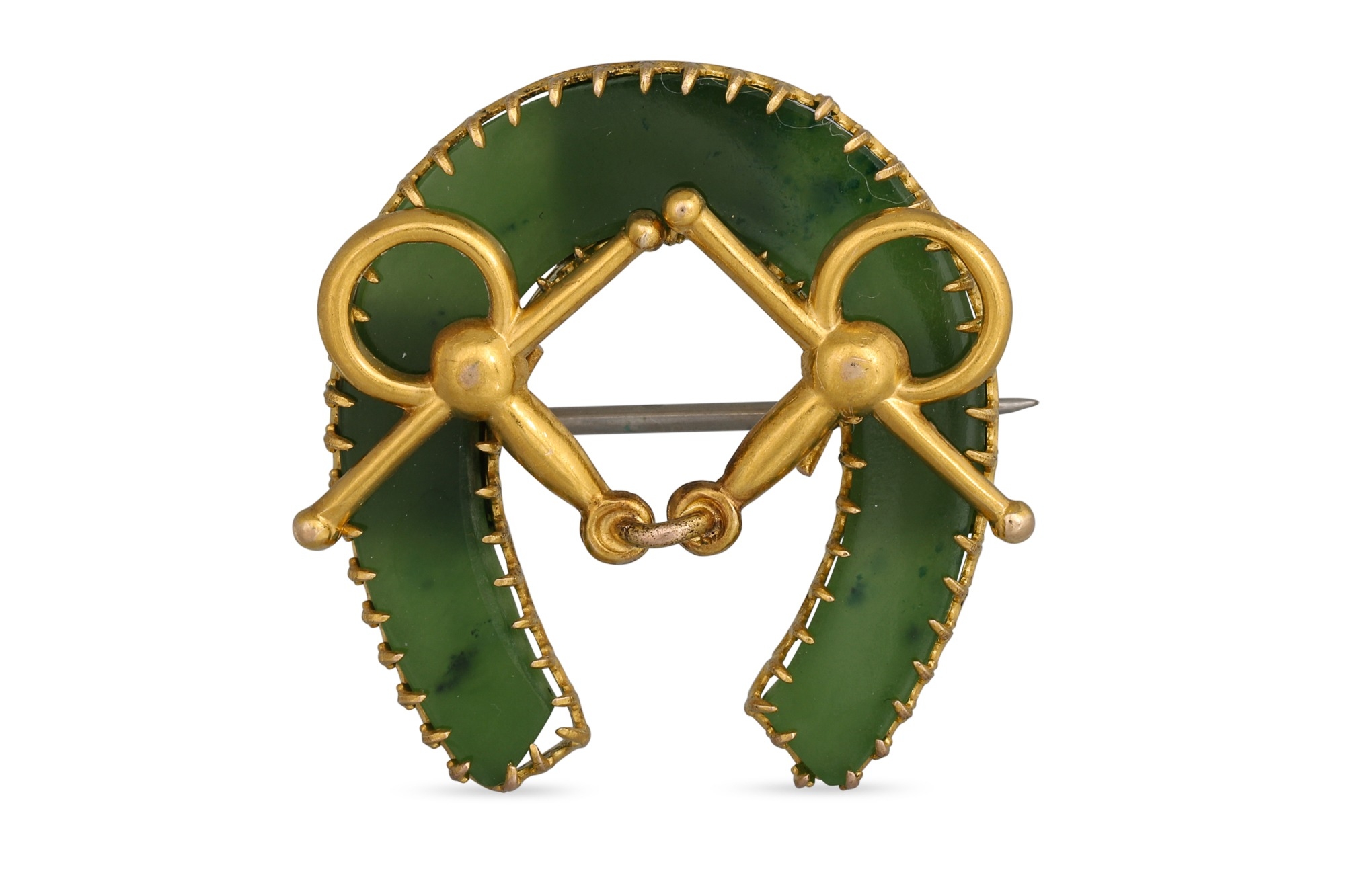 AN ANTIQUE HORSE SHOE BROOCH, set with agate, brooch pin not gold. Approx 1" x 1"