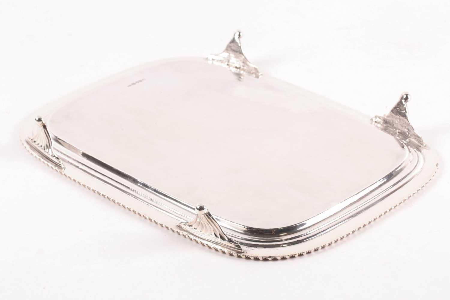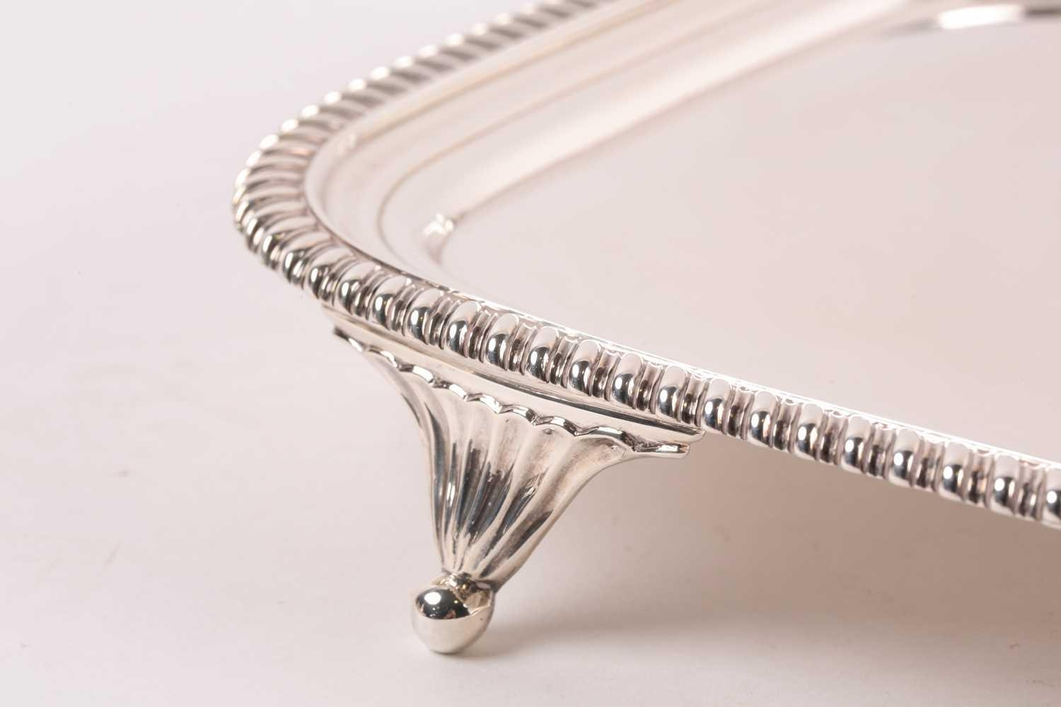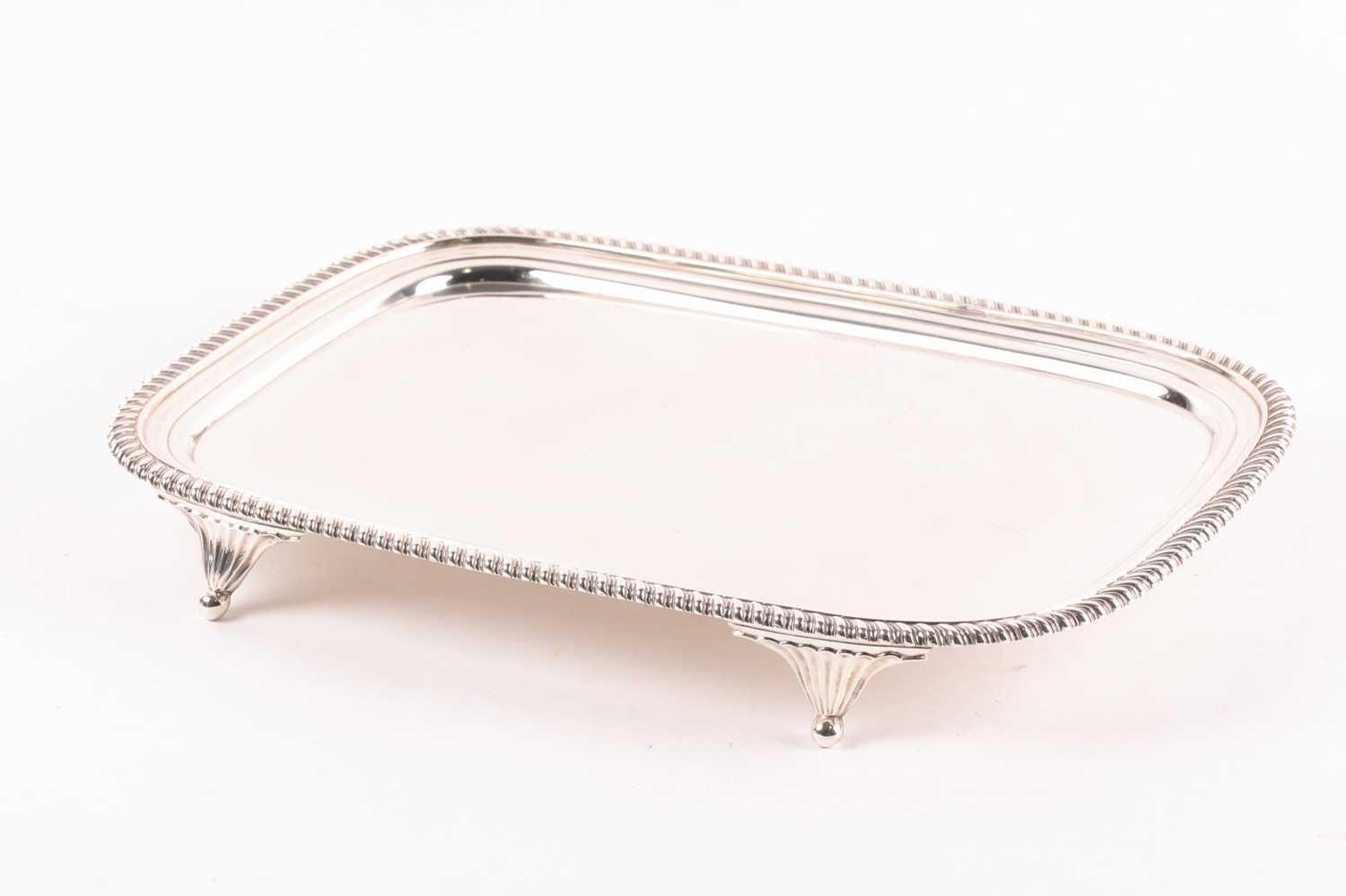 A George III rectangular silver salver. London 1812 William Bennet, with raised gadrooned border on four fluted bracket feet with ball terminals 37 x 26.5cm - 45ozt