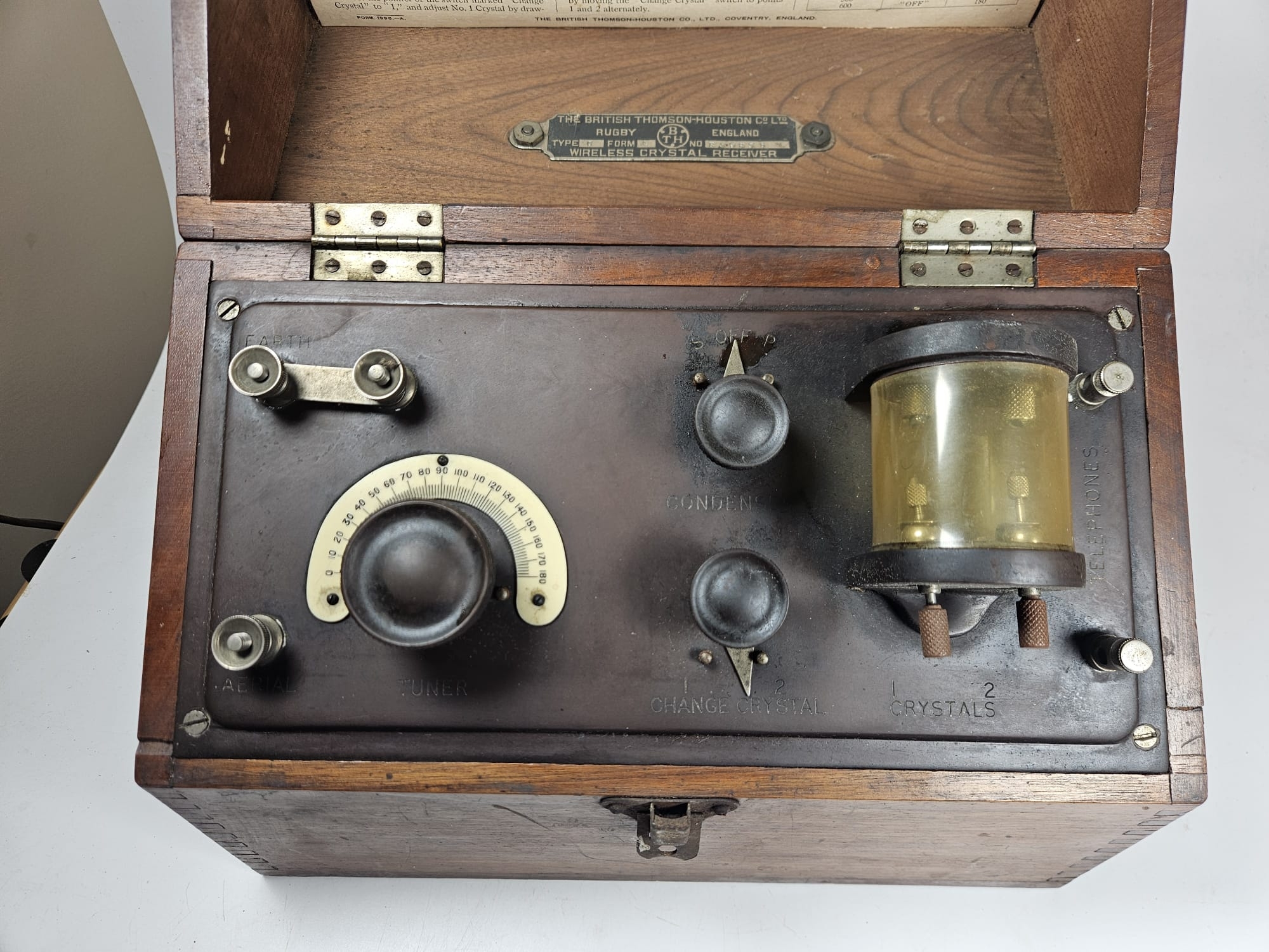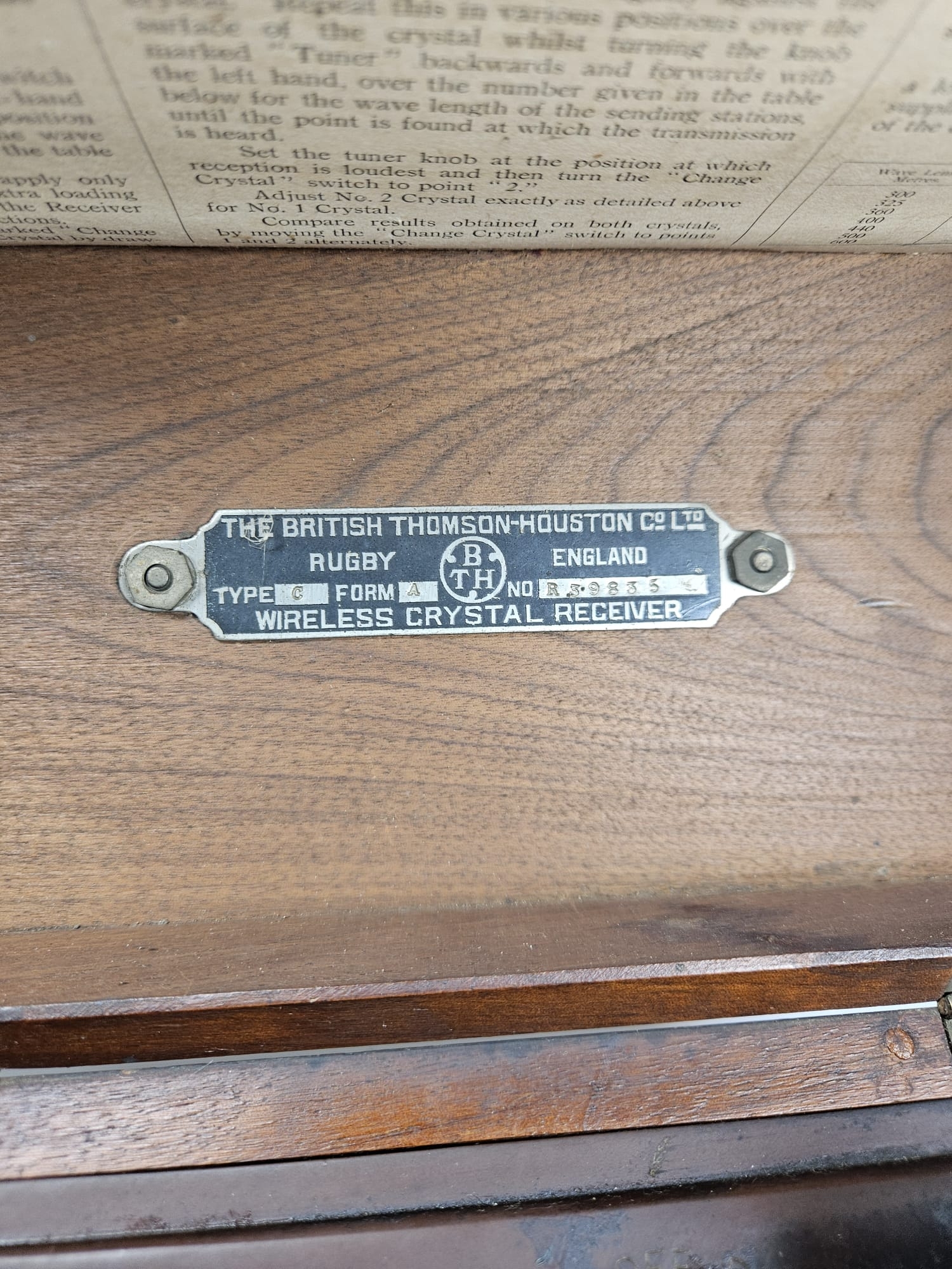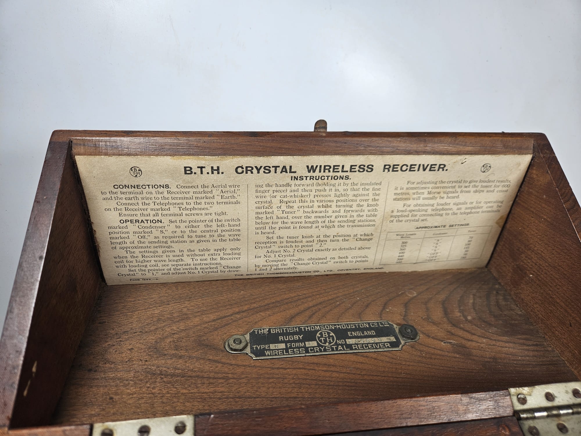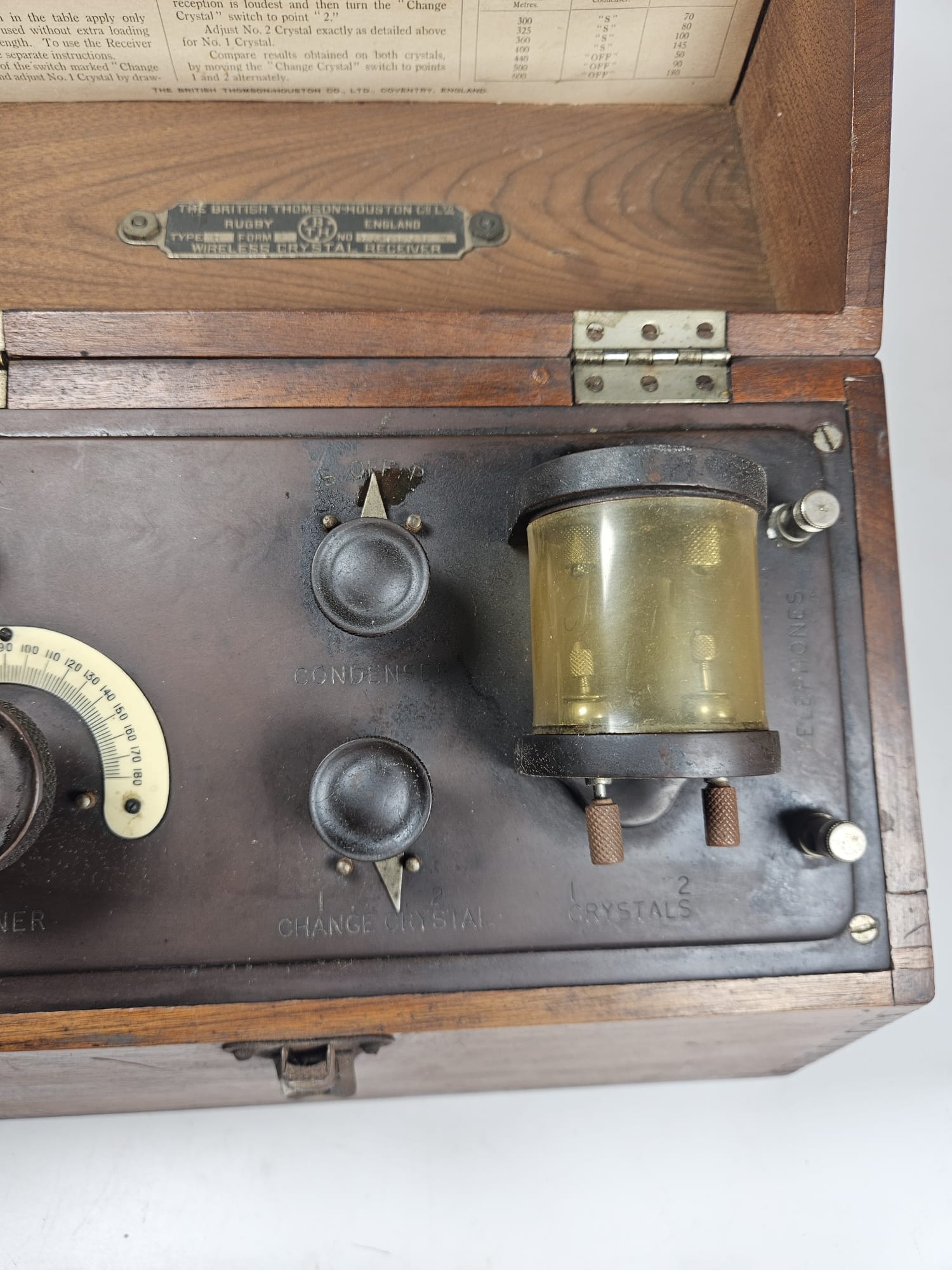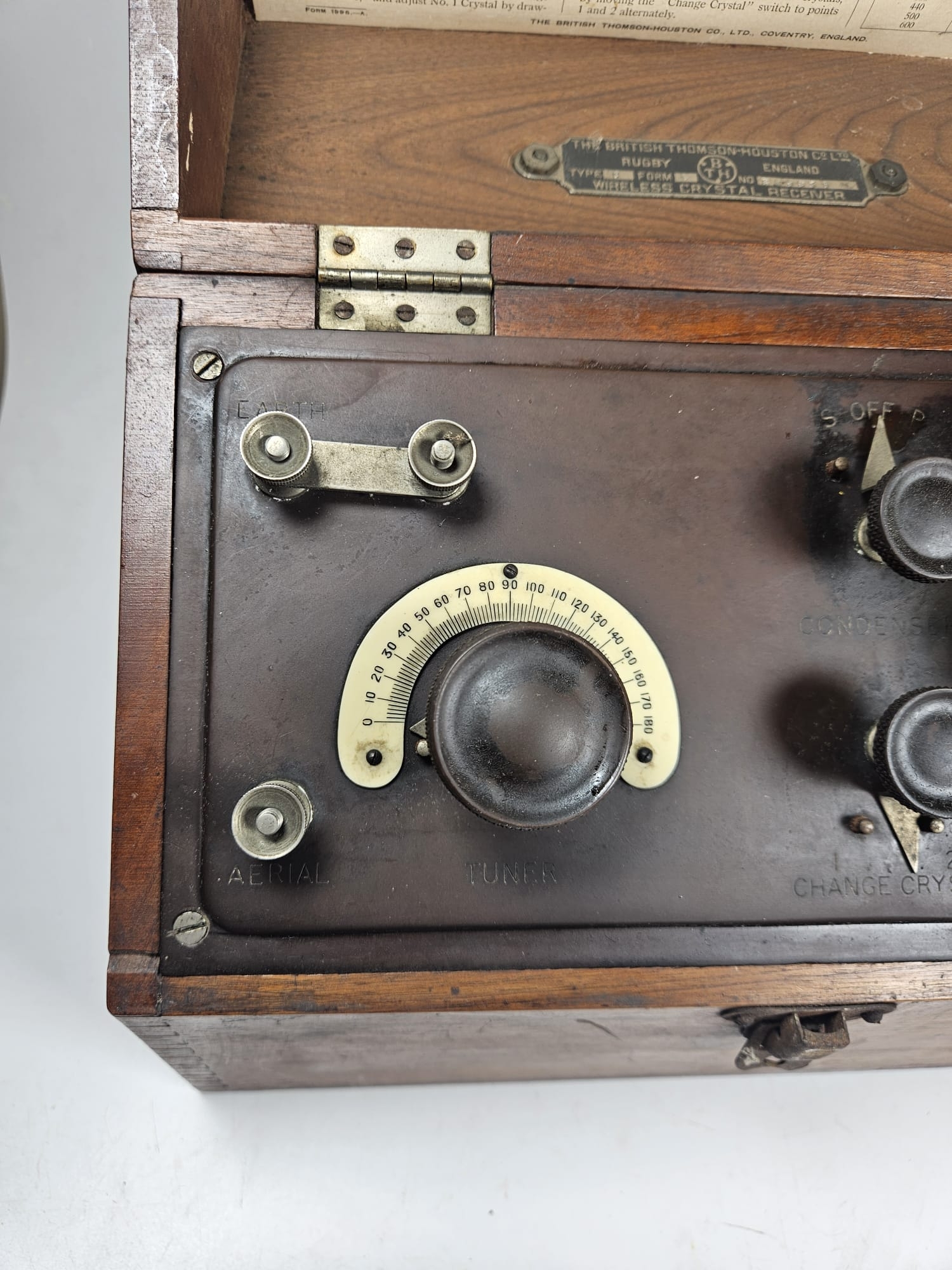The British Thomson Houston co ltd (B.T.H), Crystal Wireless Receiver. In wooden case, measuring 29x13x21cm. Type C Form A. No.R39835.