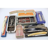 6 x Antique / Vintage Gents Grooming RAZORS Inc Cased, Gillette, Wardonia Etc