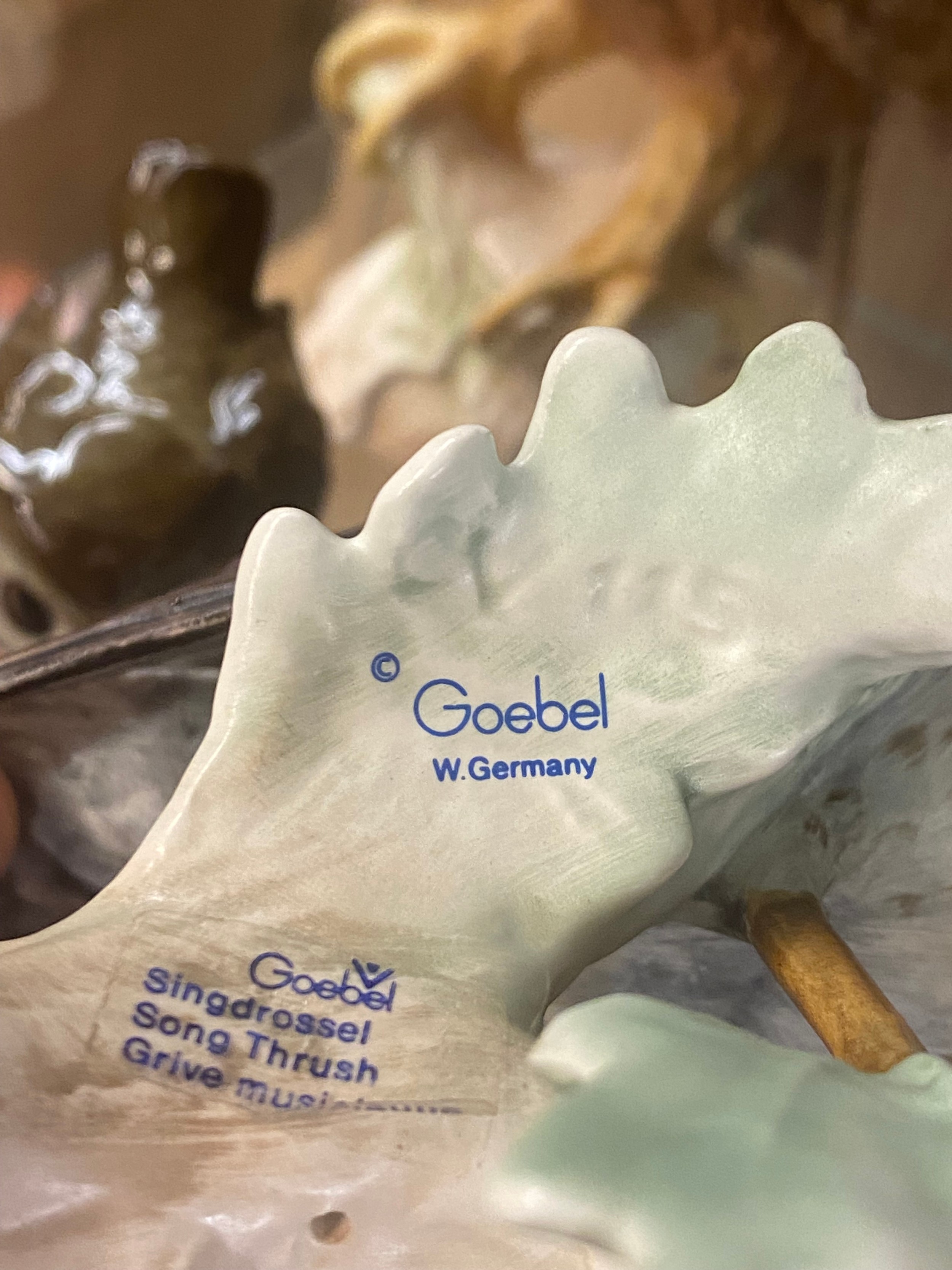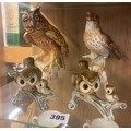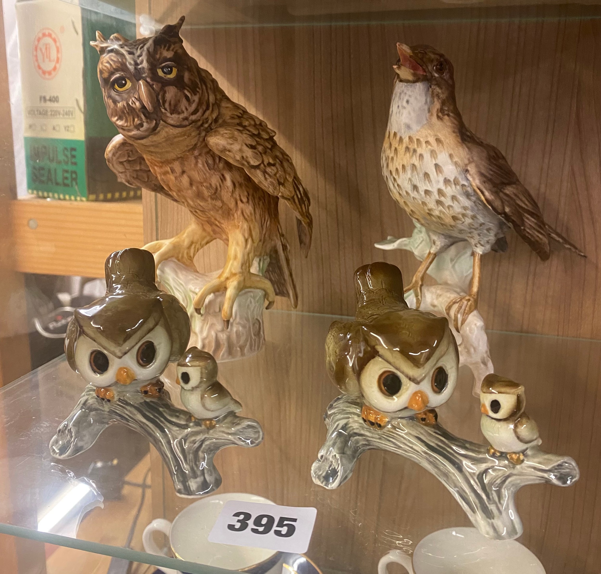GOEBAL SONG THRUSH, SCREECH OWL, AND TWO NOVELTY OWLS ON BRANCH FIGURES
