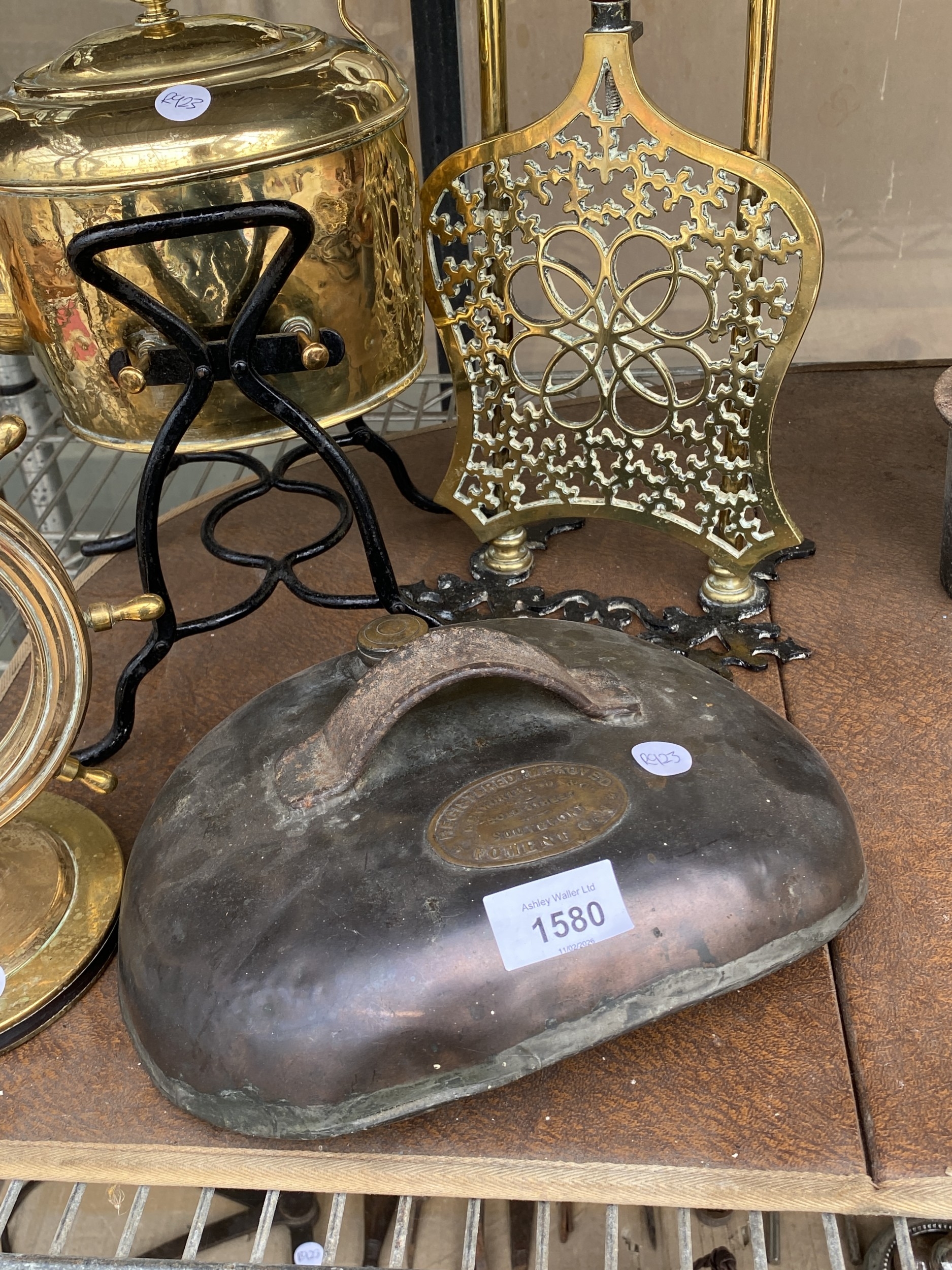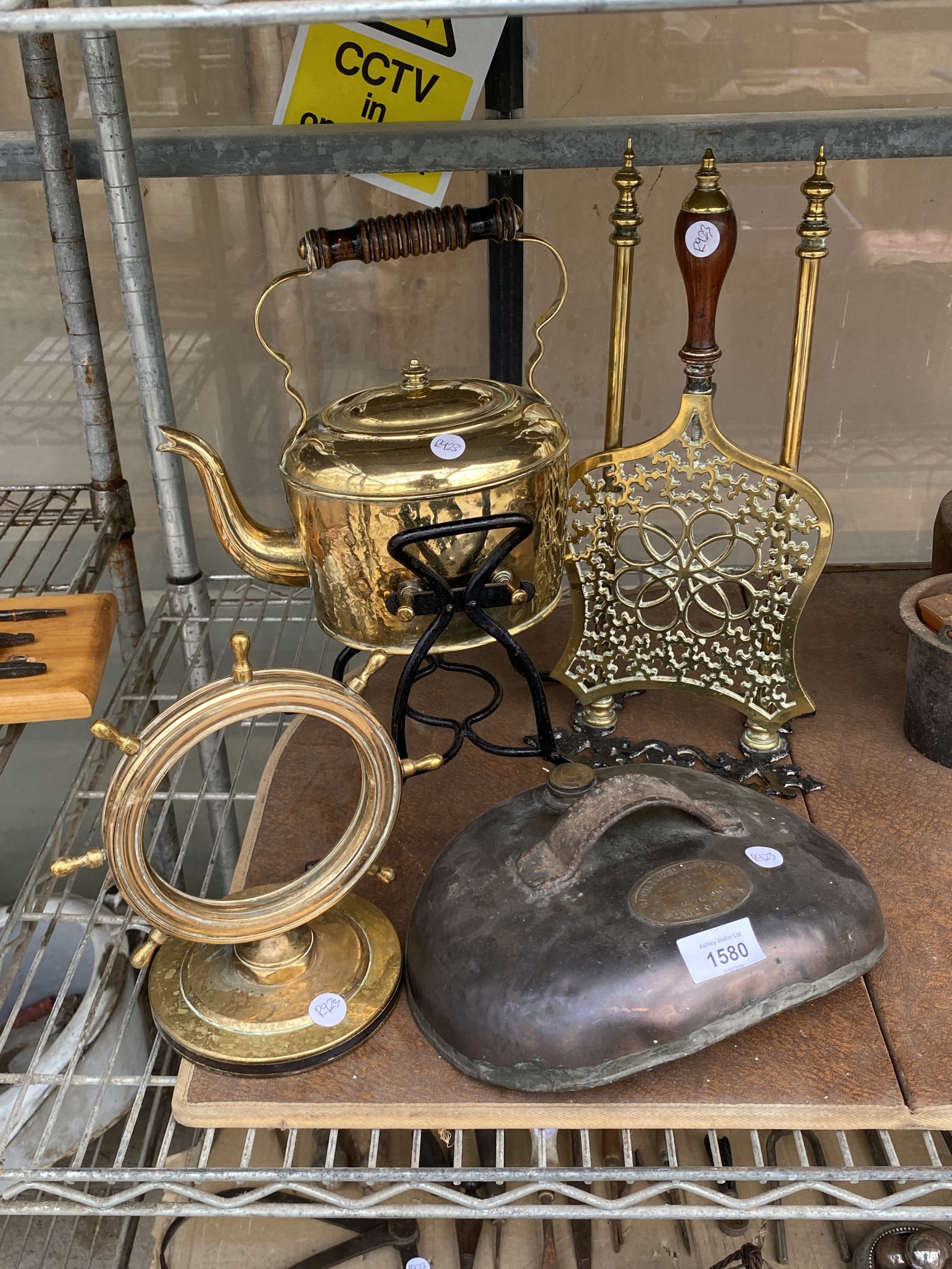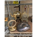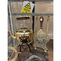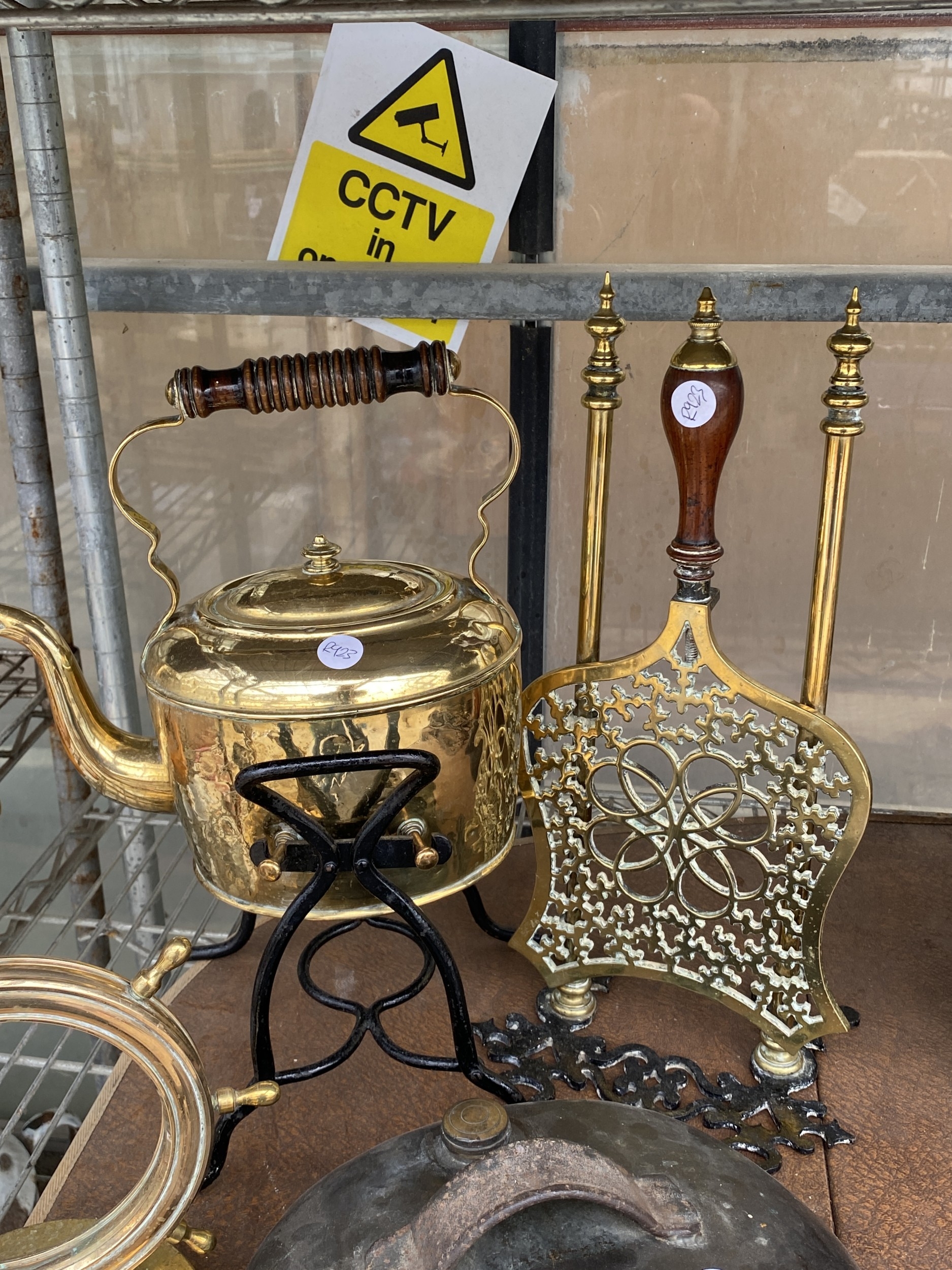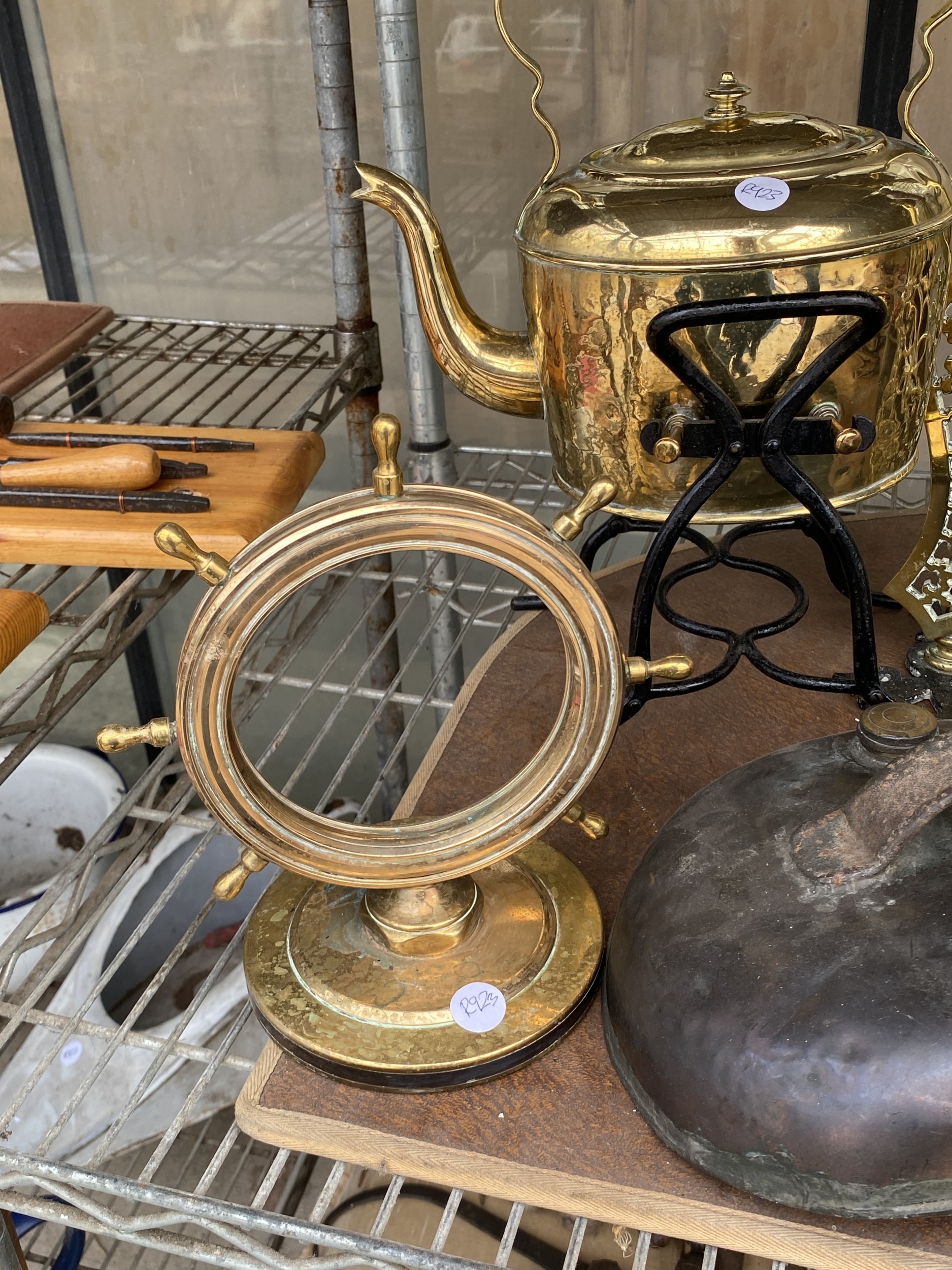 AN ASSORTMENT OF ITEMS TO INCLUDE A BRASS KETTLE WITH TRIVET...