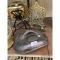 AN ASSORTMENT OF ITEMS TO INCLUDE A BRASS KETTLE WITH TRIVET, A COPPER HOT WATER BOTTLE AND A FURTHER BRASS STAND ETC