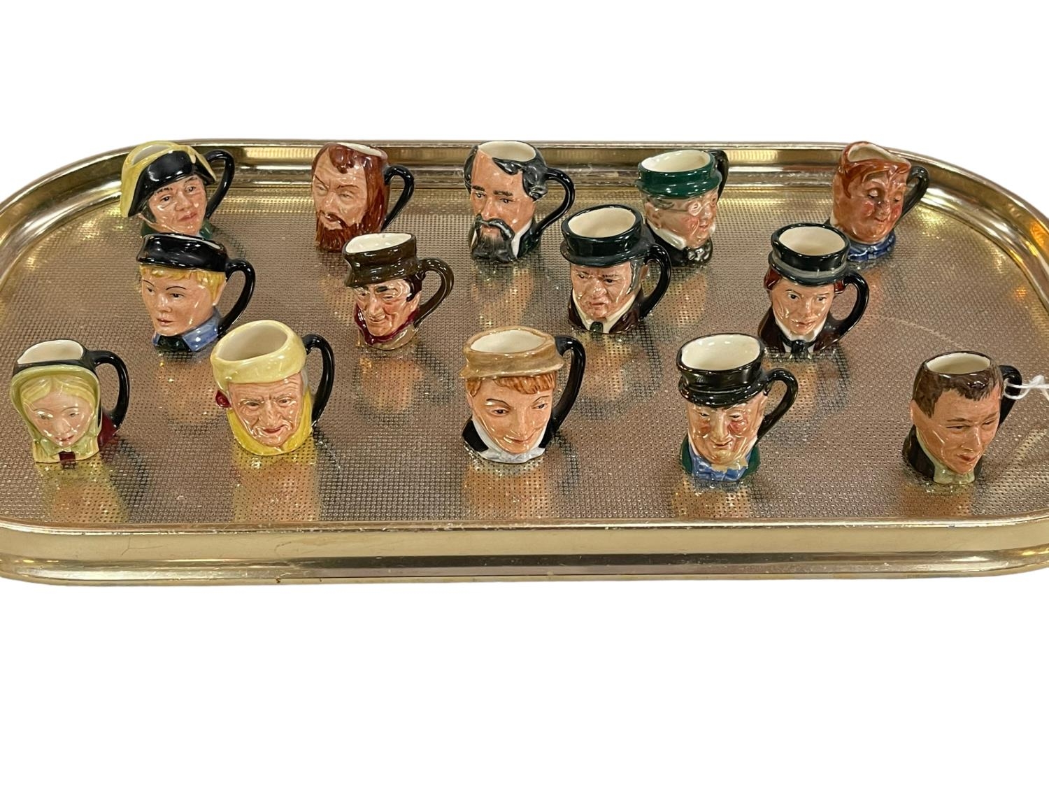 Collection of fourteen miniature Royal Doulton character jugs.