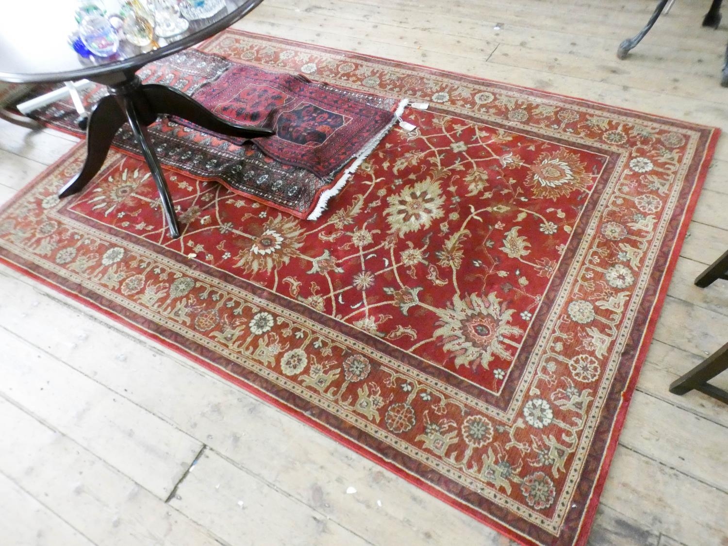 A red and patterned Persian design wool pile rug, 94 x 67" approximately