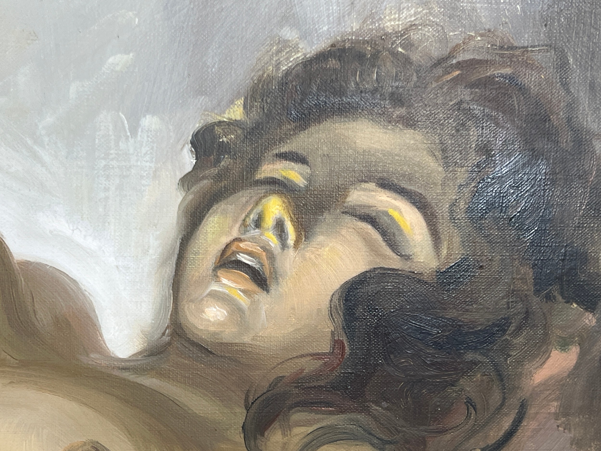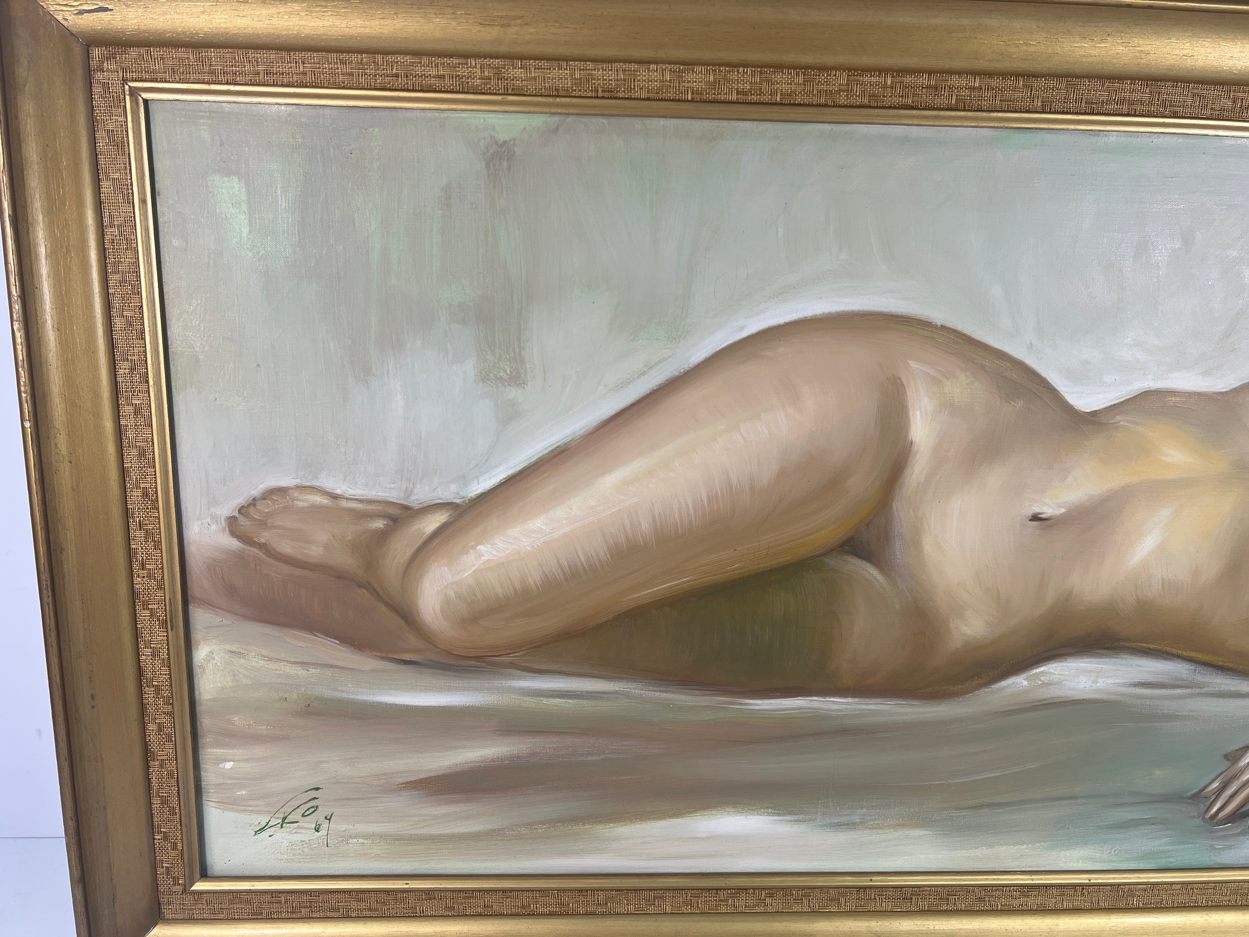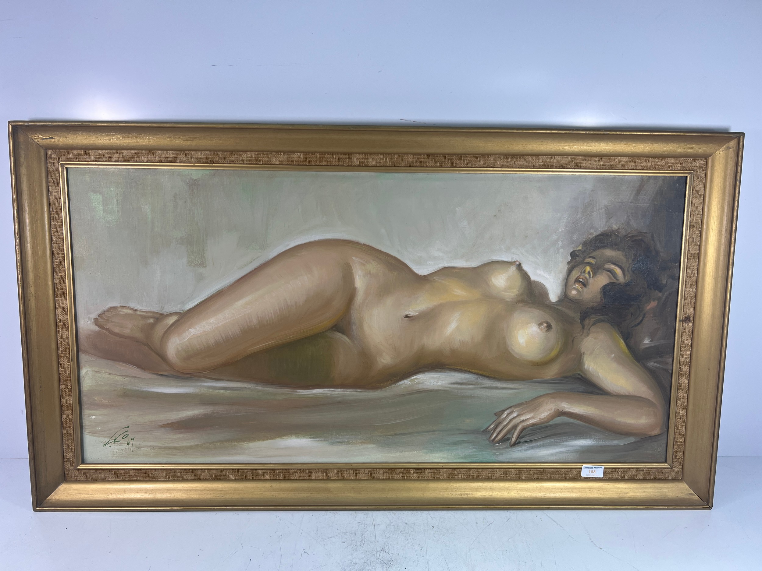 Large oil on canvas of a nude lady signed and dated 69, 114 x 63cms