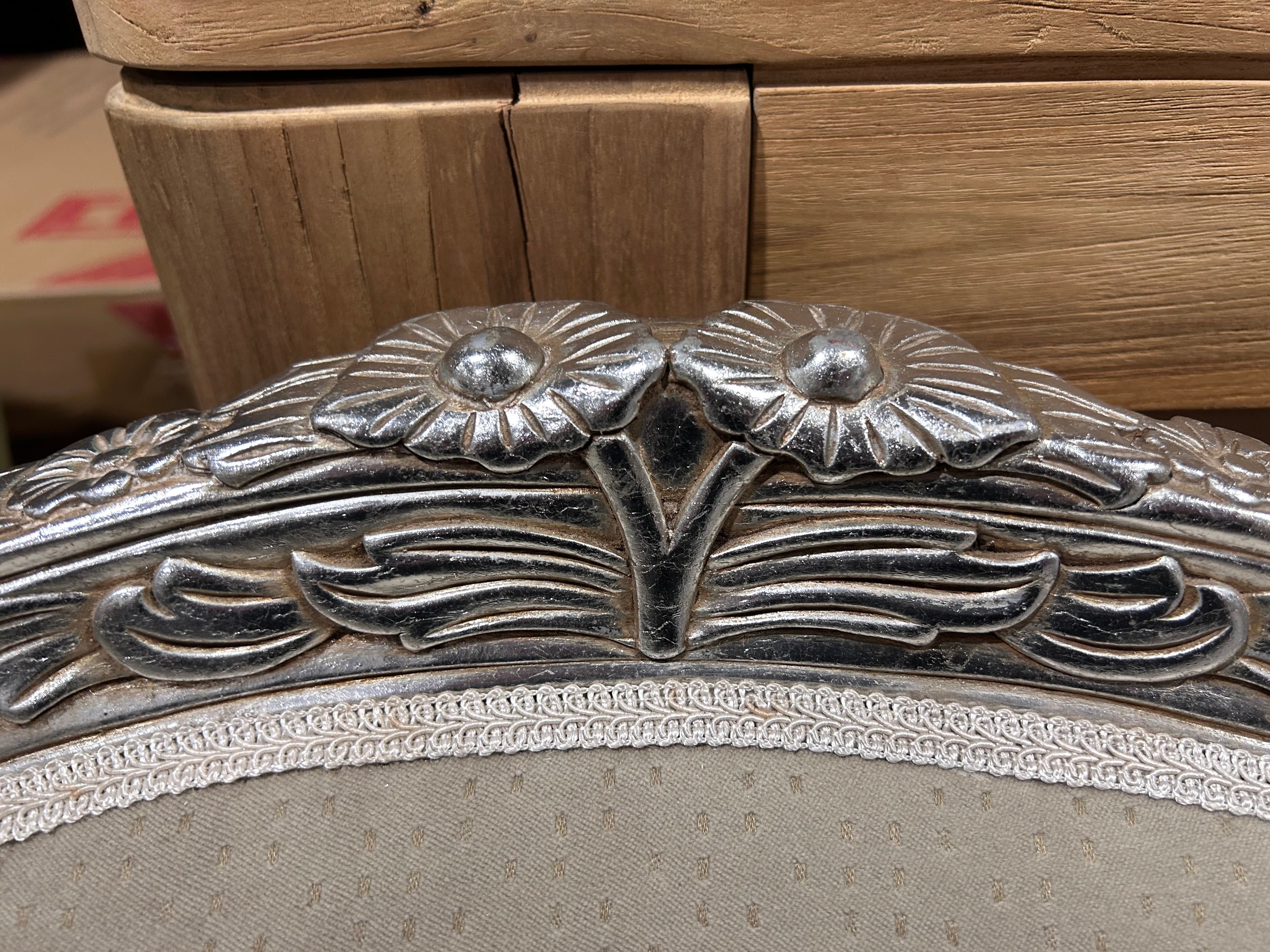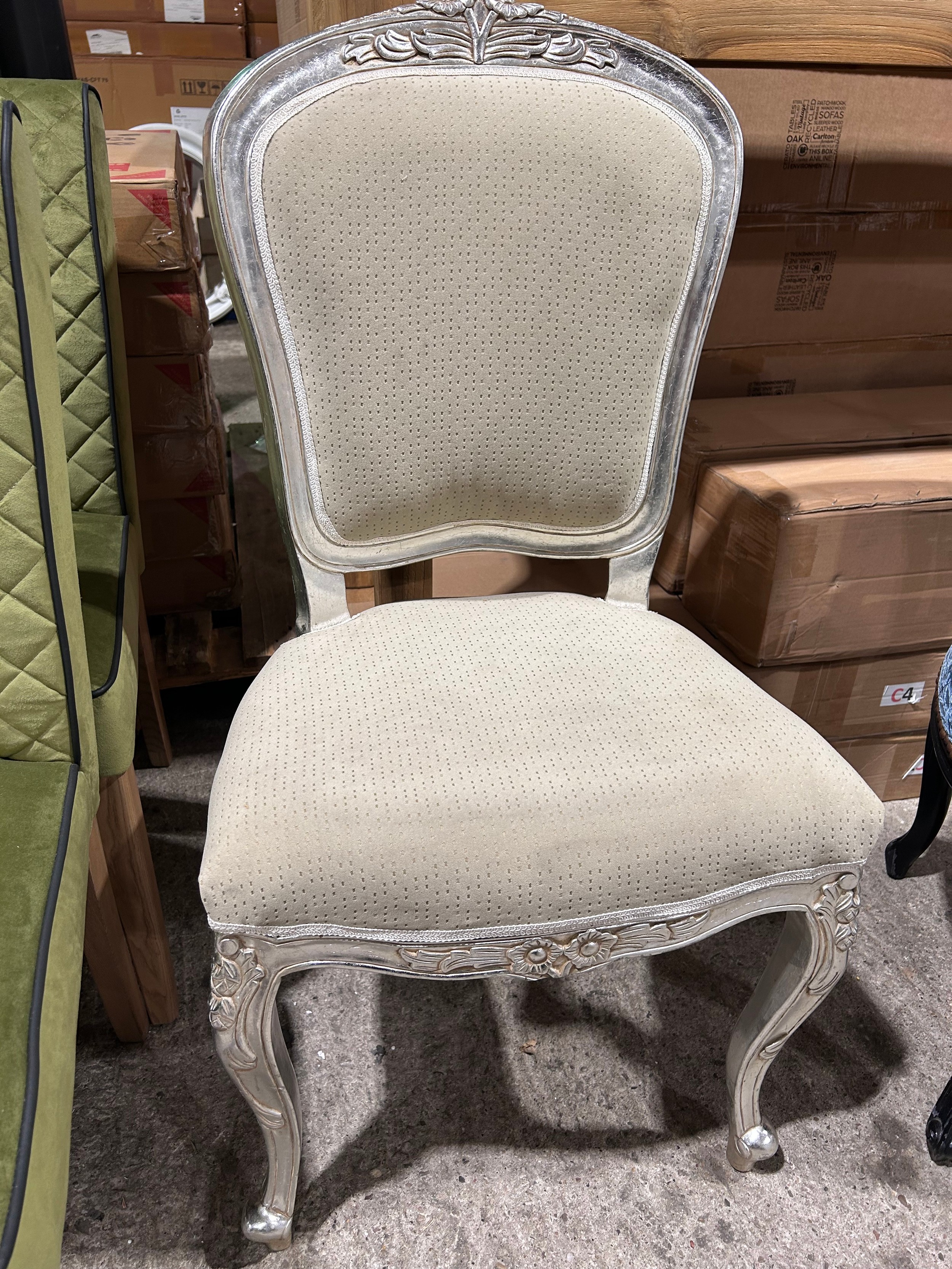 A silver painted accent chair