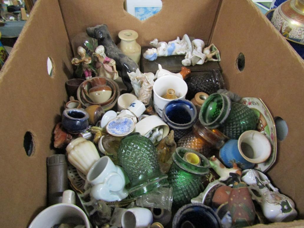 BOX OF MINIATURE CHINA ITEMS AND ORNAMENTS