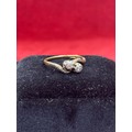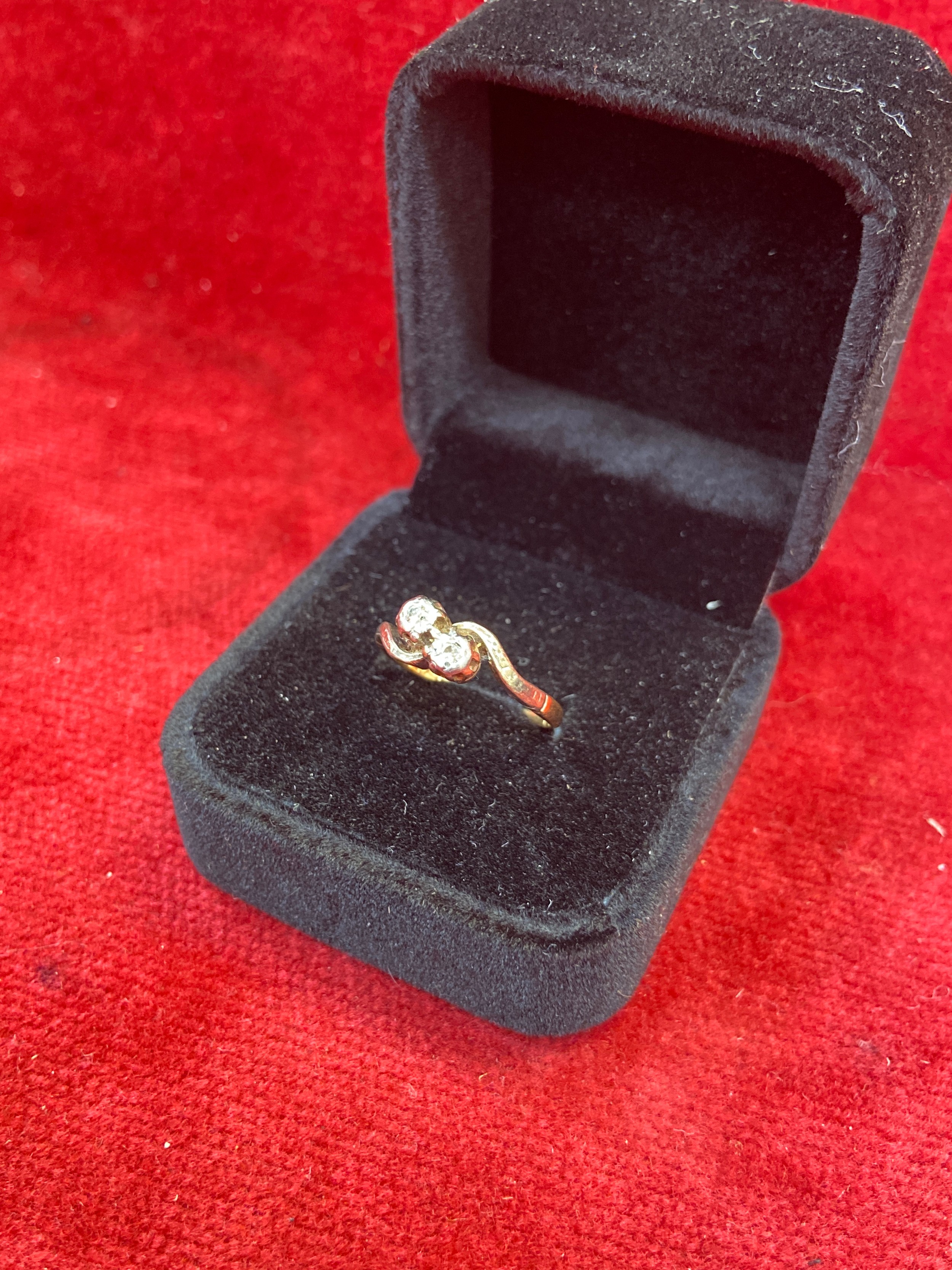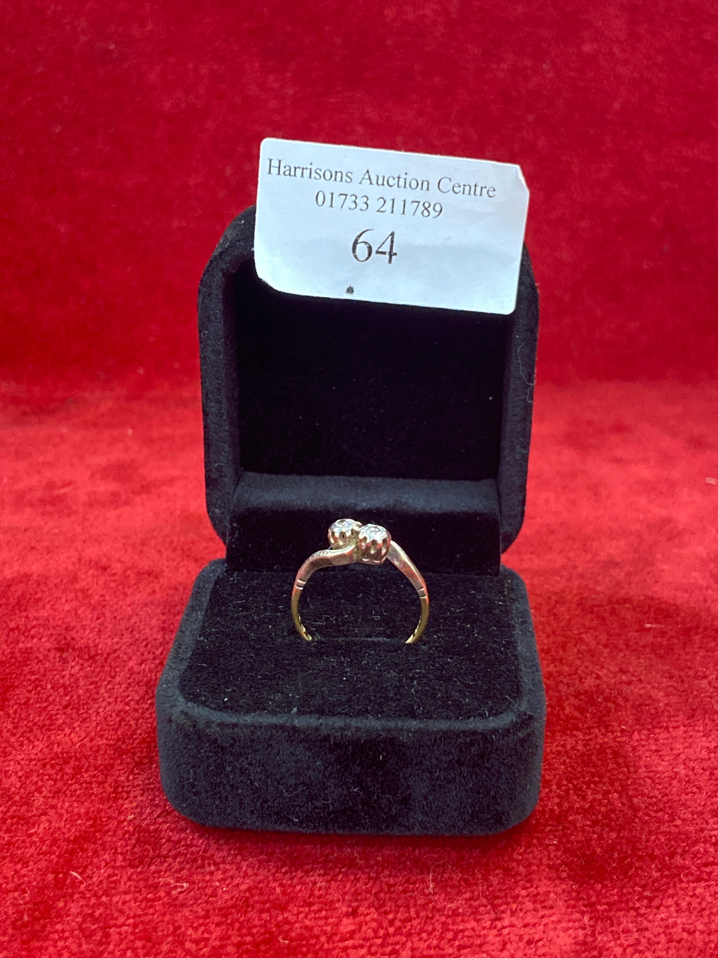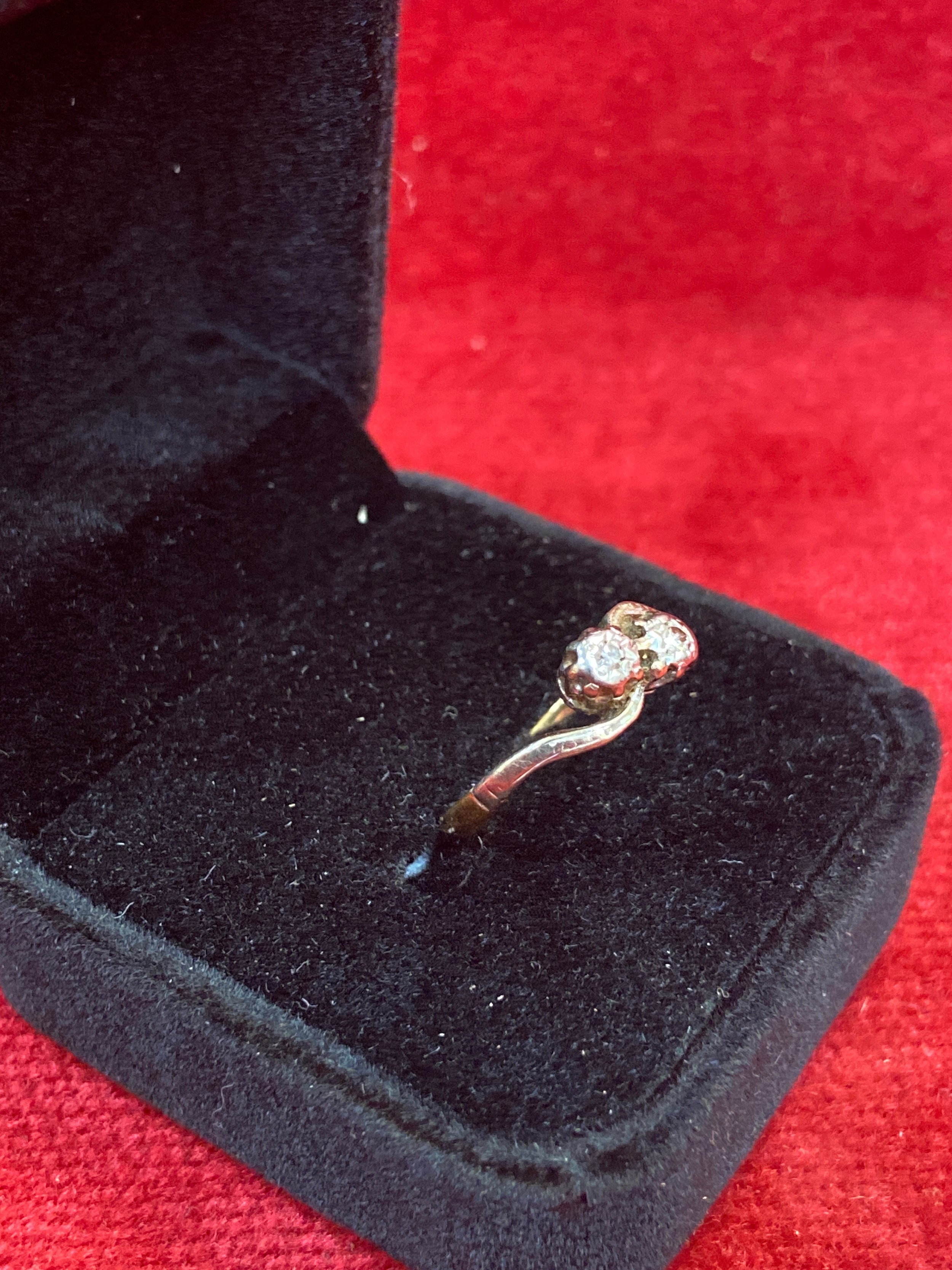 A Vintage 18ct gold ring in crossover design platinum setting with two diamonds. Size L 2.2 grams