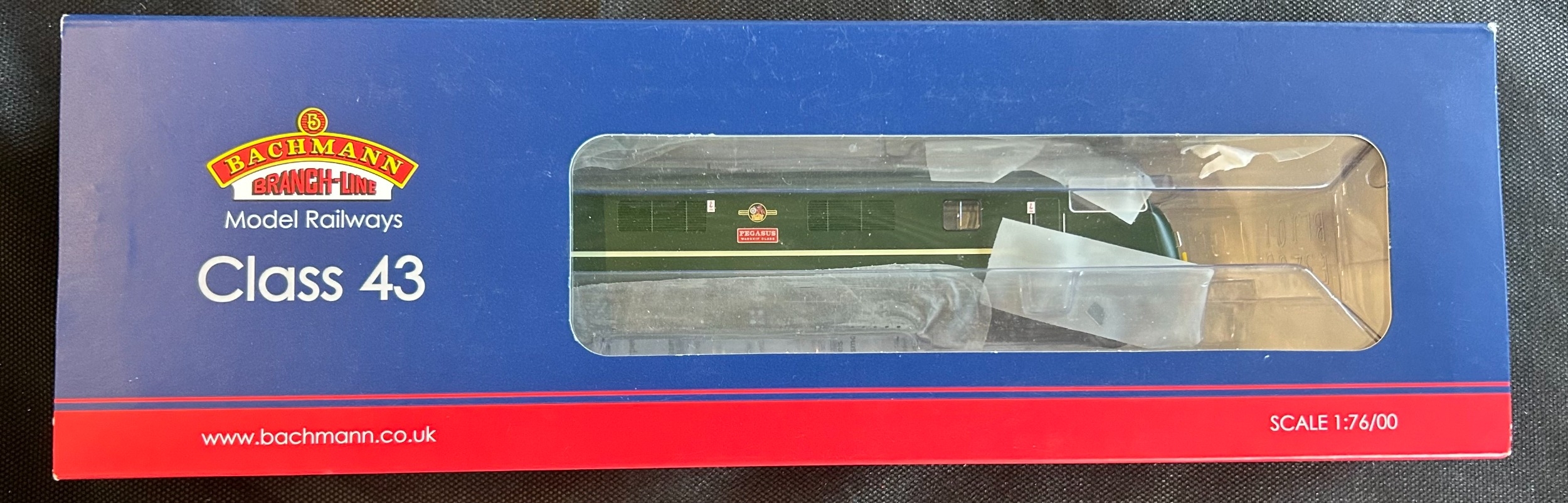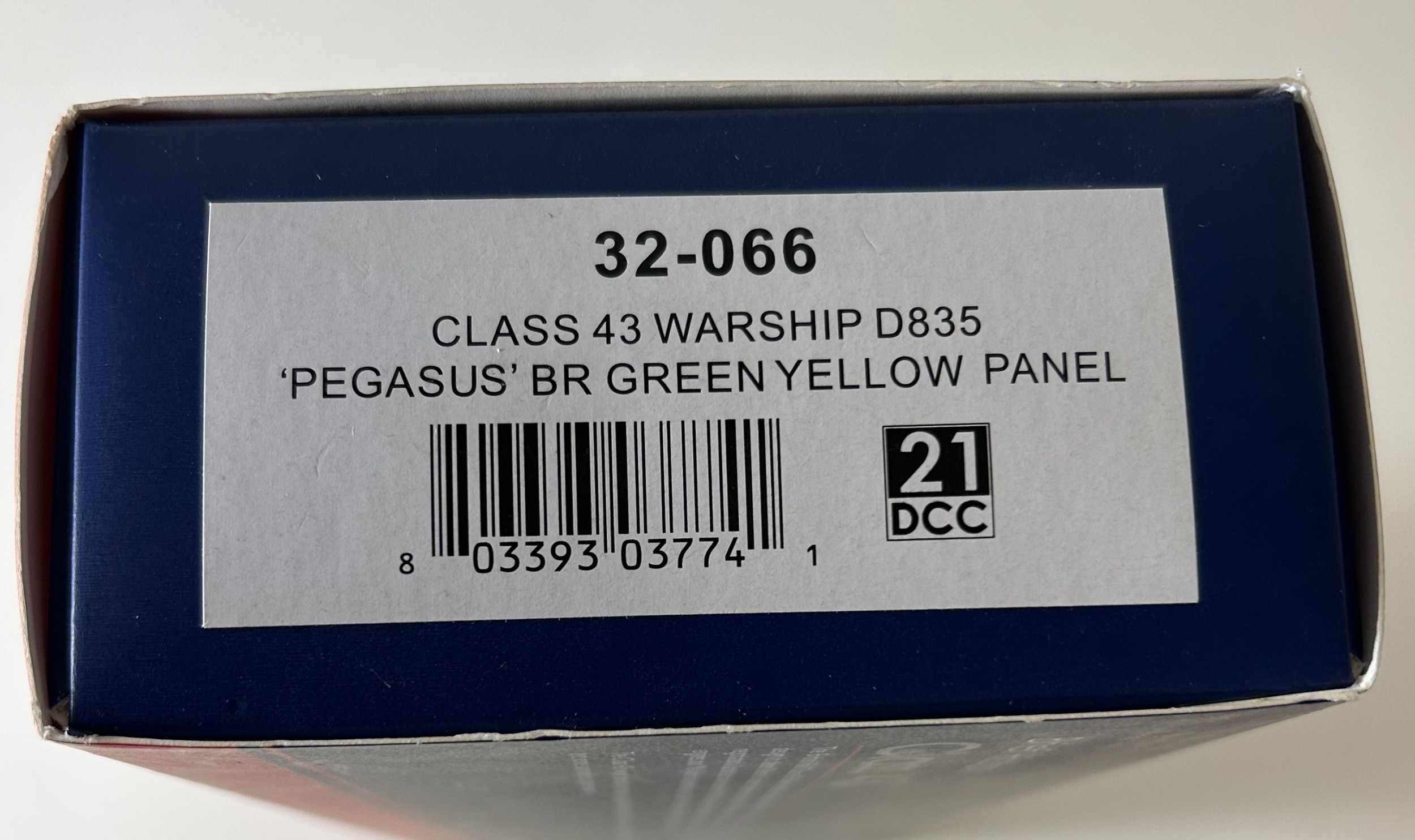 Bachmann Branch-Line OO Diesel-Hydraulic Locomotive. Class 43 D835 'Pegasus' (32-066). With 21 DCC. In BR Green with Yellow Panel. Boxed. Contents looks to be as new.
