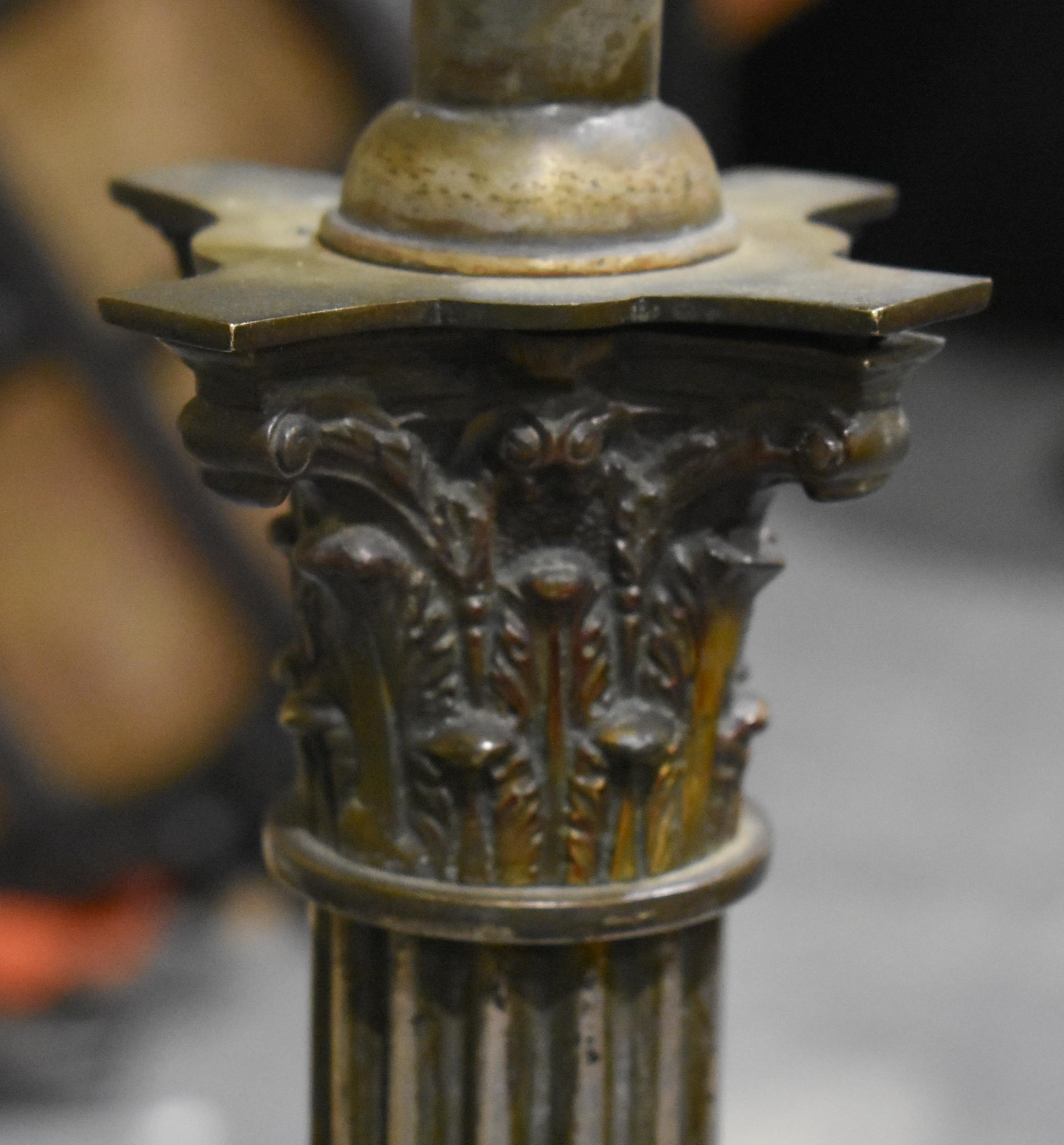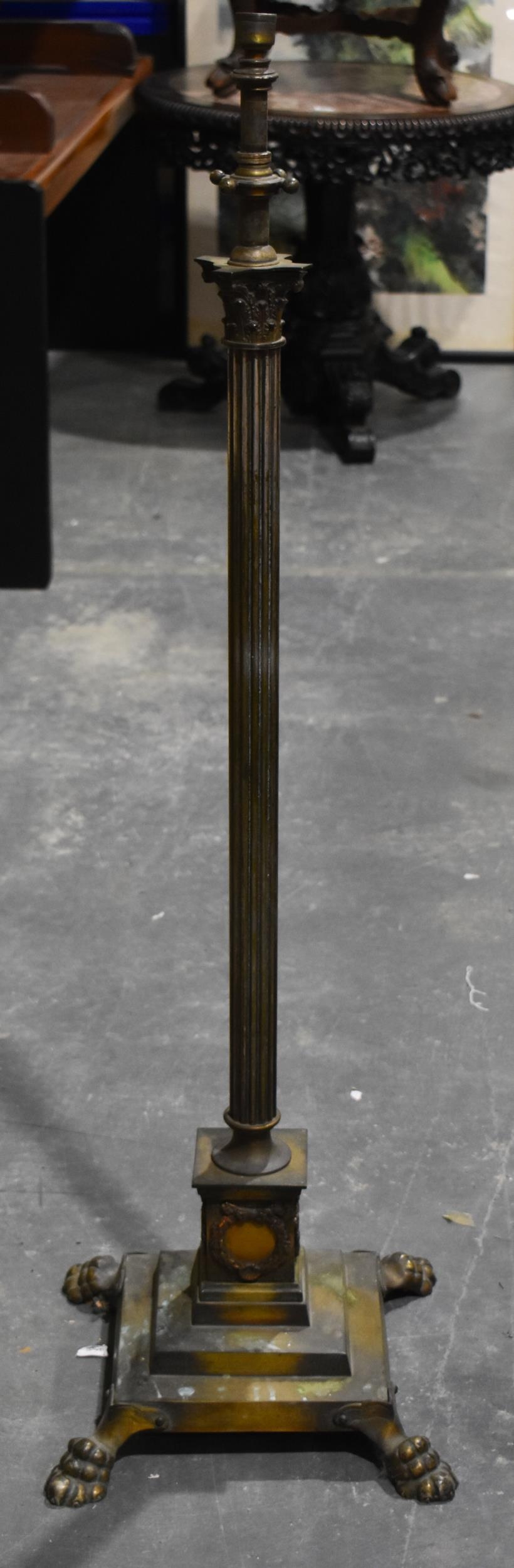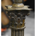 A BRASS COLUMN CANDLESTICKS. 130 cm high.