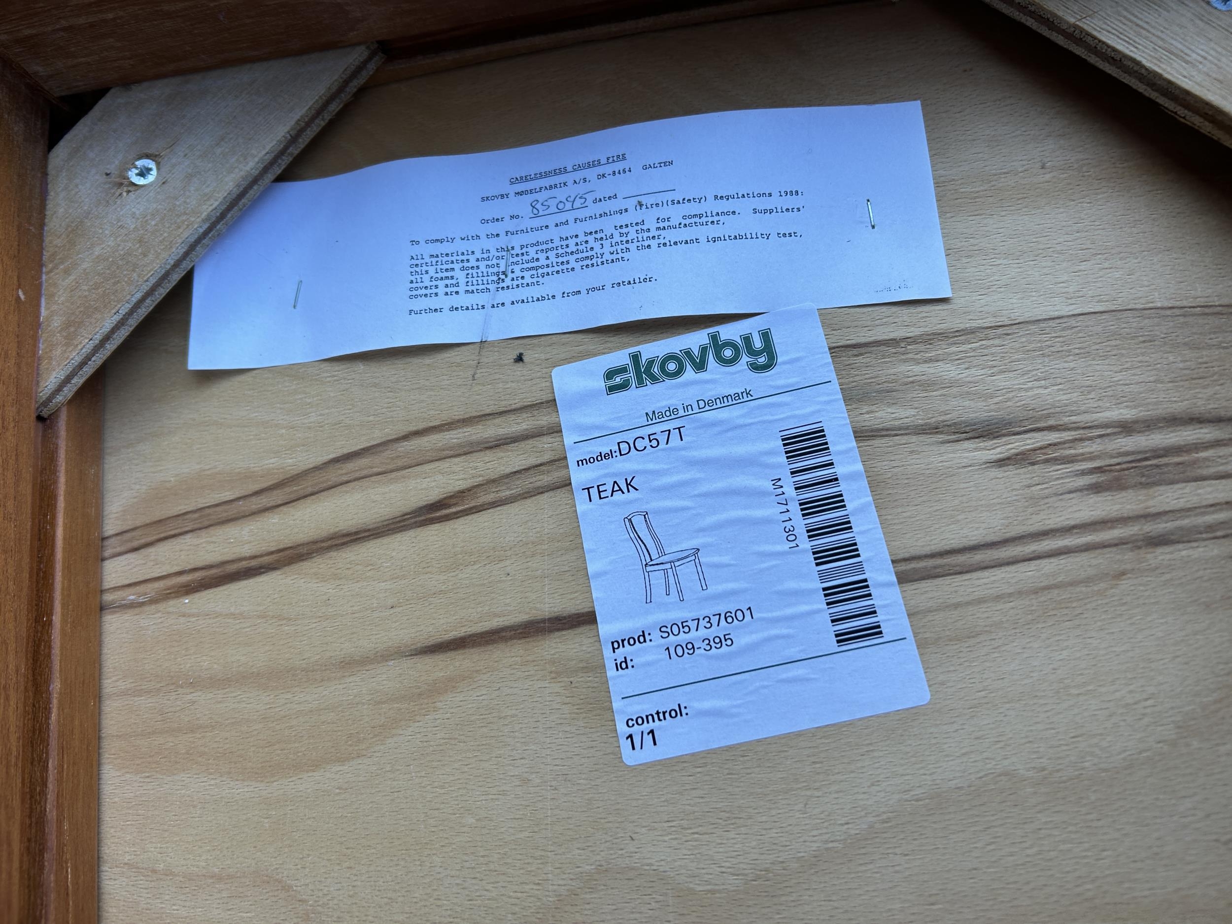 A set of six danish teak dining chairs by SKOBY
