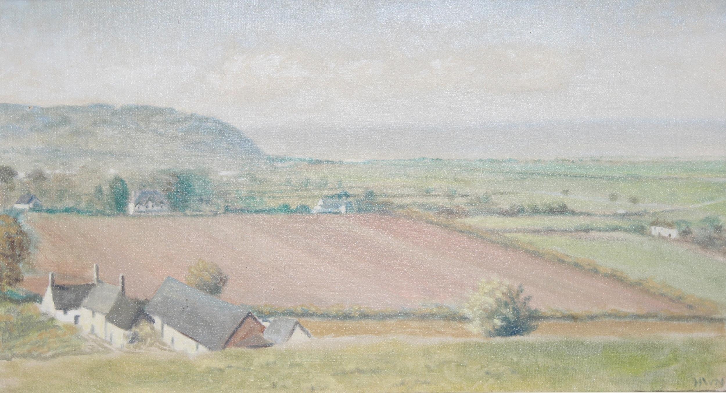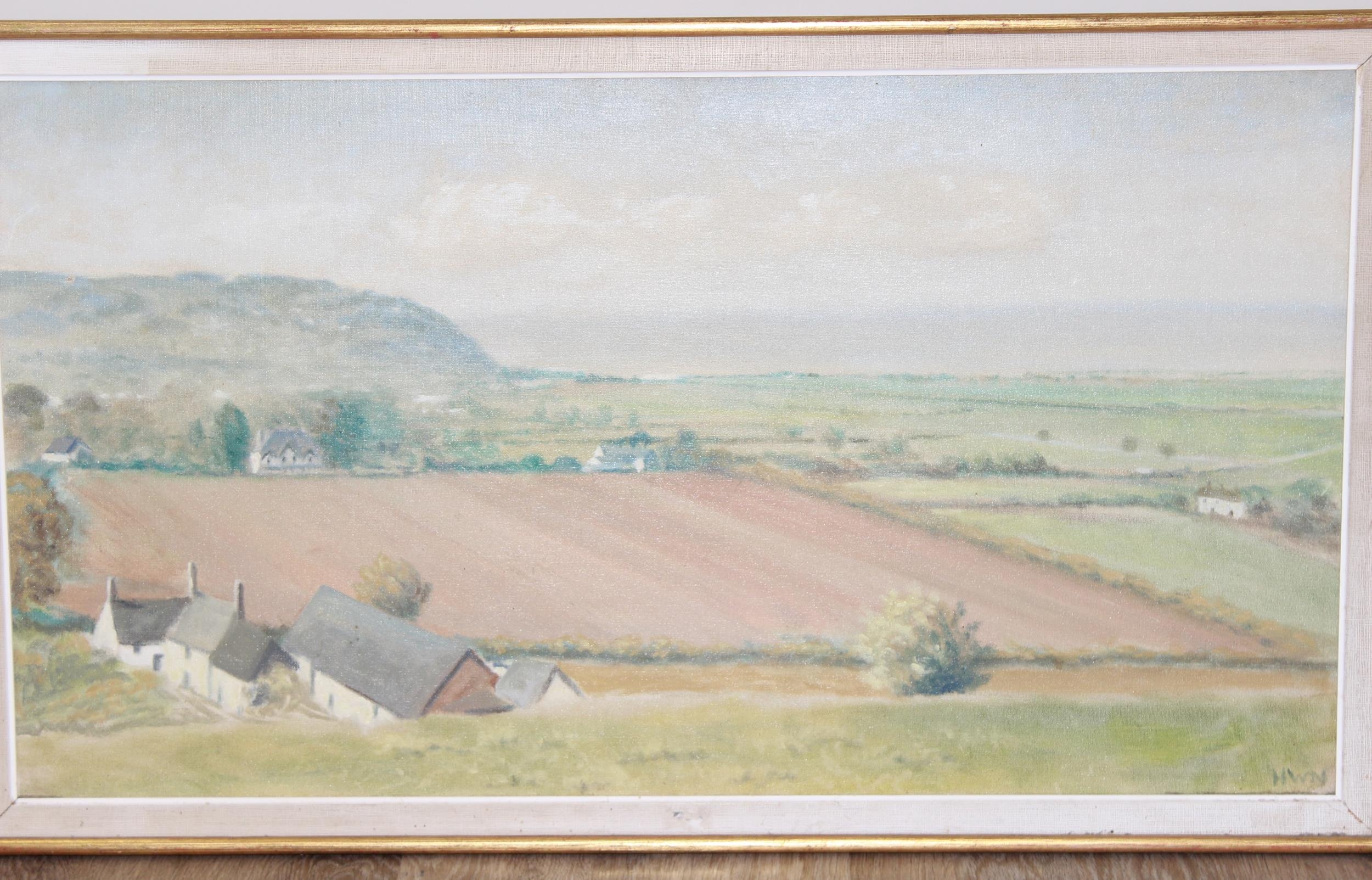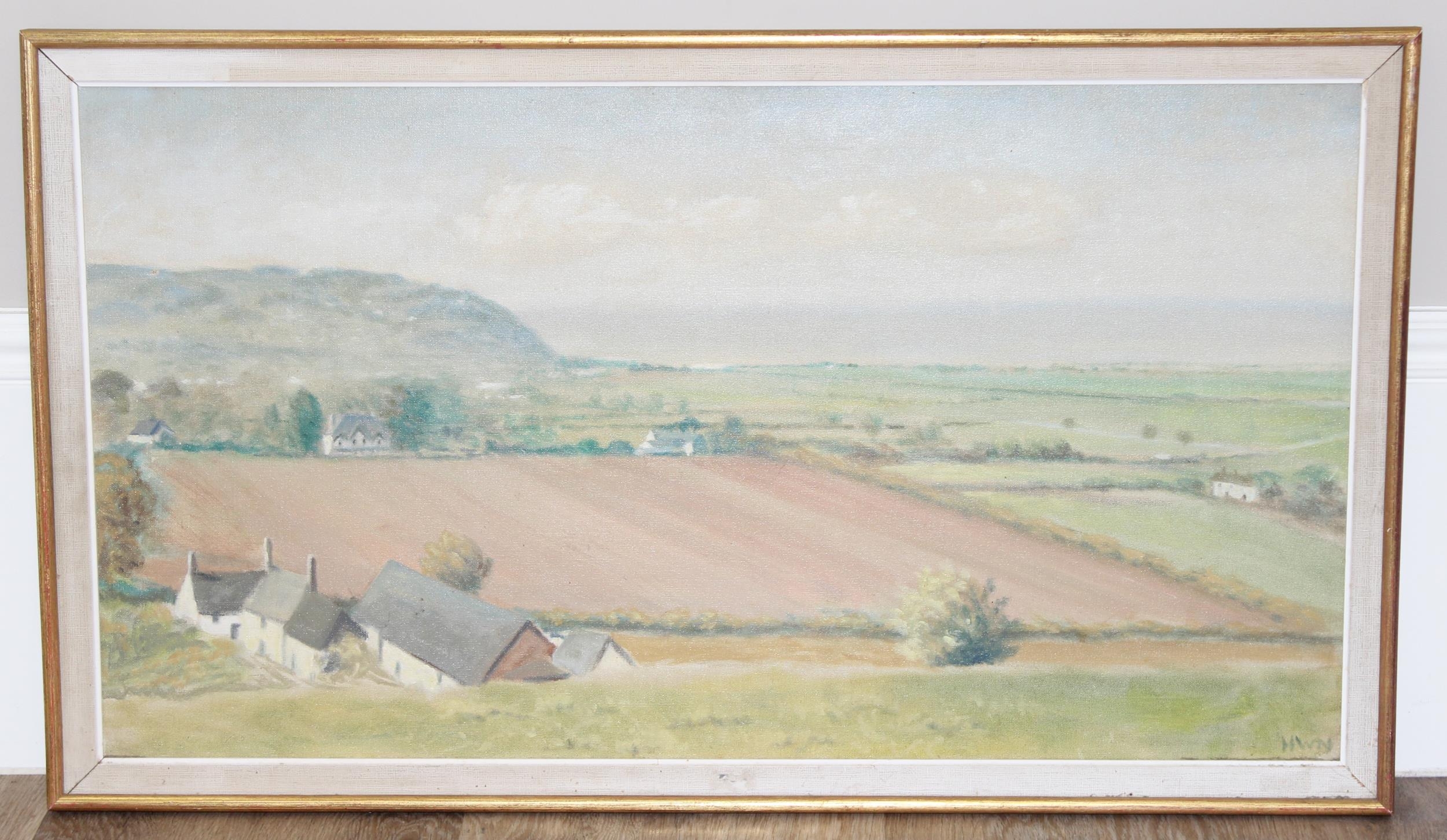 Oil on canvas landscape likely of the Quantocks, Somerset, by HW Newport, initialled bottom right, approx 97 x 56cm