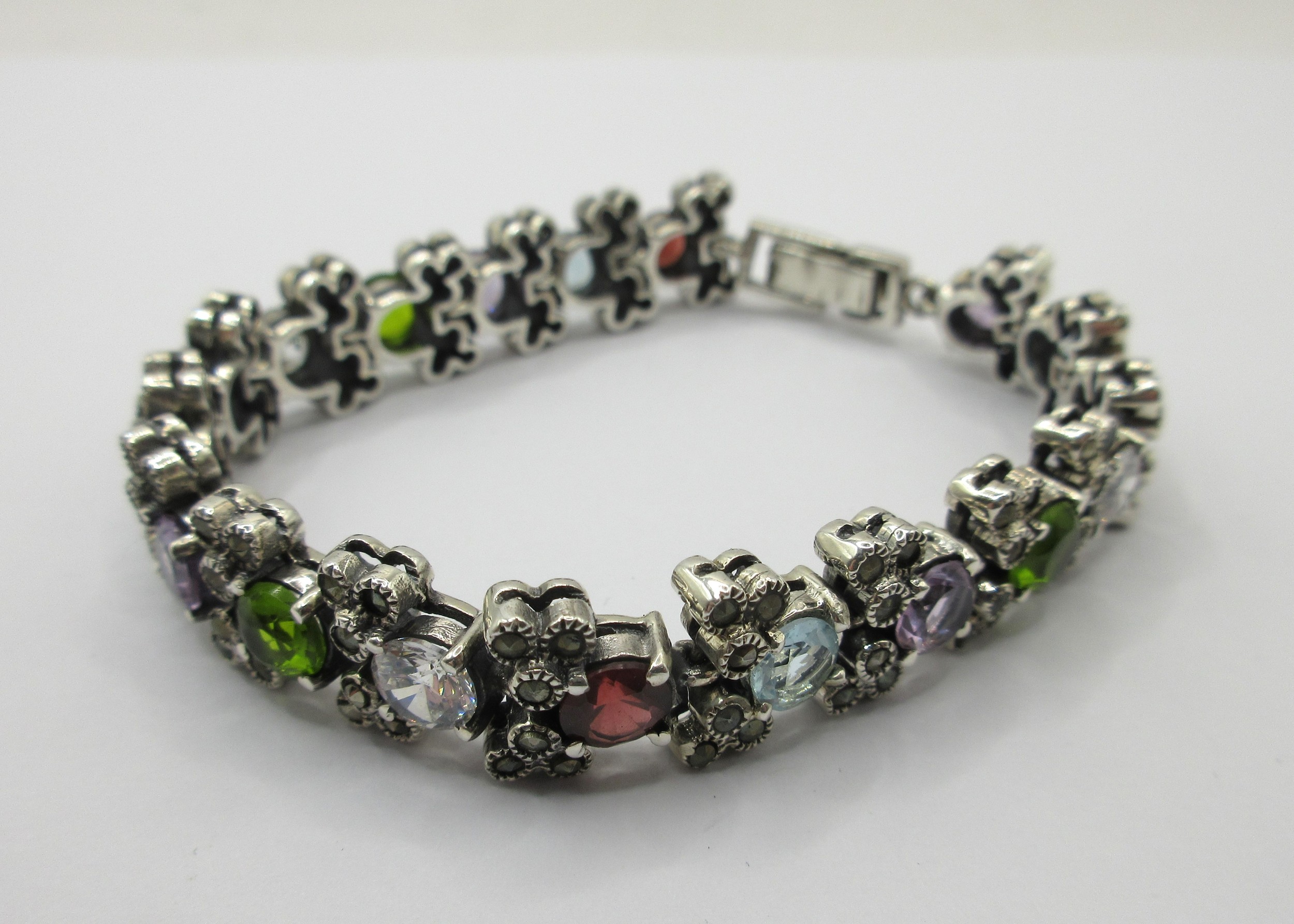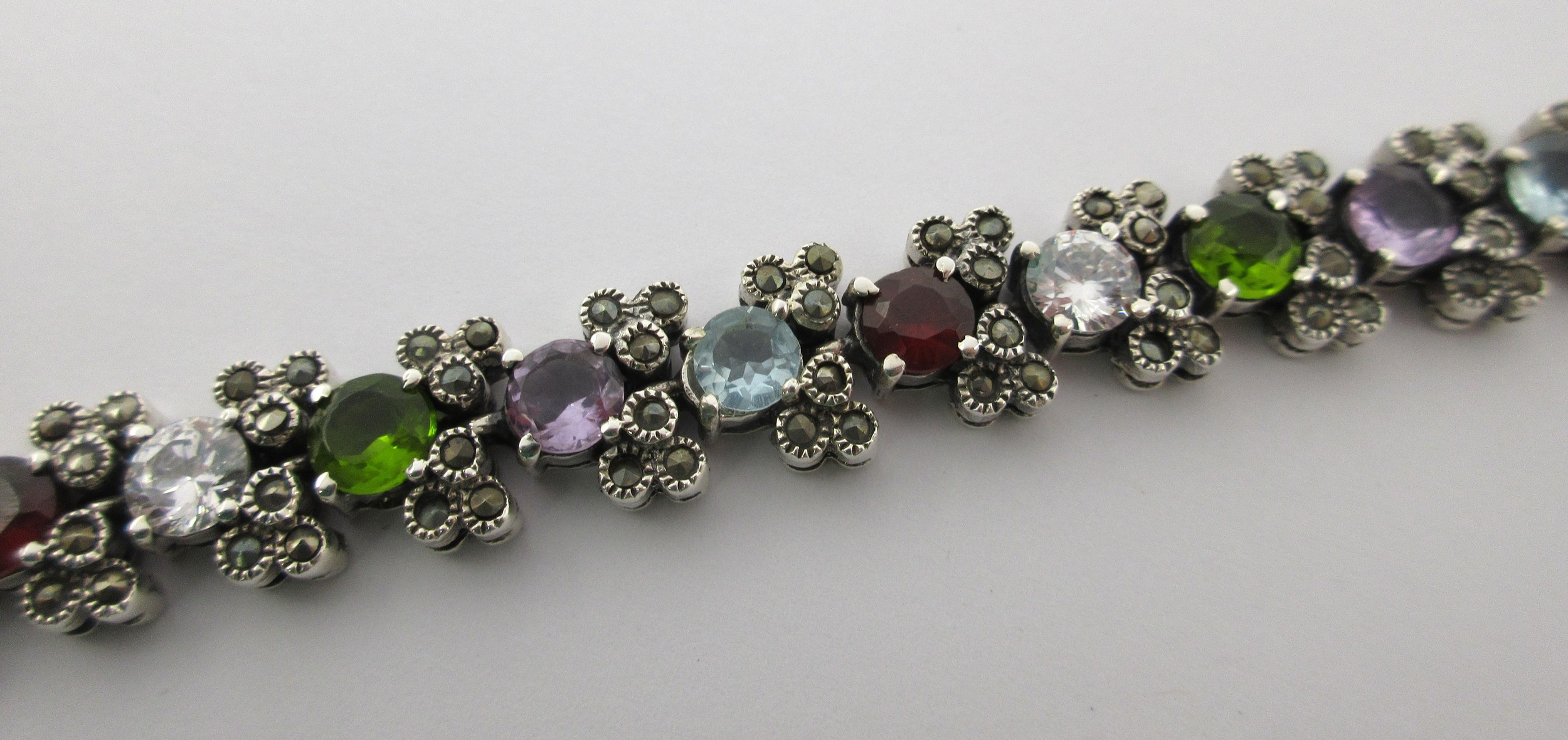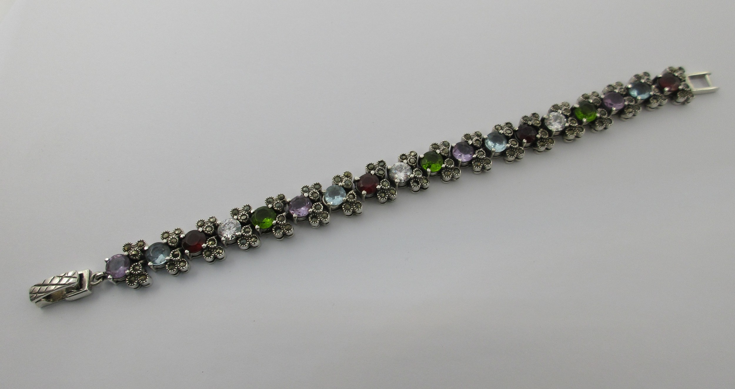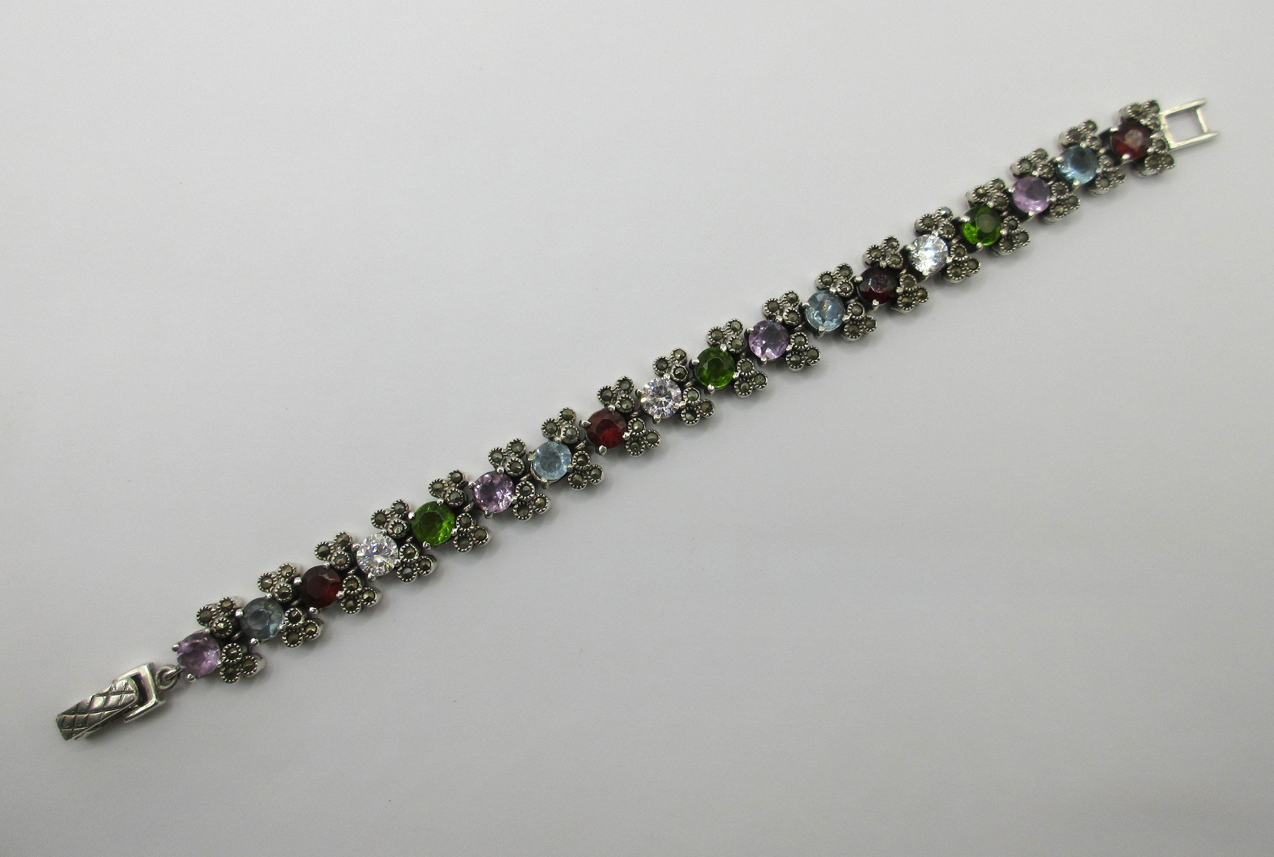 925 silver bracelet set with multi-colour stones and marcasite, gross weight approx. 33.7g