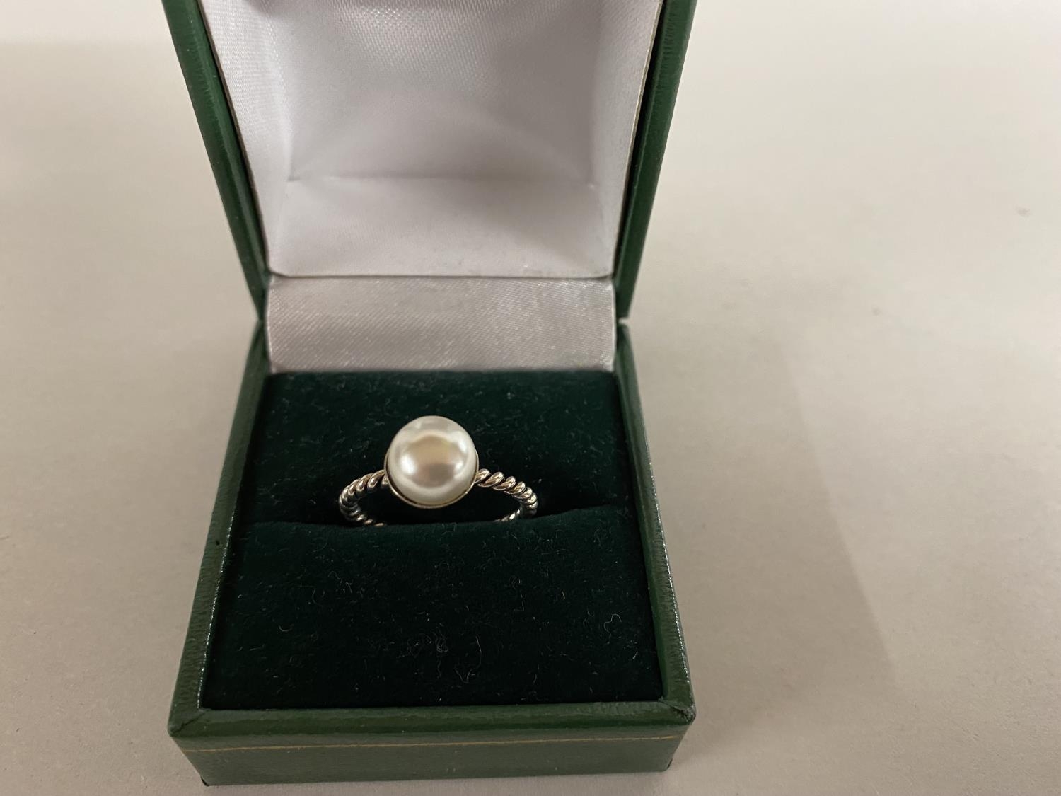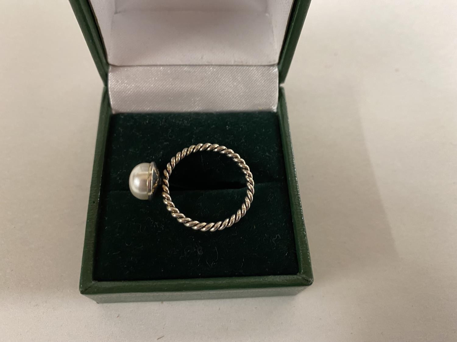 925 Silver Faux Pearl Ring, size M