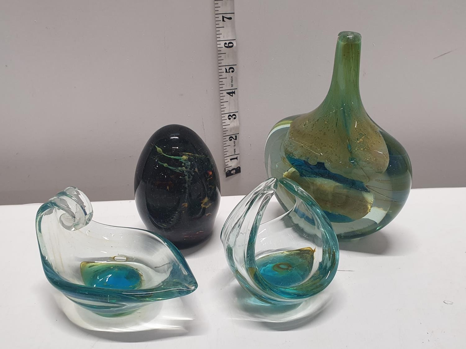 A selection of Mdina paperweights and glassware, shipping unavailable