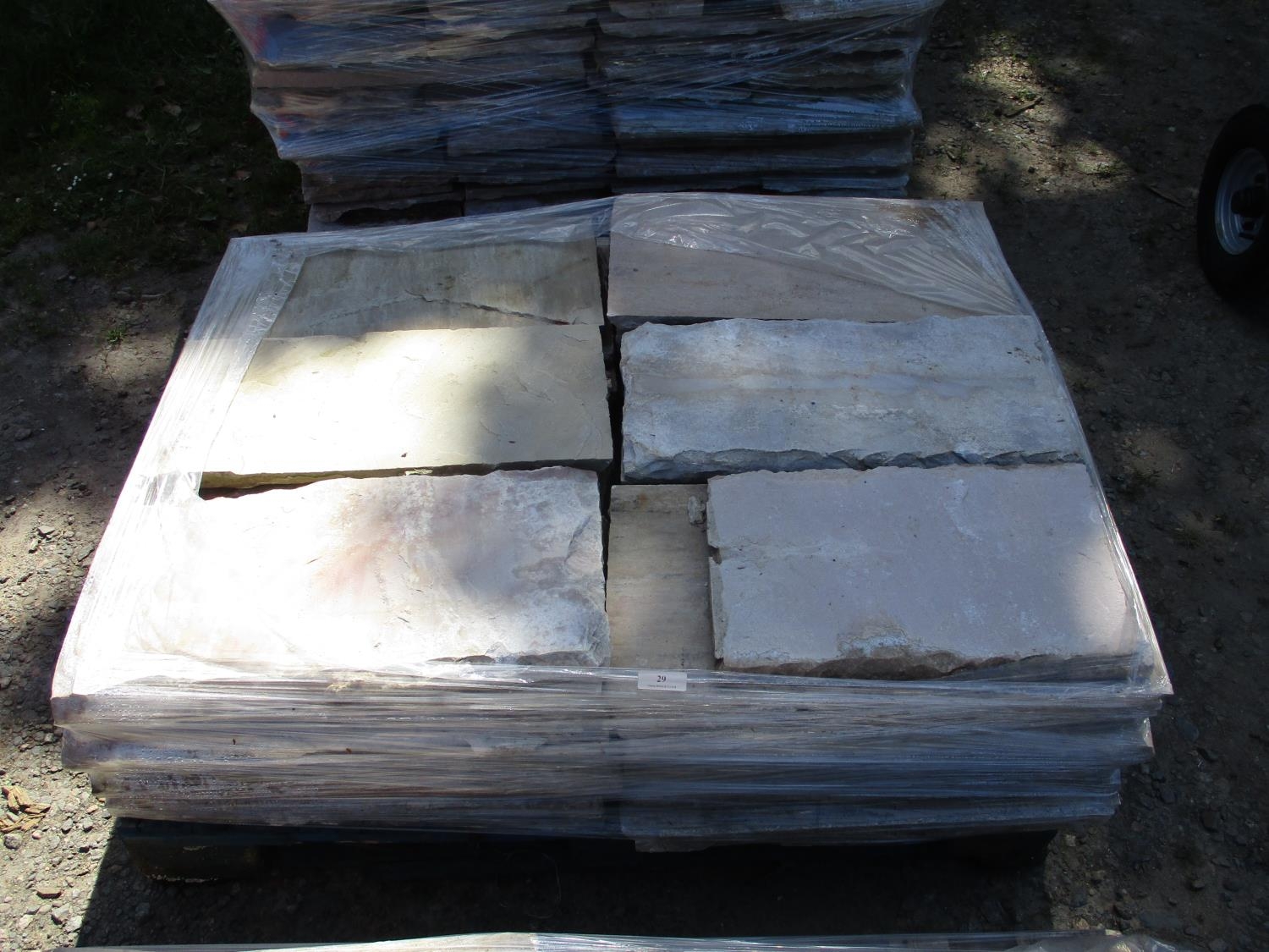 A pallet of sand stone paving