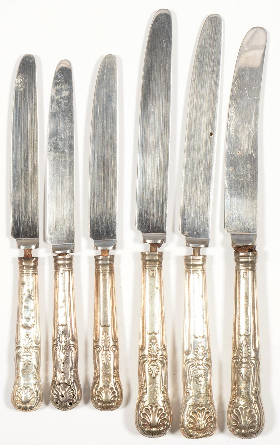 MISCELLANEOUS 19TH C ENGLISH SILVER HAFTED TABLE KNIVES