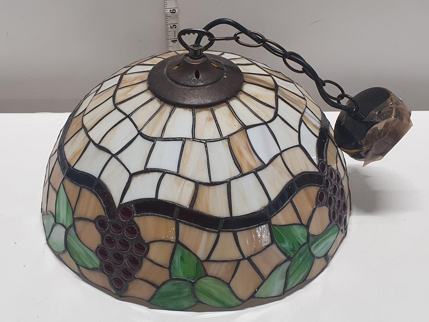 A Tiffany style glass lampshade, d40cm, shipping unavailable
