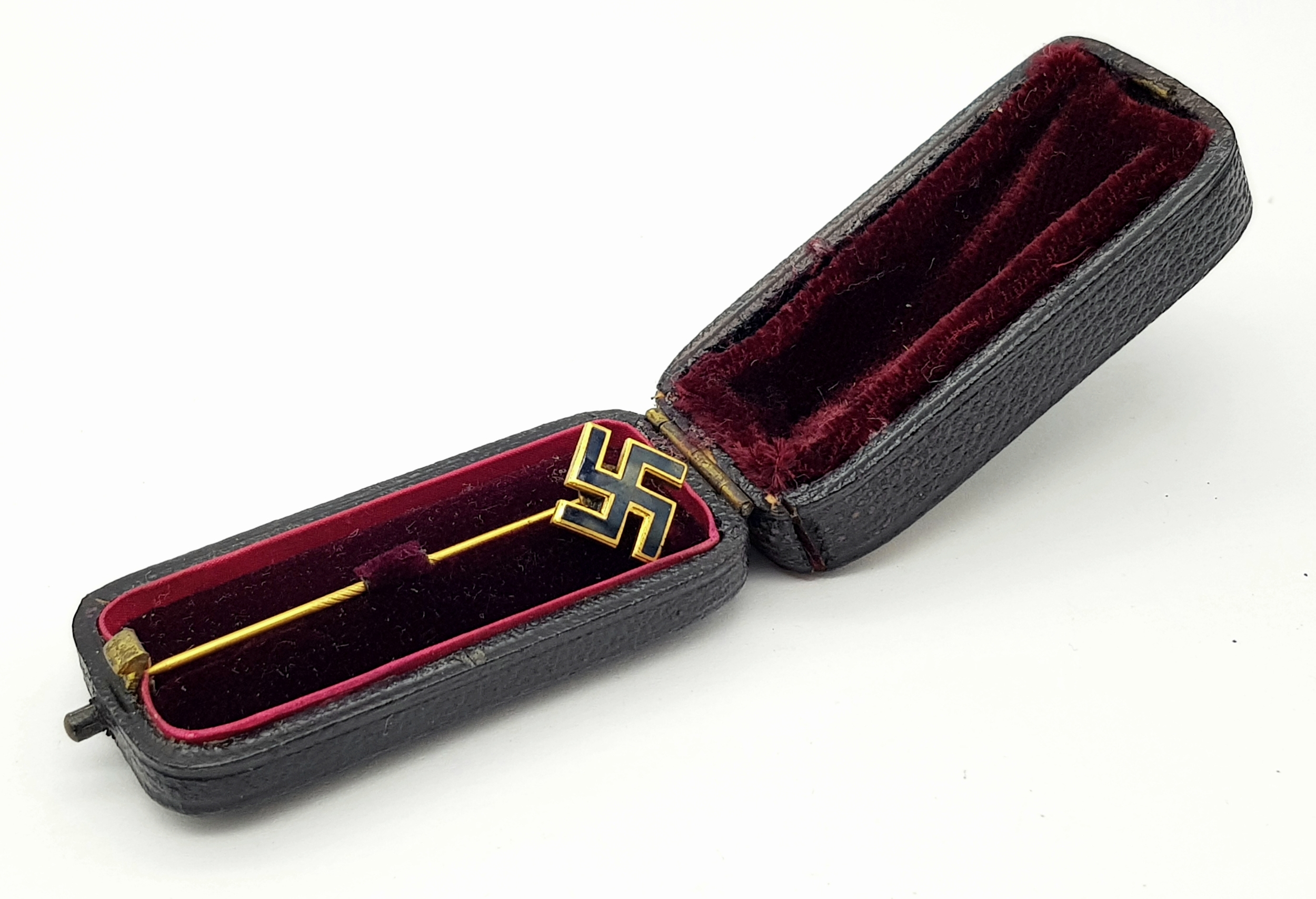 3rd Reich Patriotic Gold Plated and black enamel Stick Pin in Original Case.