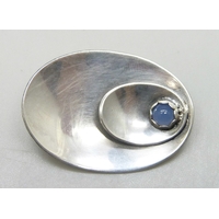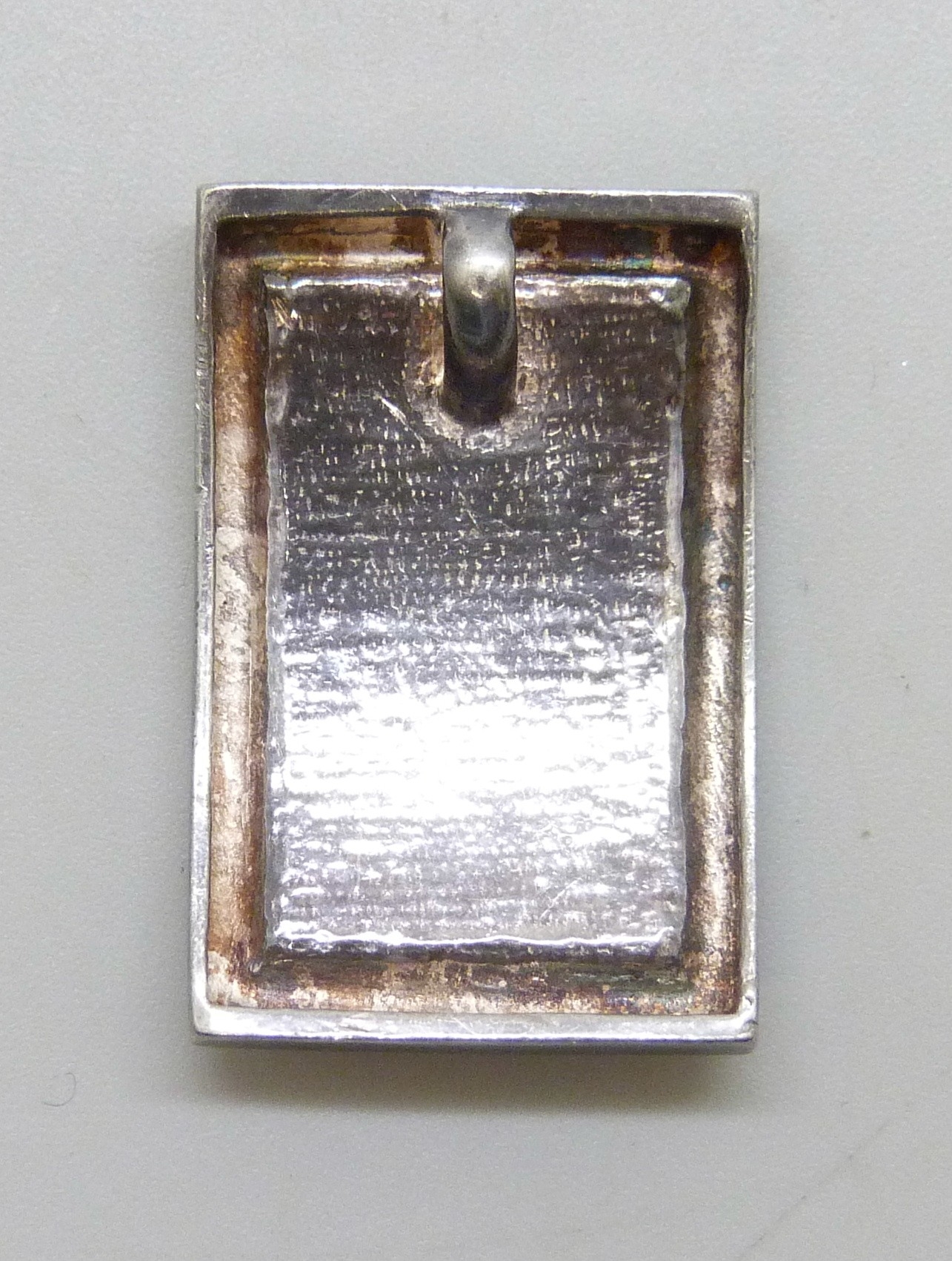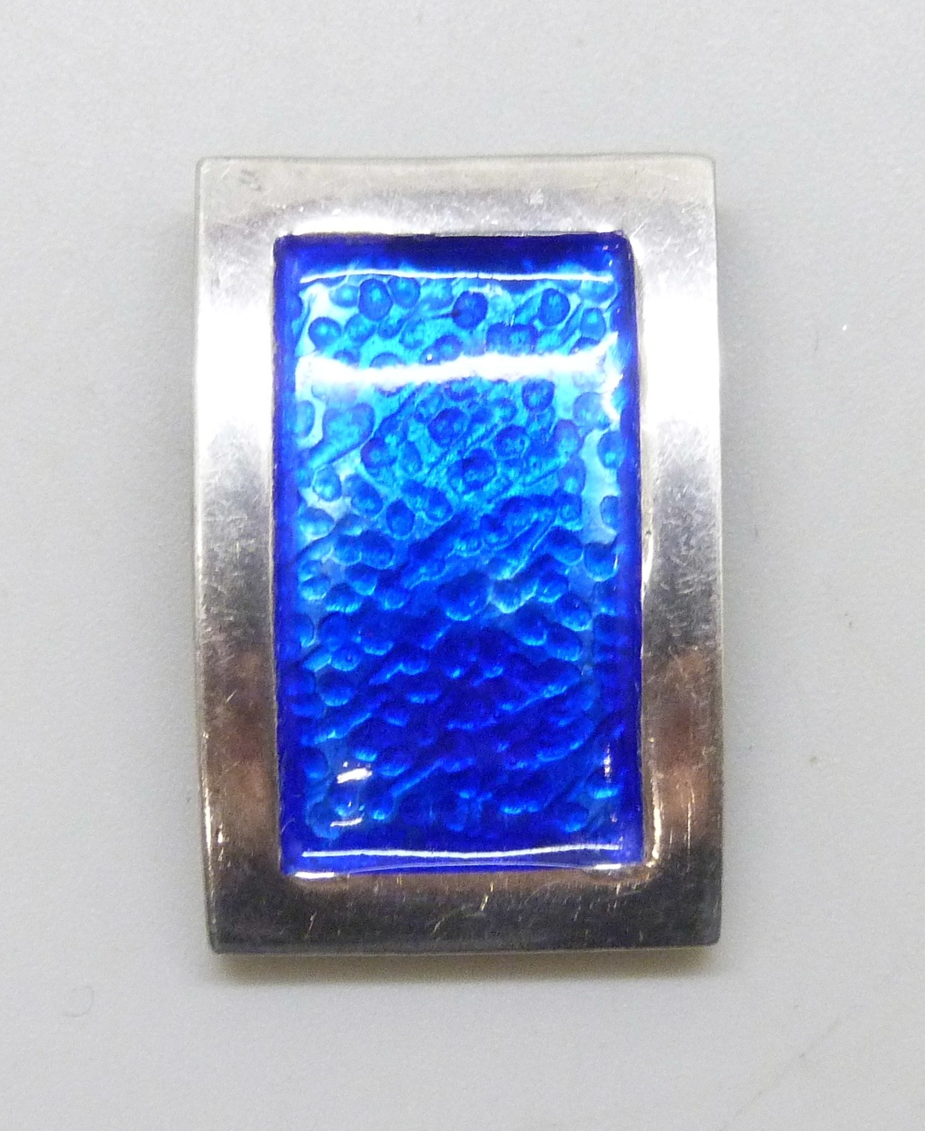 A white metal hammered texture necklace pendant set with blue enamel, tests as silver, 2.9cm