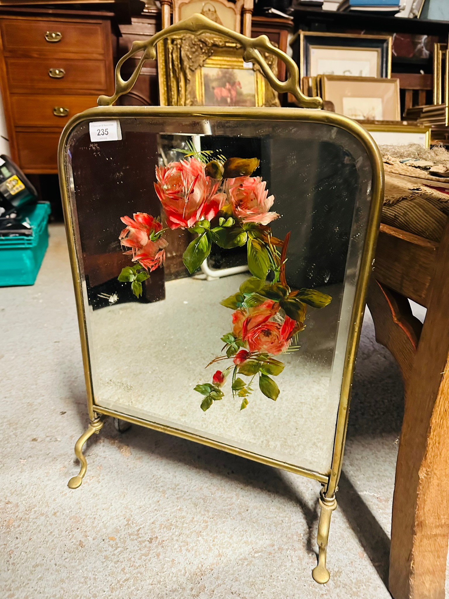 Glass mirror Fire screen with brass surround 63cm h x 40cm w