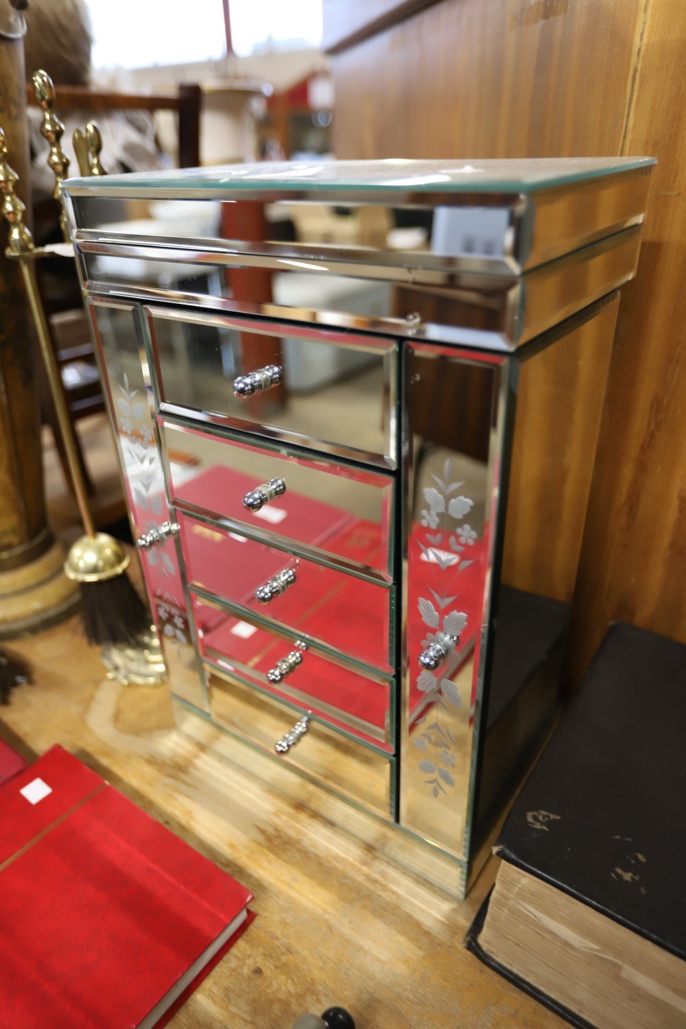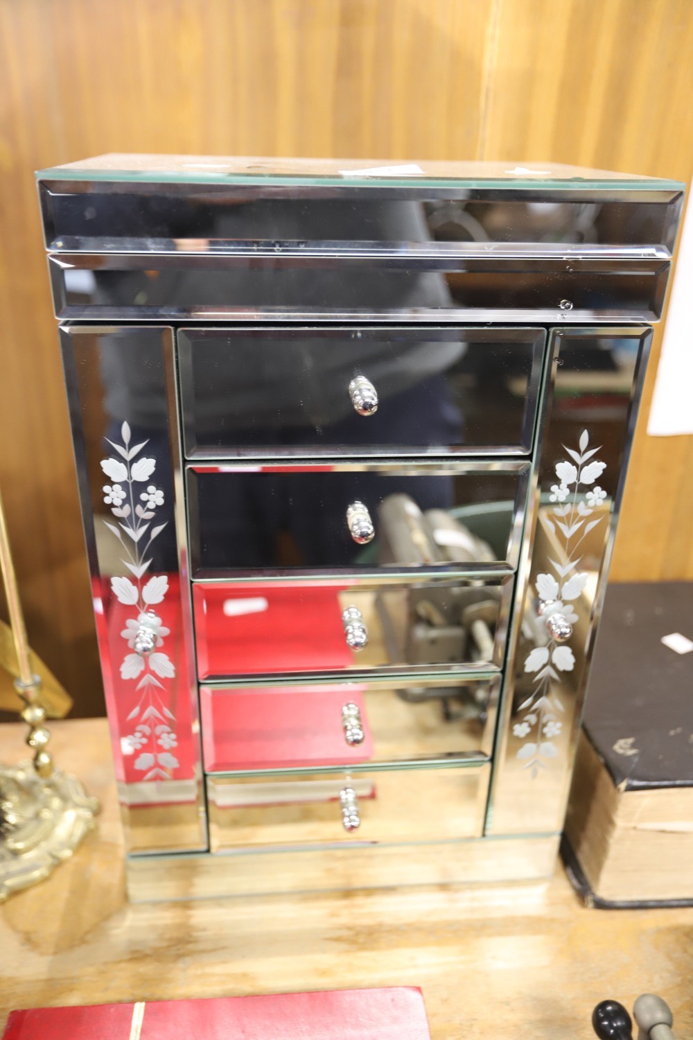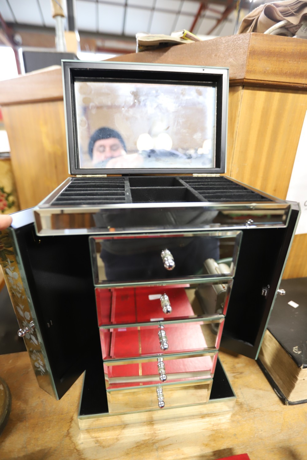 Mirror jewellery box/cabinet 2 swing sides, 5 drawers & lift up top