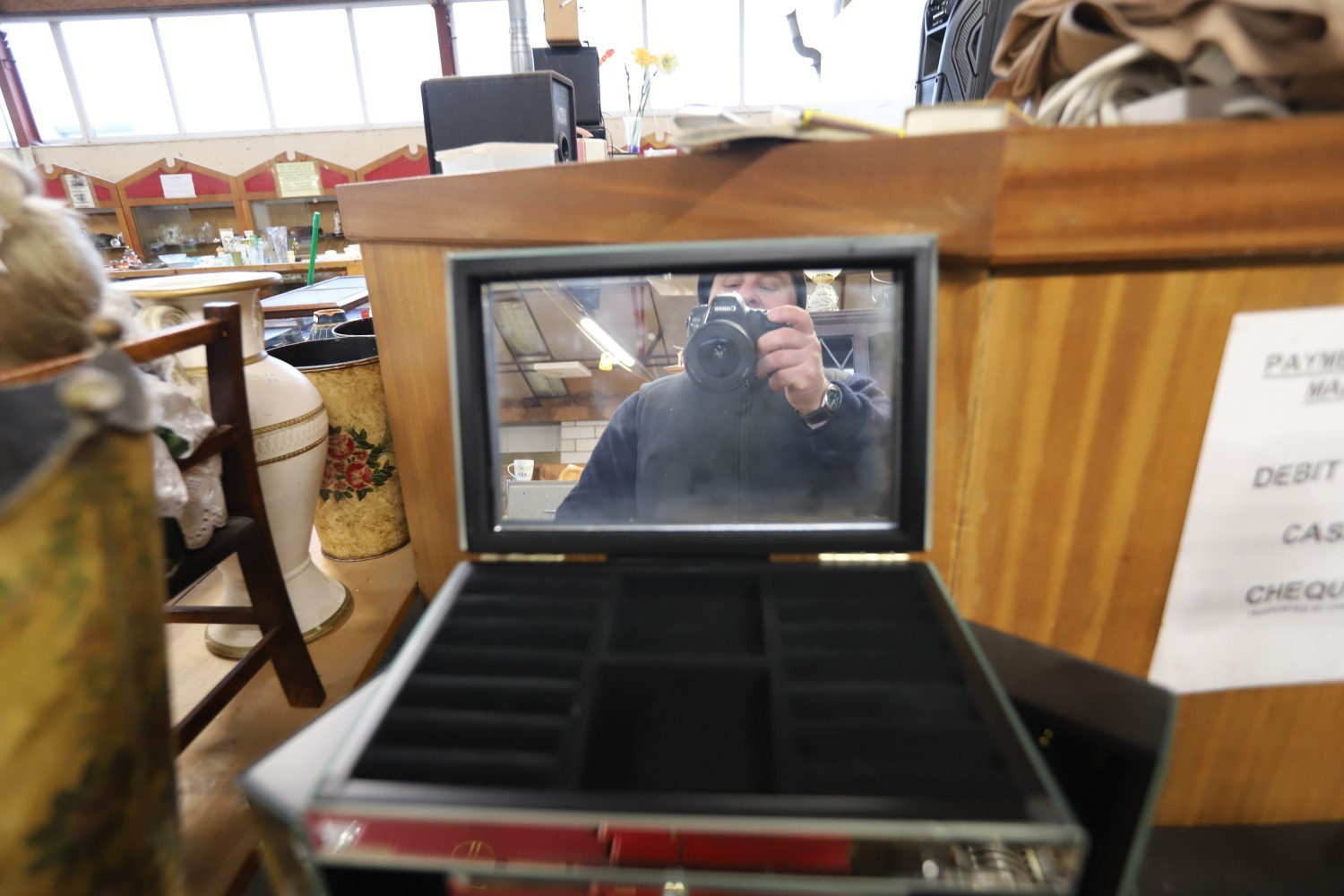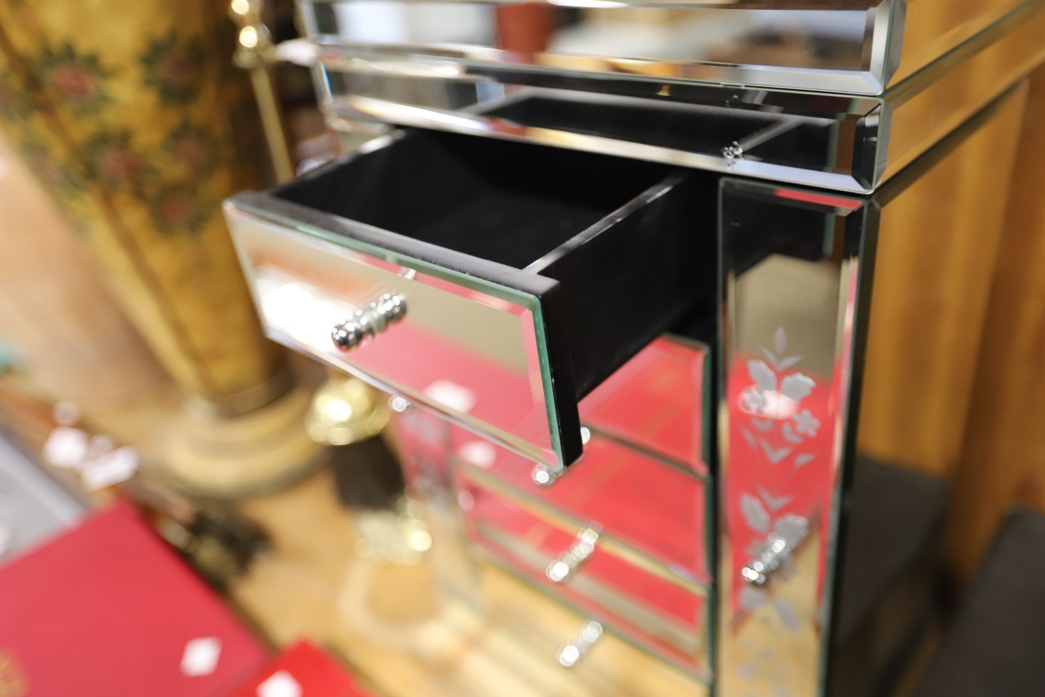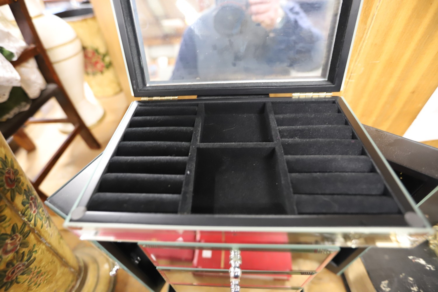 Mirror jewellery box/cabinet 2 swing sides, 5 drawers & lift up top