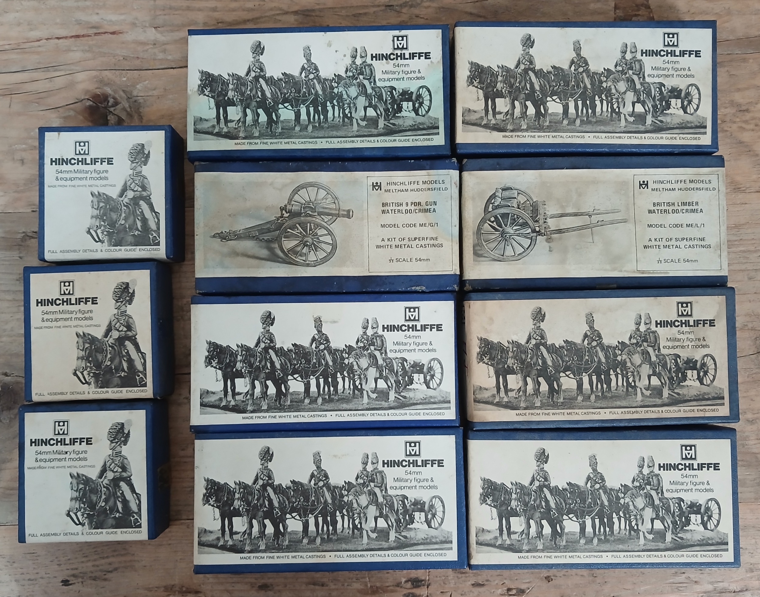 A group of eleven unbuilt Hinchcliffe military models.