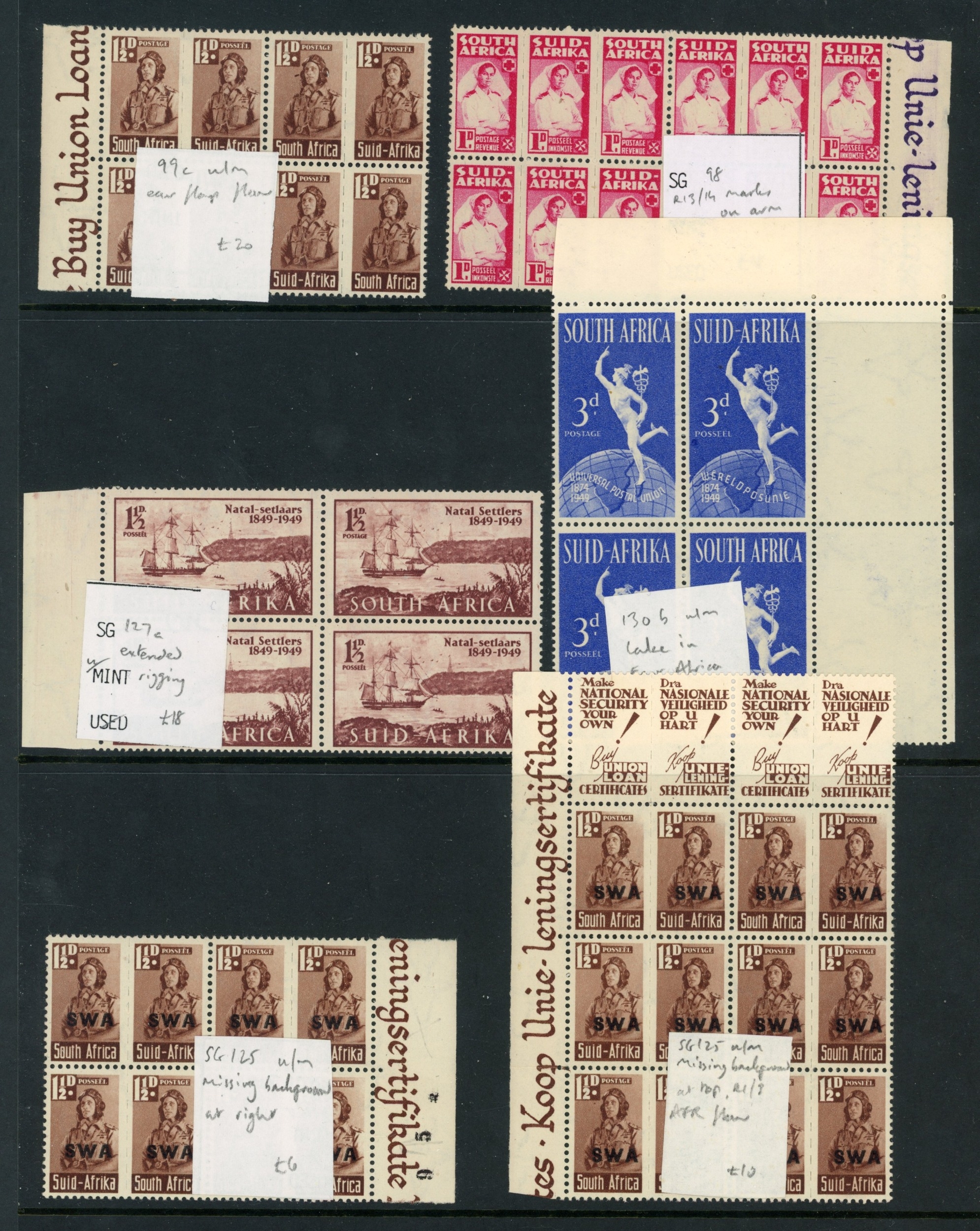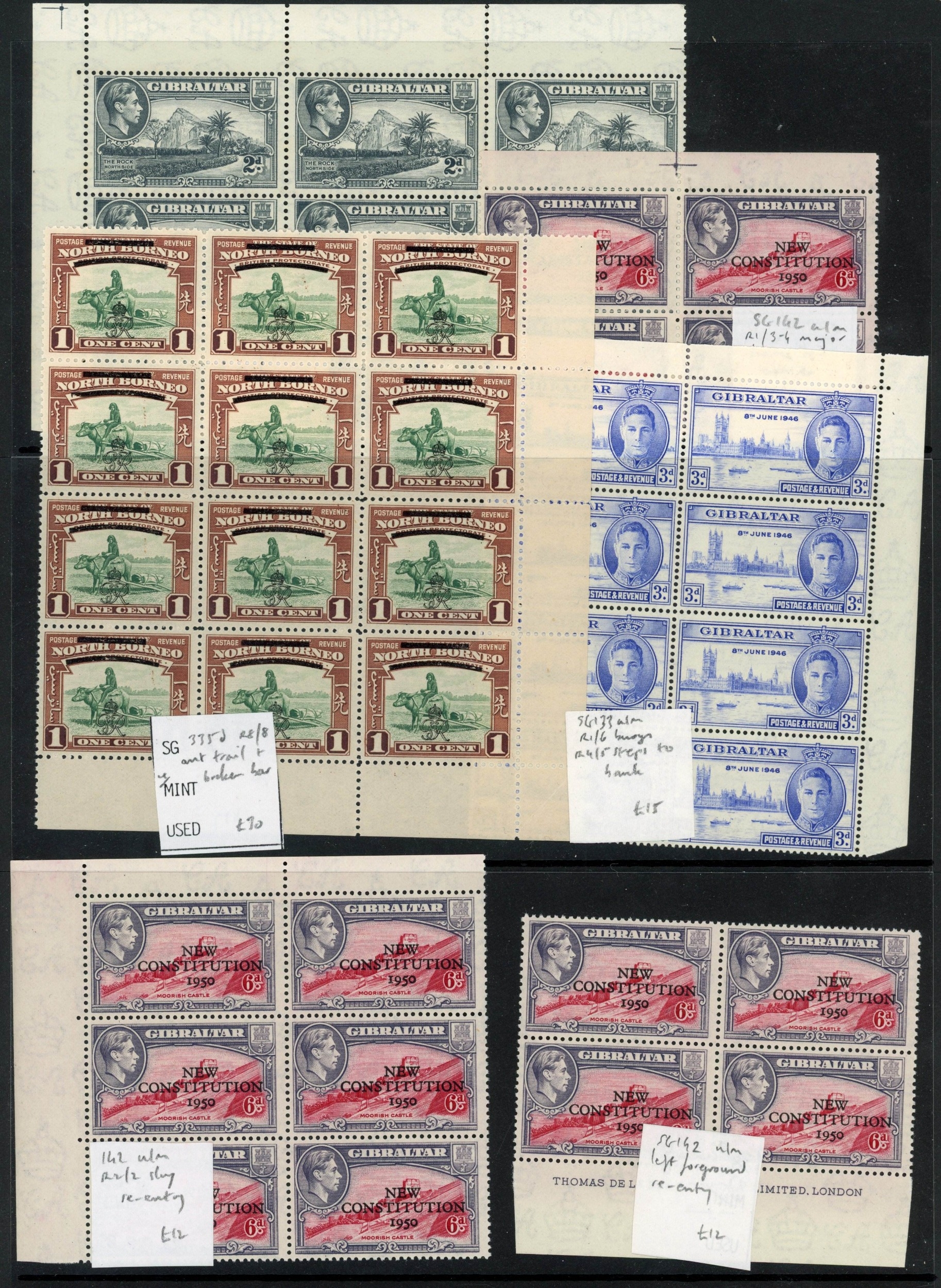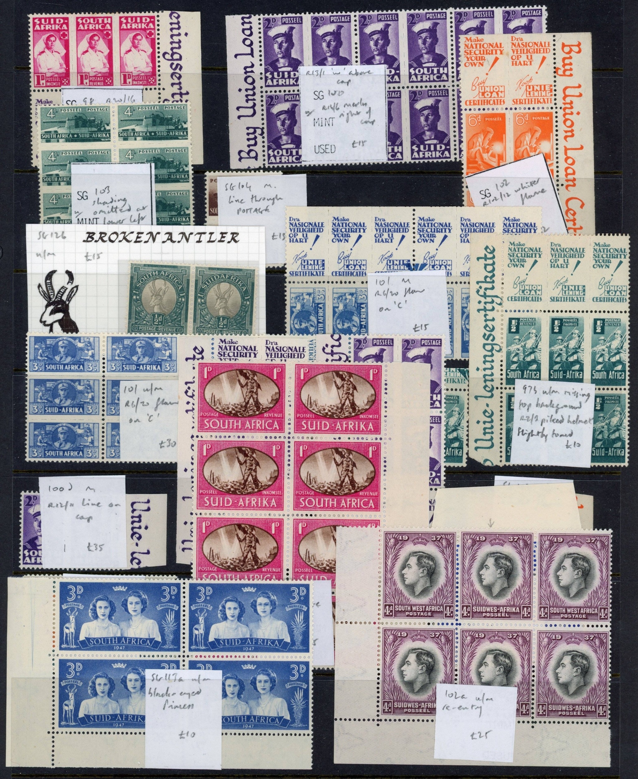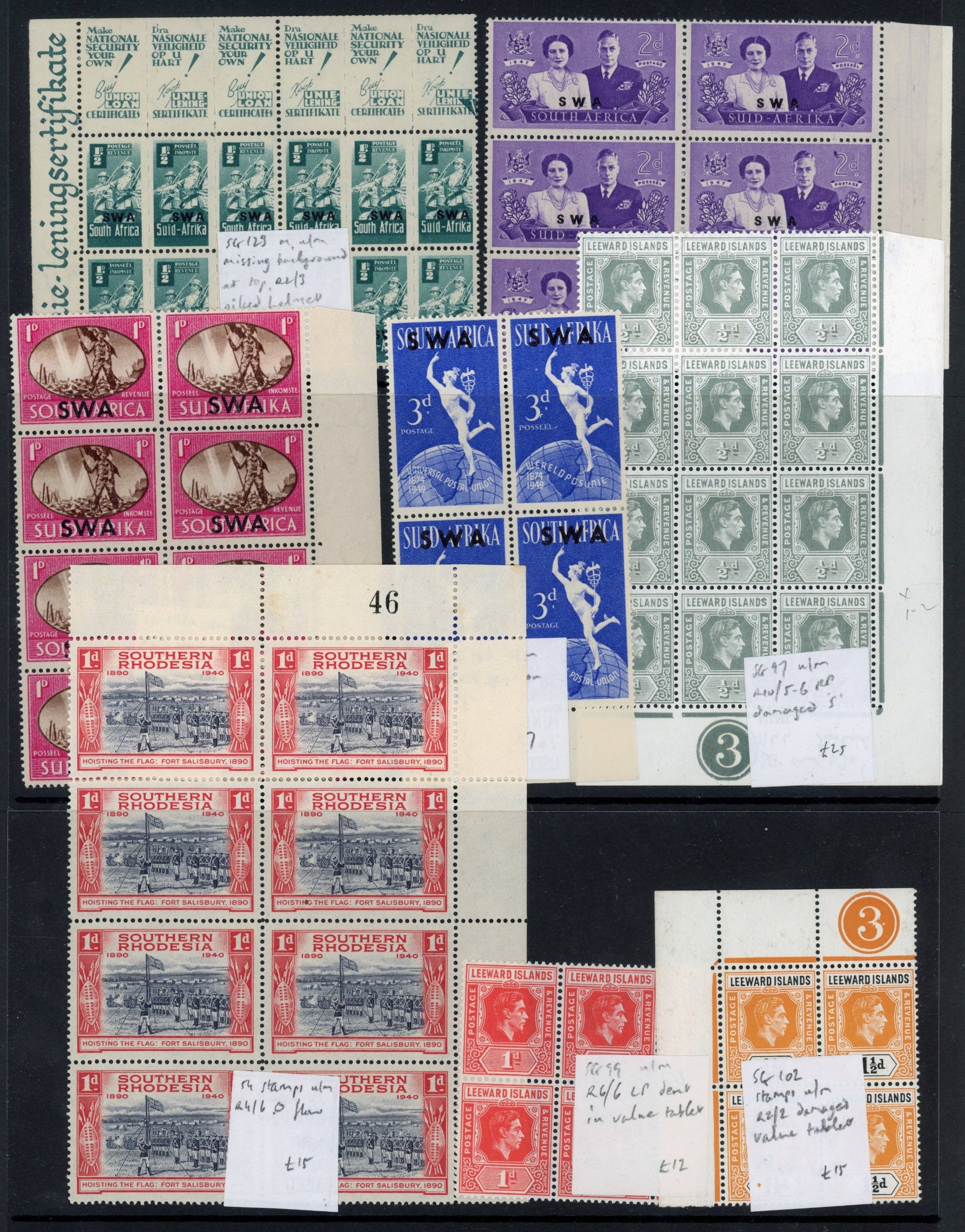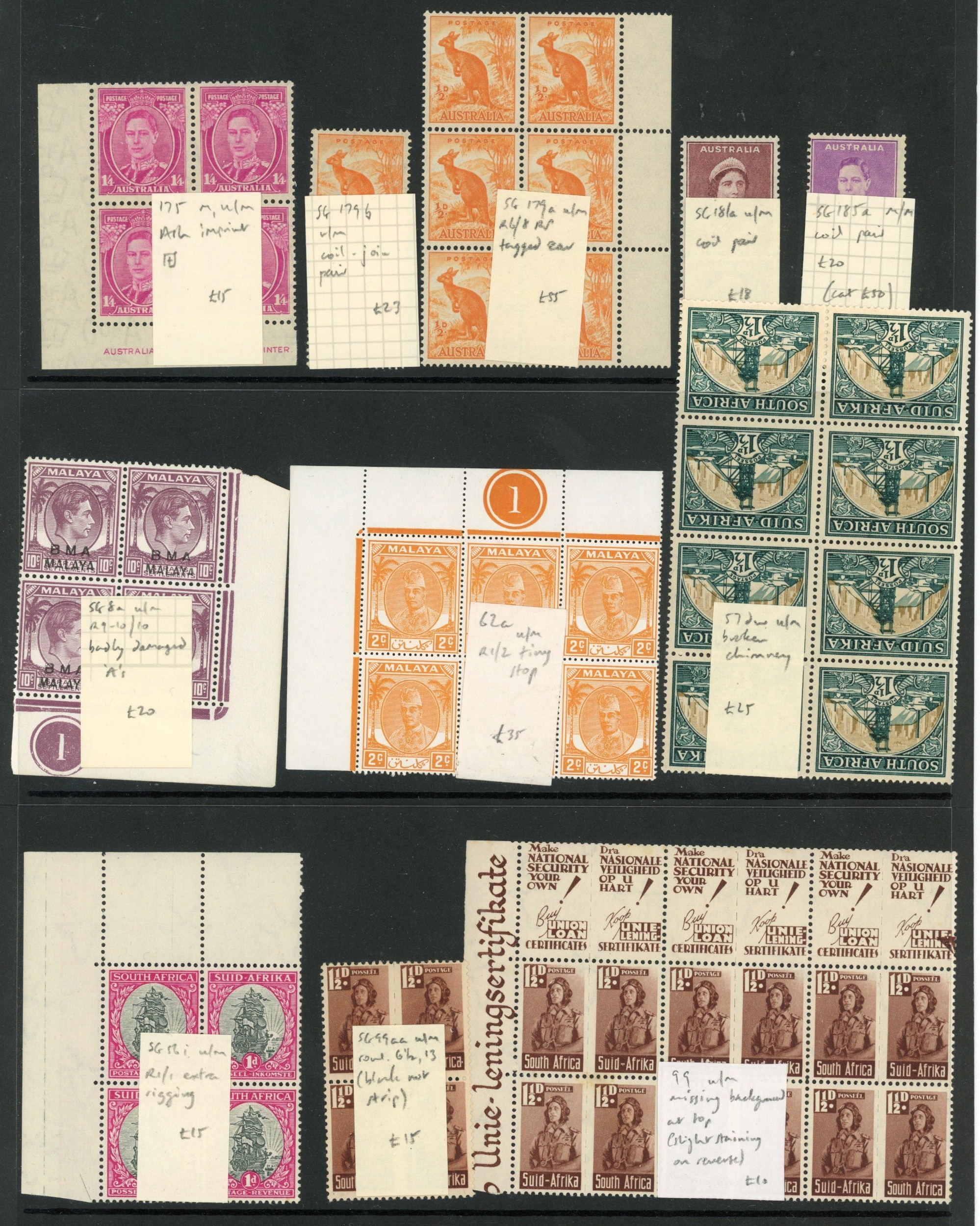 British Commonwealth KGVI mint selection of small plate varieties arranged on Hagner sheets with many in blocks, etc. Generally fine. (scores)