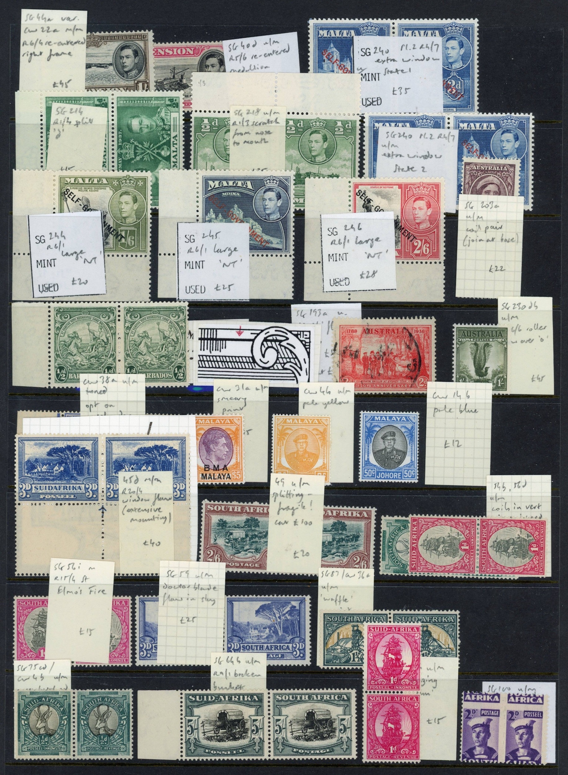 British Commonwealth KGVI mint selection of small plate varieties arranged on Hagner sheets