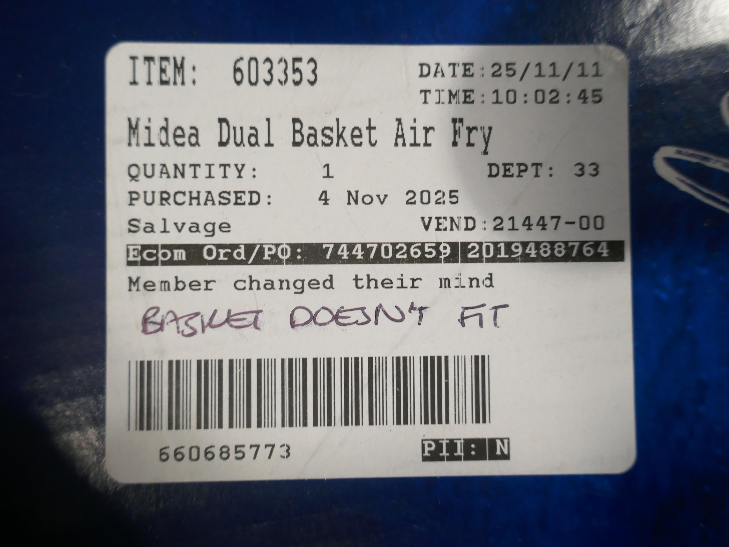 A Midea two zone air fryer (door requires attention), original RRP £116.66 + VAT (376-288) *This lot is subject to VAT