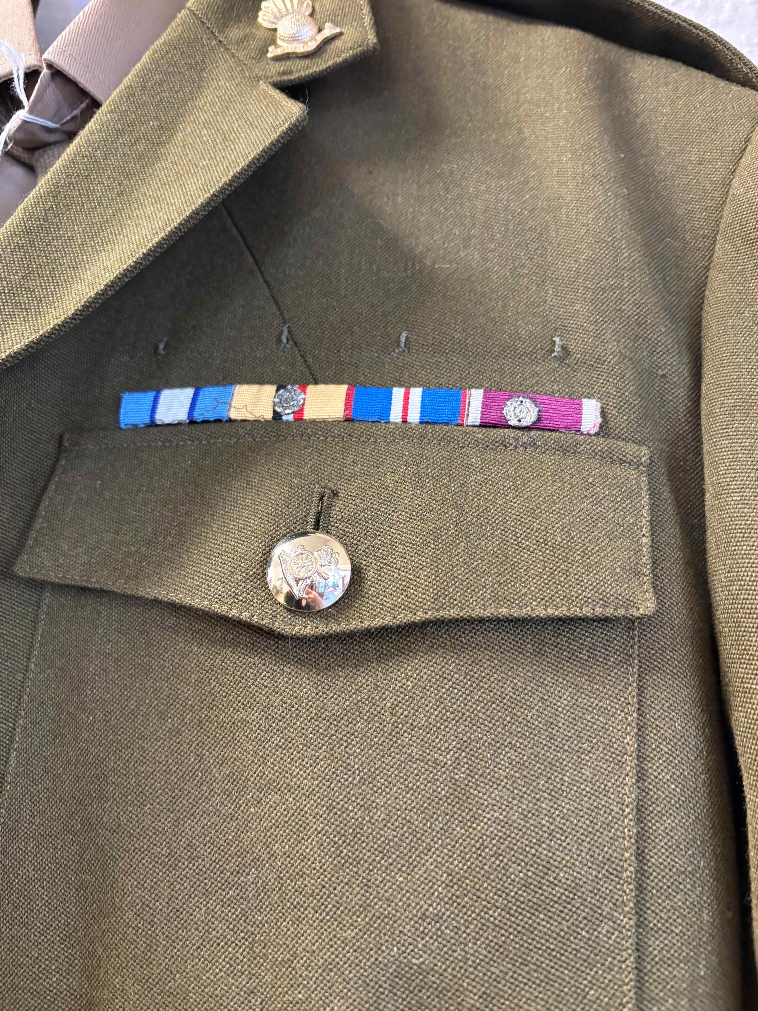 A Royal Artillery No.2 dress uniform including trousers, shirt and tie. Est. £20 - £30.
