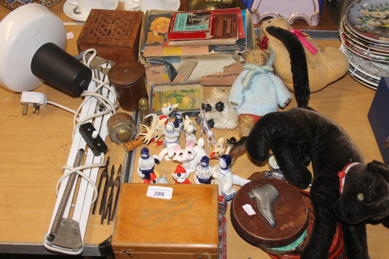 Vulcan childs sewing machine, vintage soft toys, small ceramic animal models, etc.