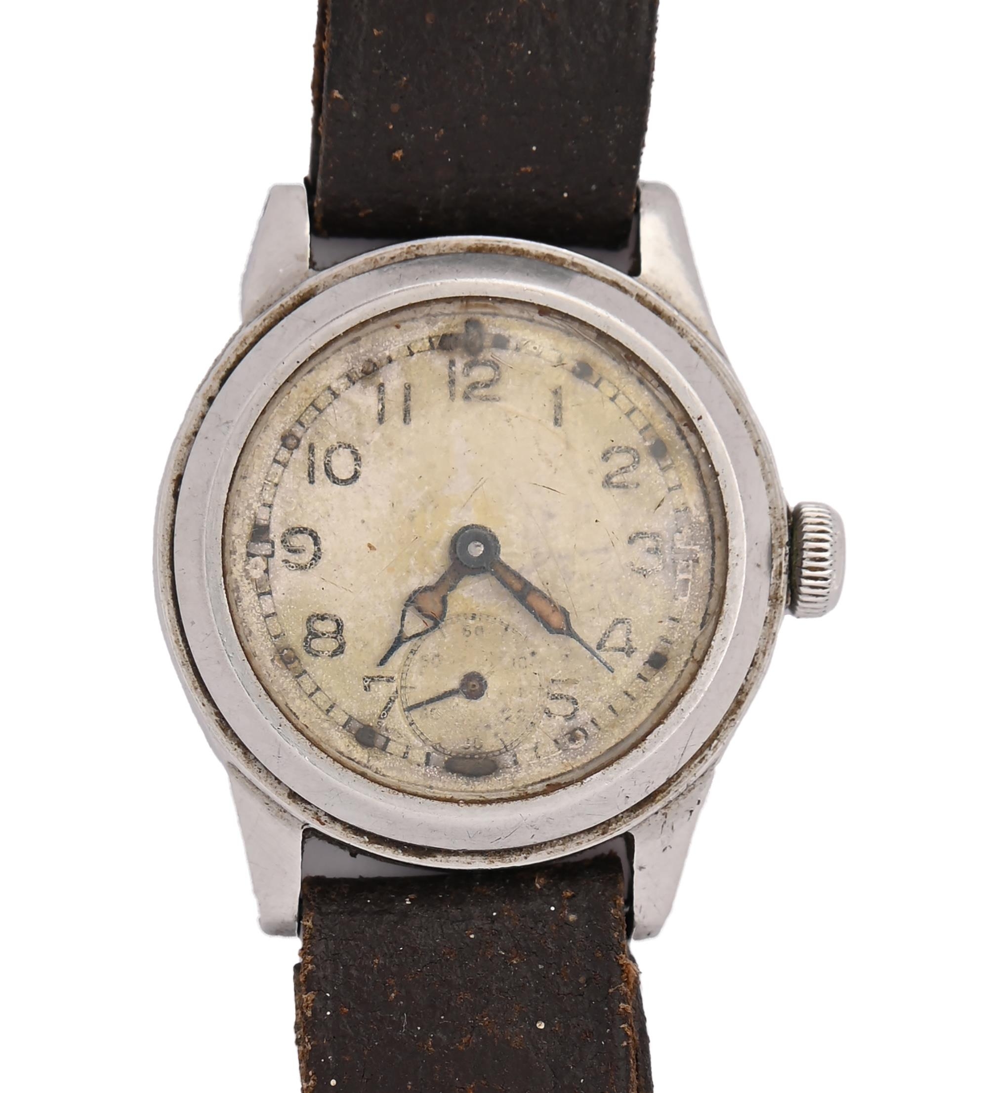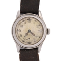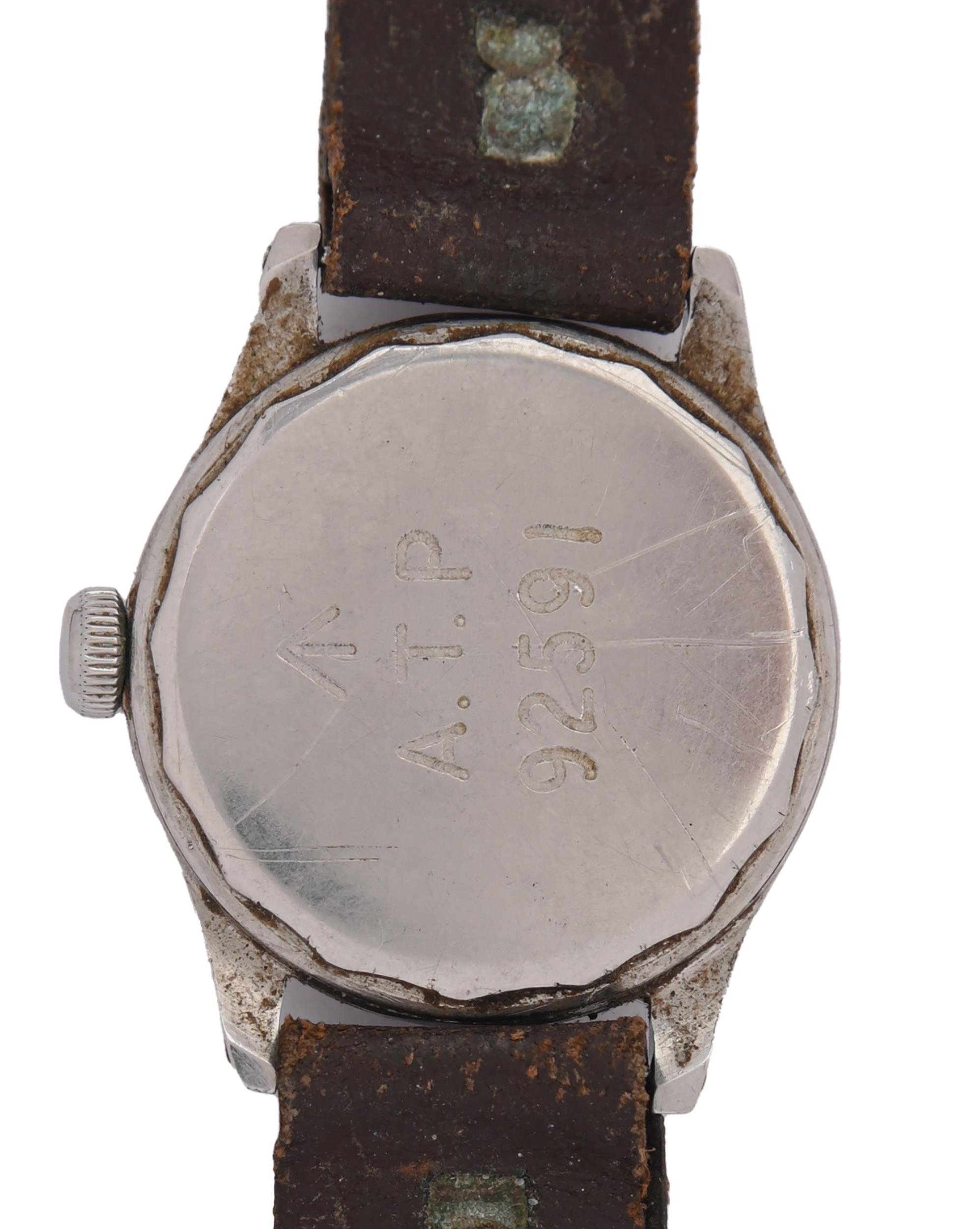 A WWII British Army Issue wristwatch, Enicar movement, 30mm diam, marked on case back Broad Arrow A. T. P 92591