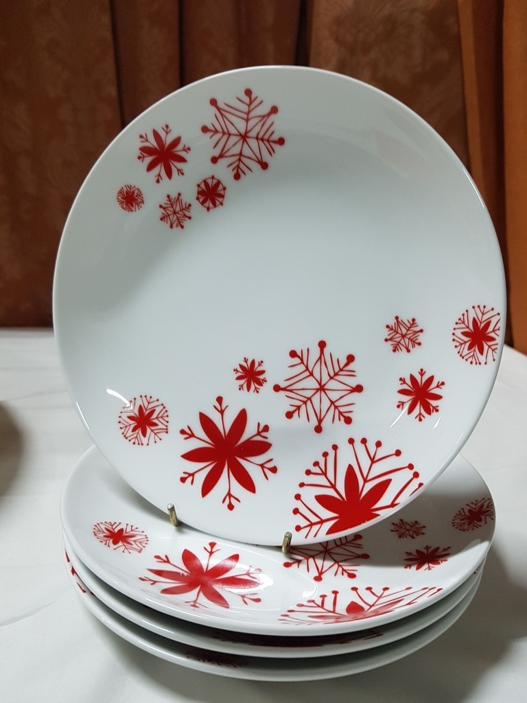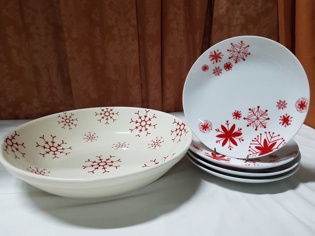 Christmas Design Tableware; Large Bowl (Approx. Ø: 32cm) and 4x Plates (Approx. Ø: 20cm). (5)