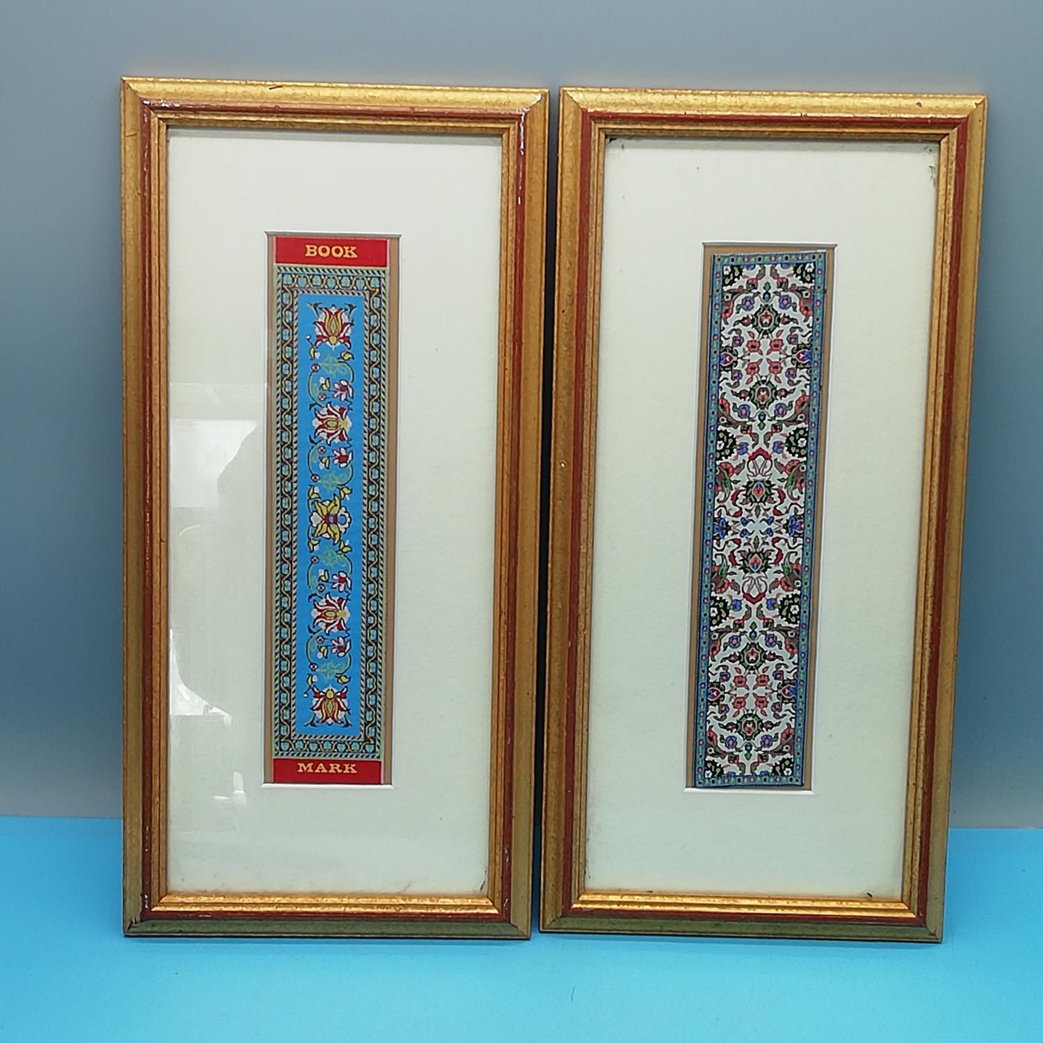 Framed and Mounted Chinese Silk Bookmarks (2). 35cm x 18cm.