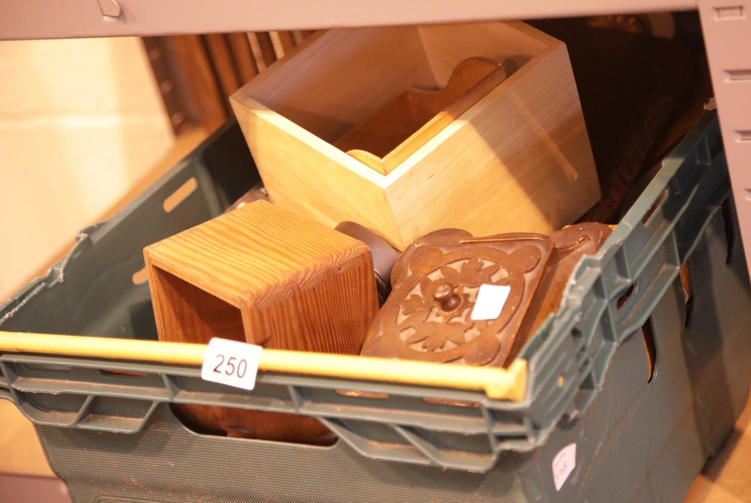 Box of carved and inlaid trays, statues etc. This lot is not available for in-house P&P.