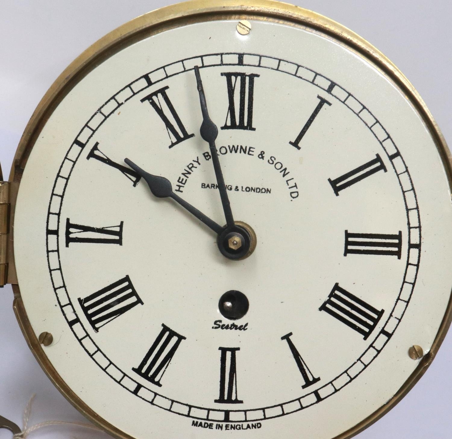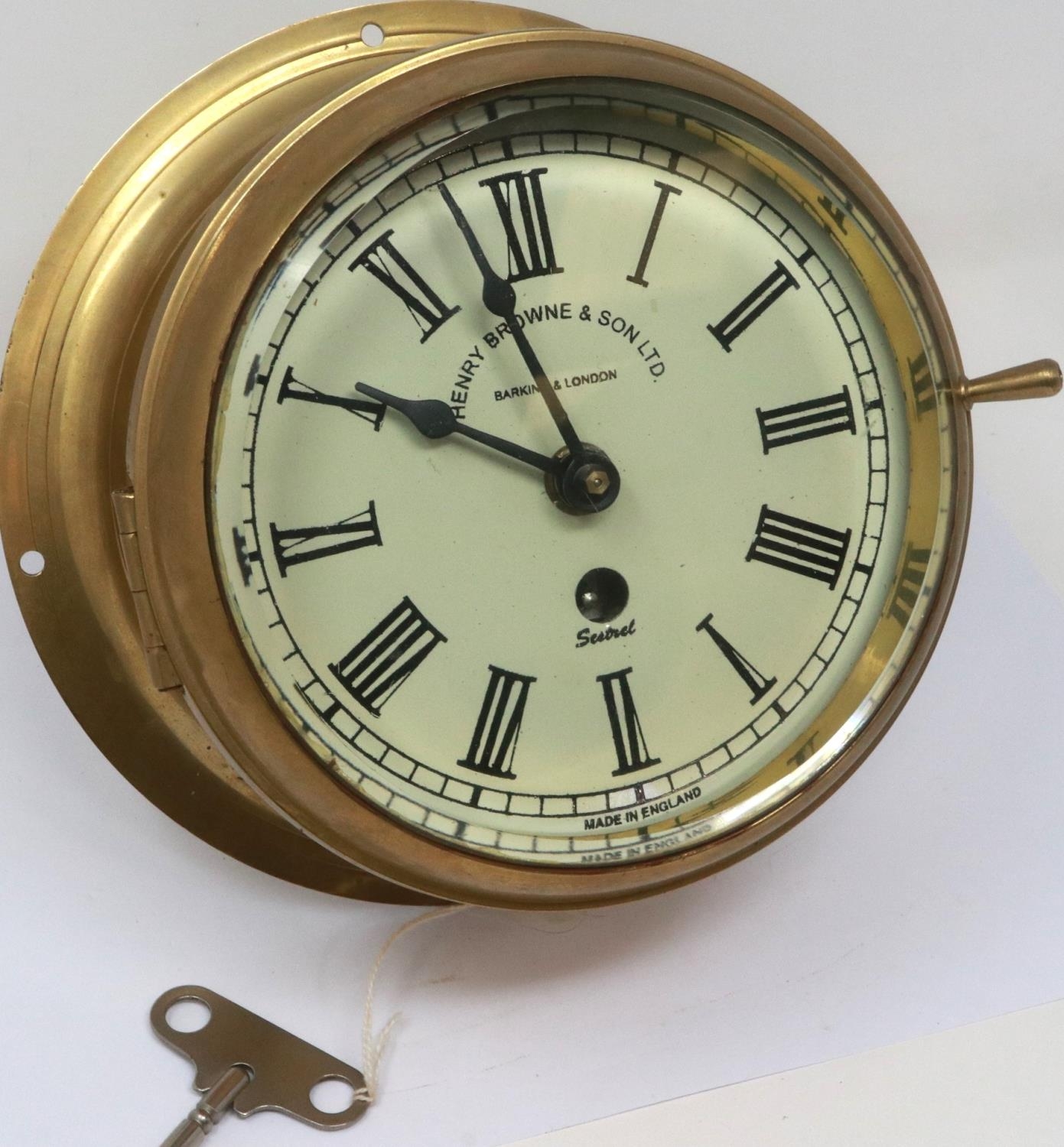 Smiths astral brass marine clock with key, working at lotting. P&P Group 2 (£18+VAT for the first lot and £3+VAT for subsequent lots)