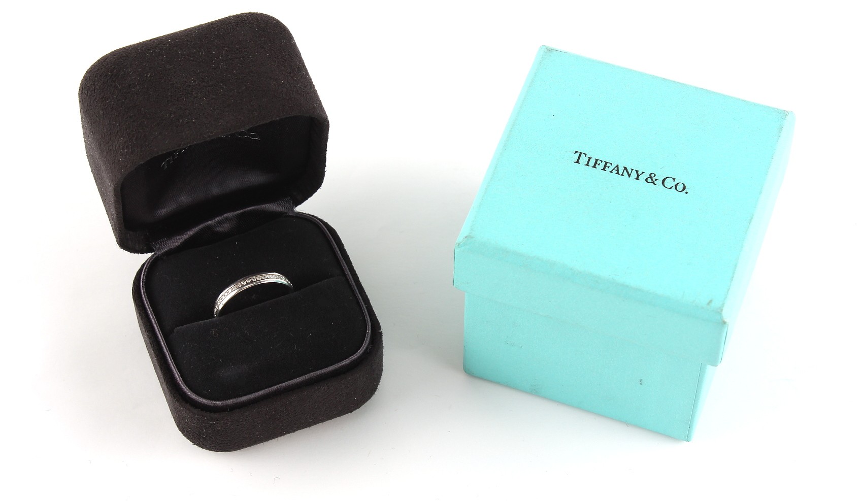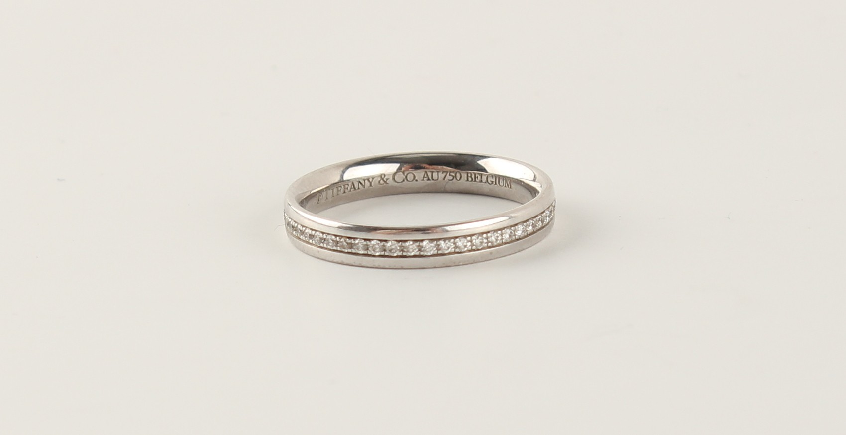 Tiffany & Co. - an 18ct white gold diamond eternity ring, size K, in original box & outer box.