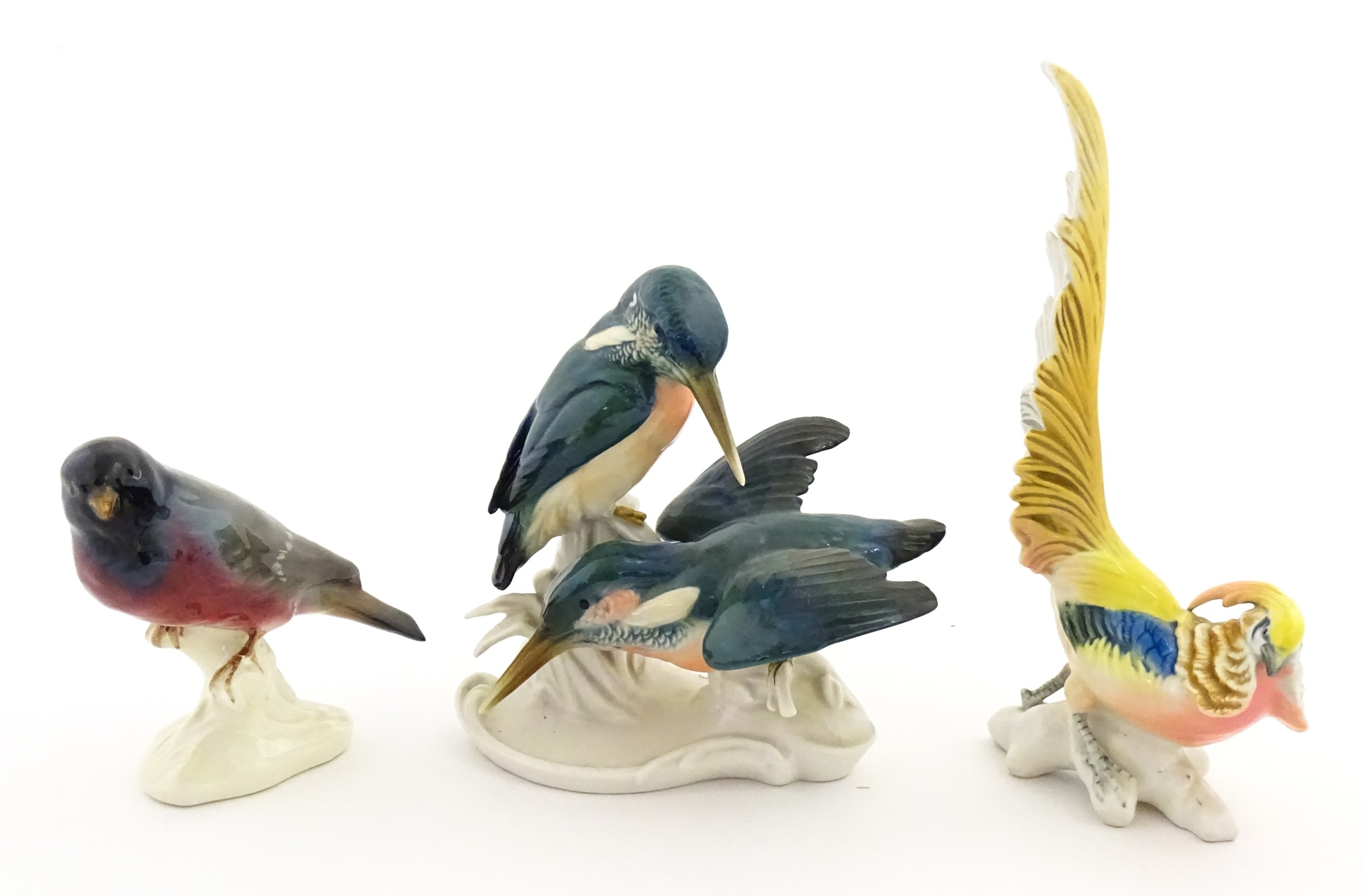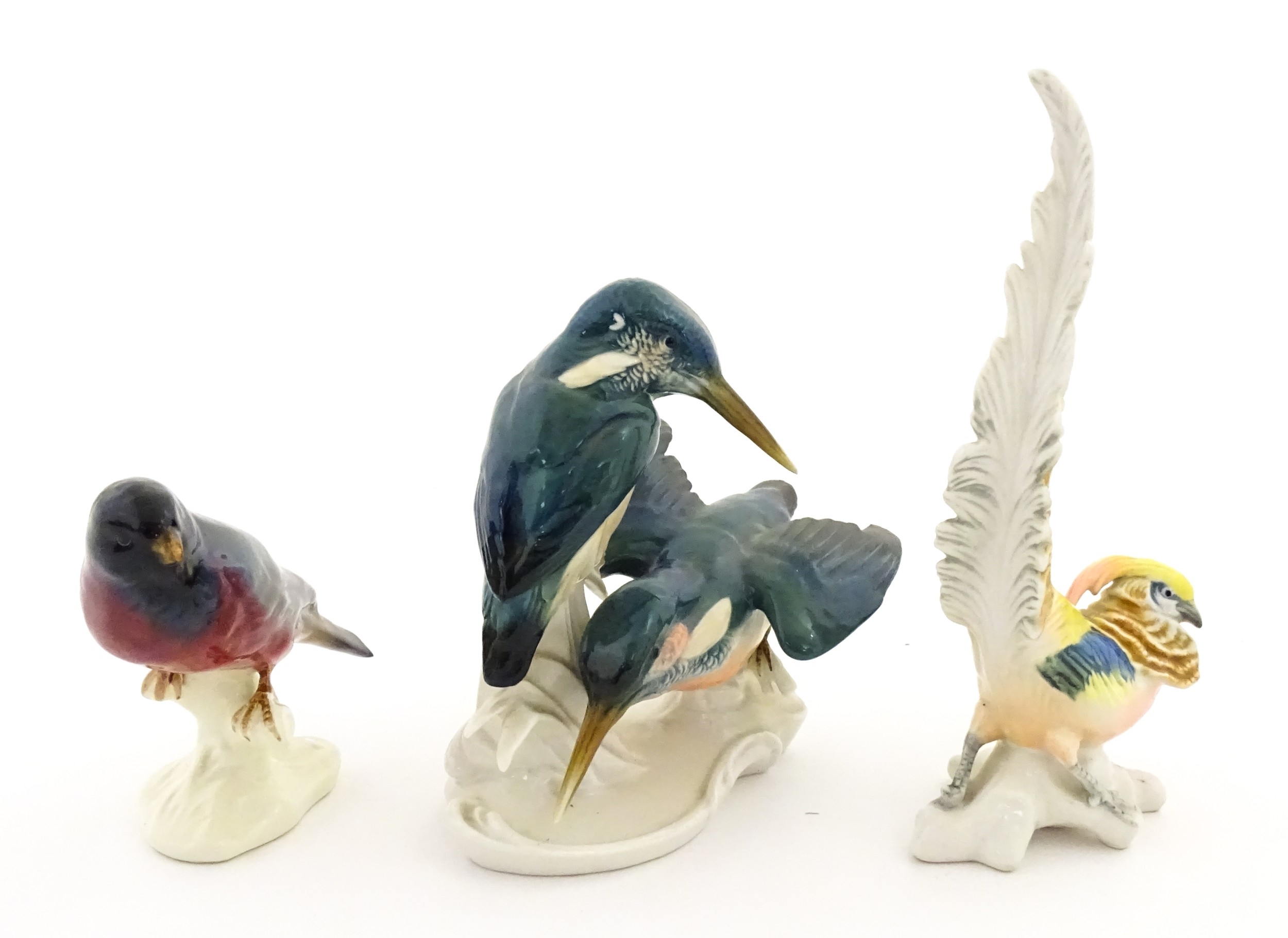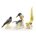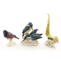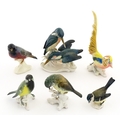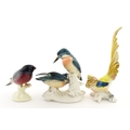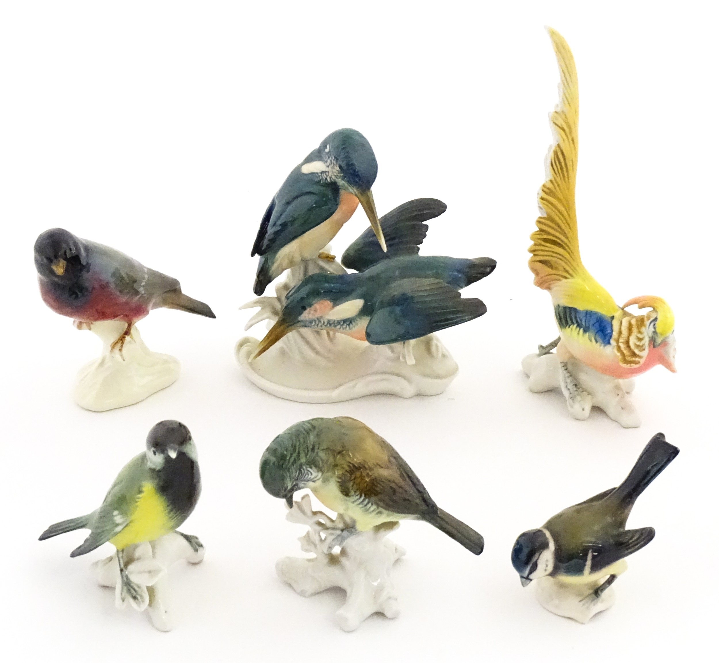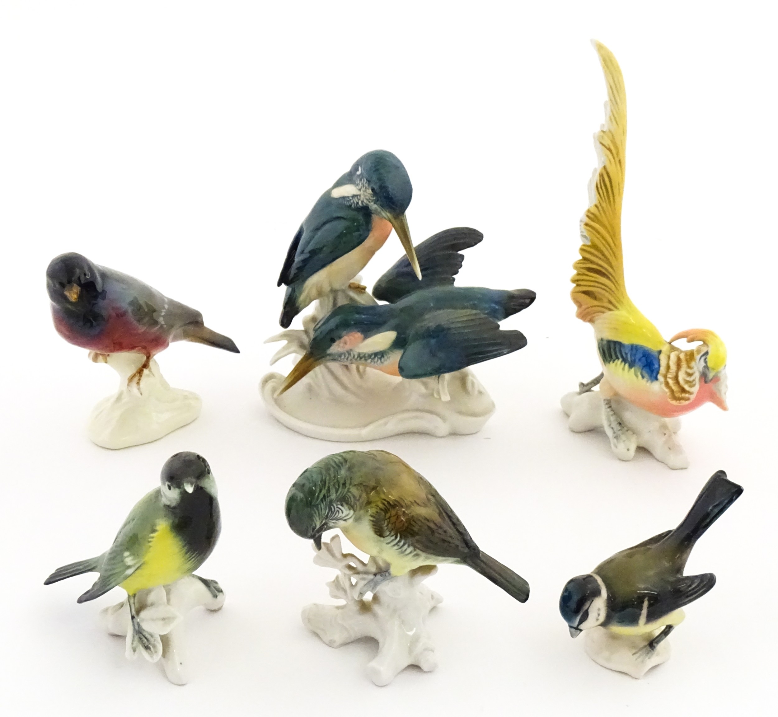 Four Karl Ens porcelain models of birds to include a golden pheasant, great tit, etc. Together with two German models of birds. Largest approx. 8 1/4" high (6)