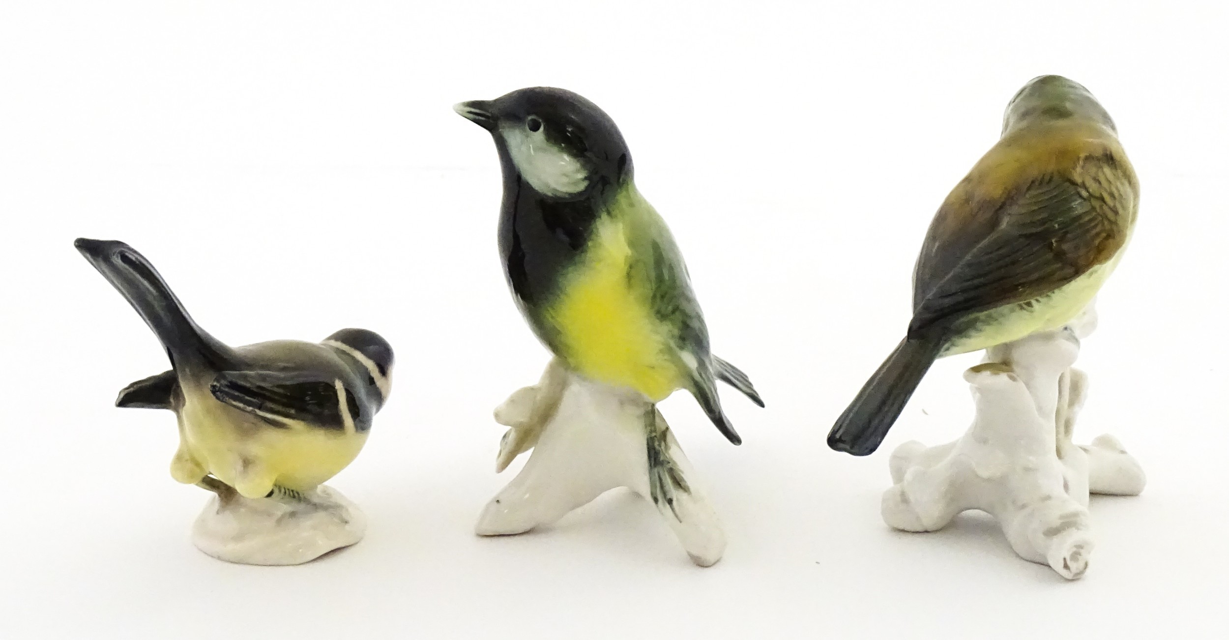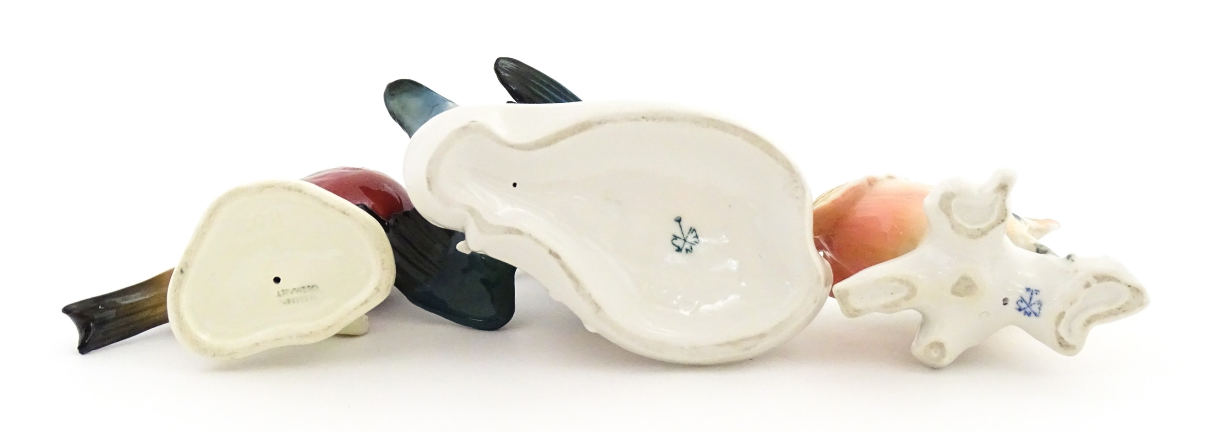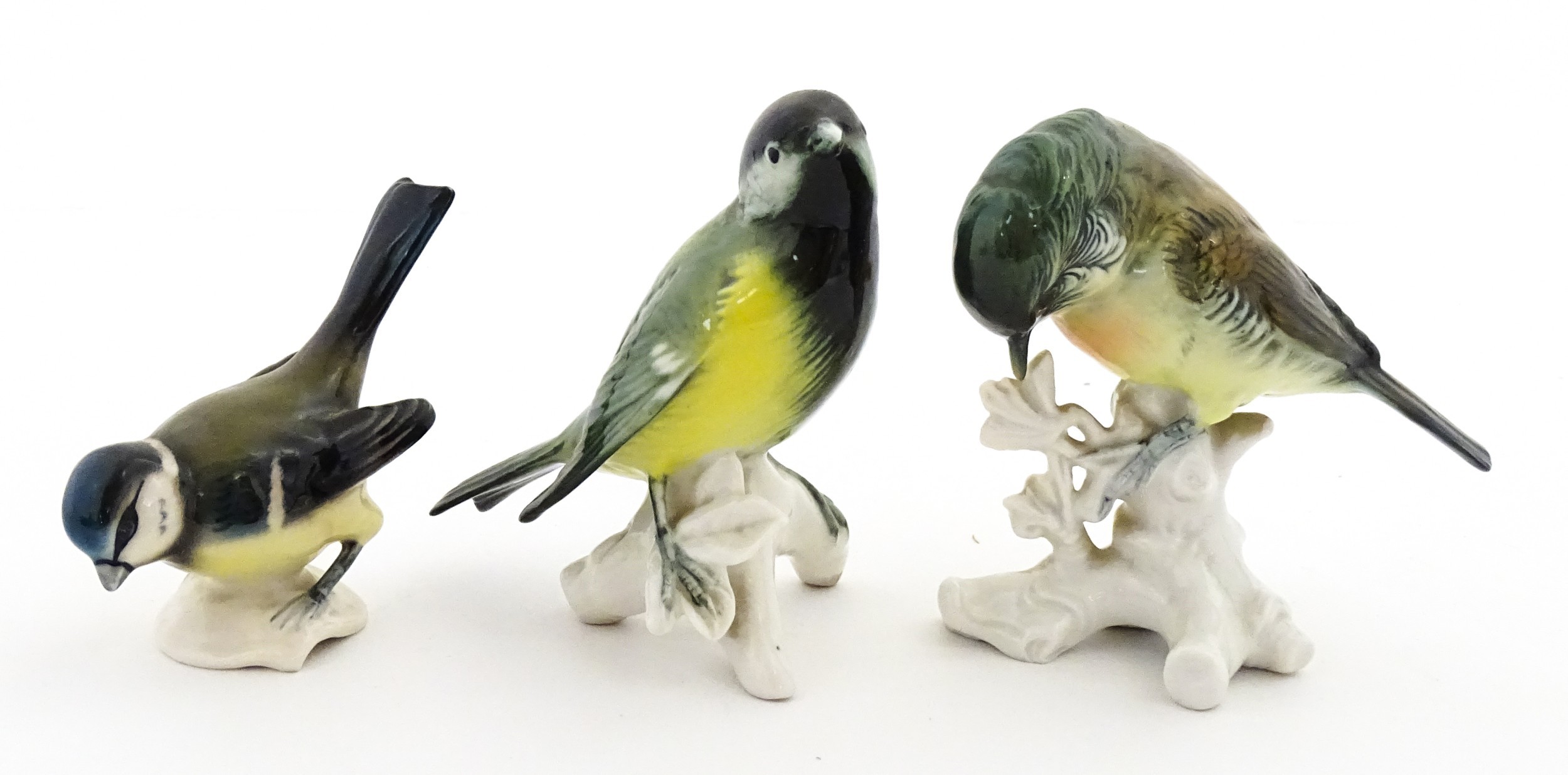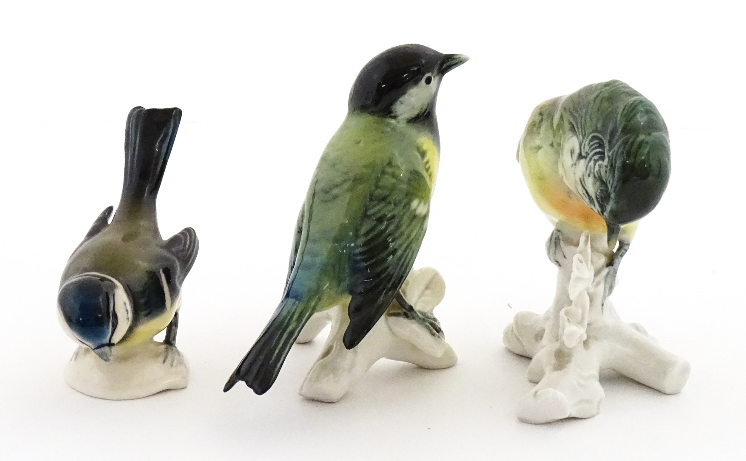 Four Karl Ens porcelain models of birds to include a golden pheasant, great tit, etc. Together with two German models of birds. Largest approx. 8 1/4" high (6)