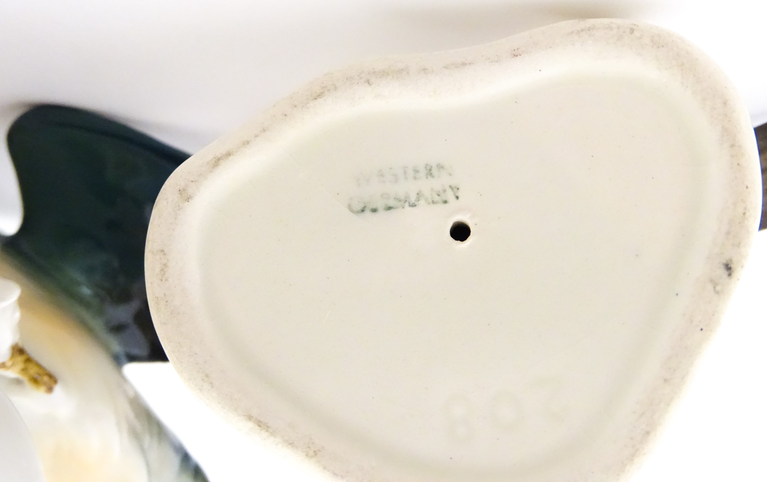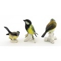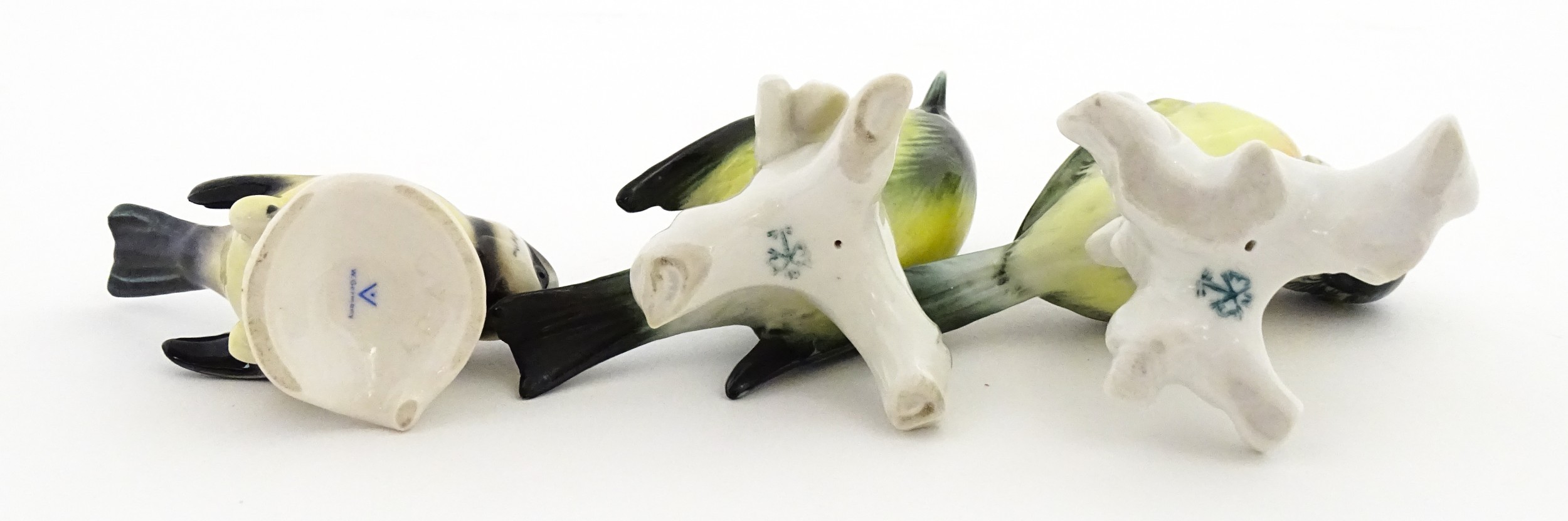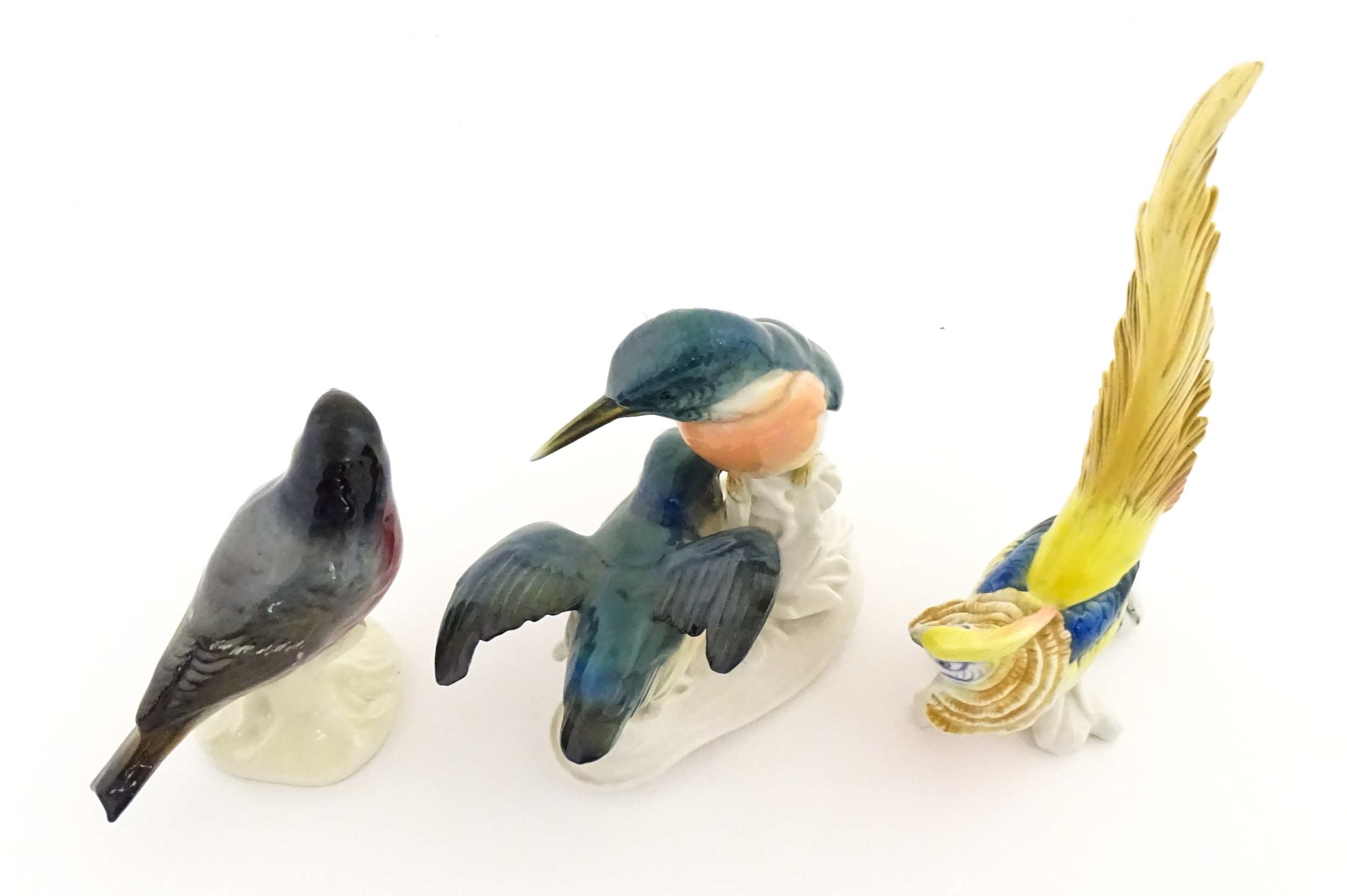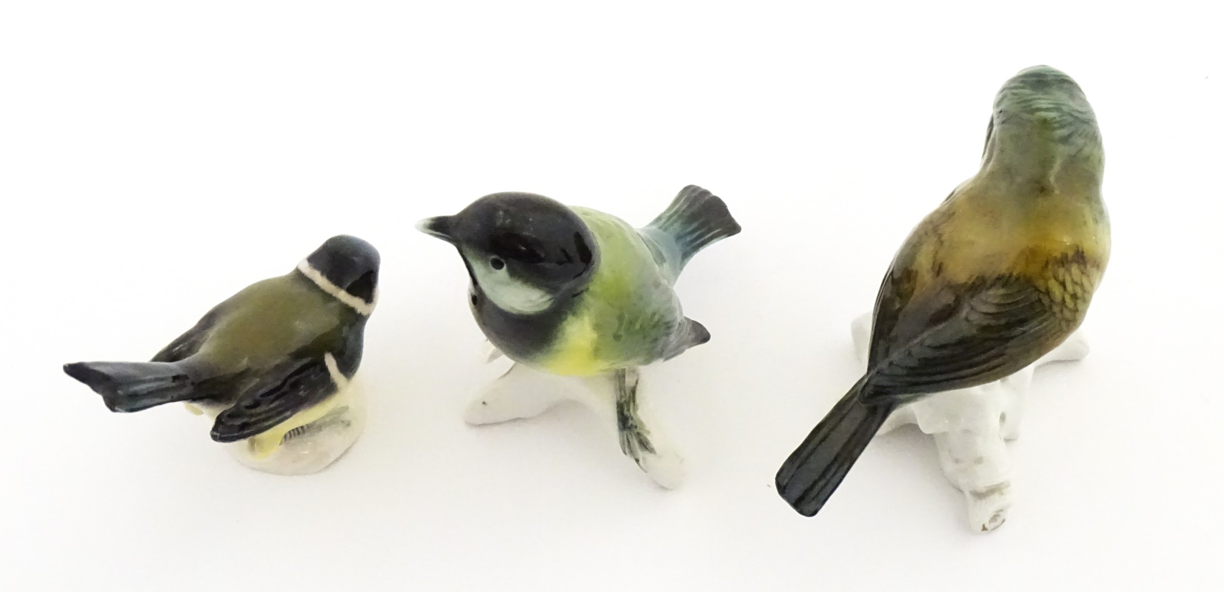 Four Karl Ens porcelain models of birds to include a golden pheasant, great tit, etc. Together with two German models of birds. Largest approx. 8 1/4" high (6)