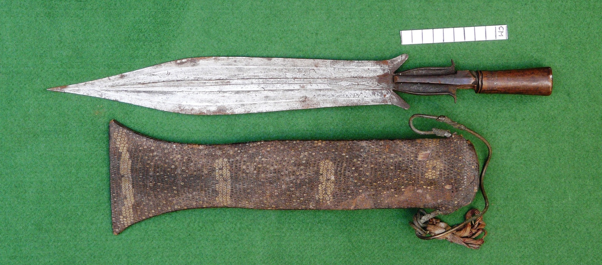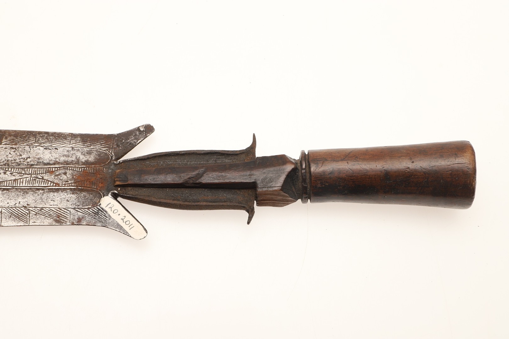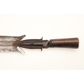 Some loss of wooden blade mount. light surface rust to the blade. Collection number to both parts.