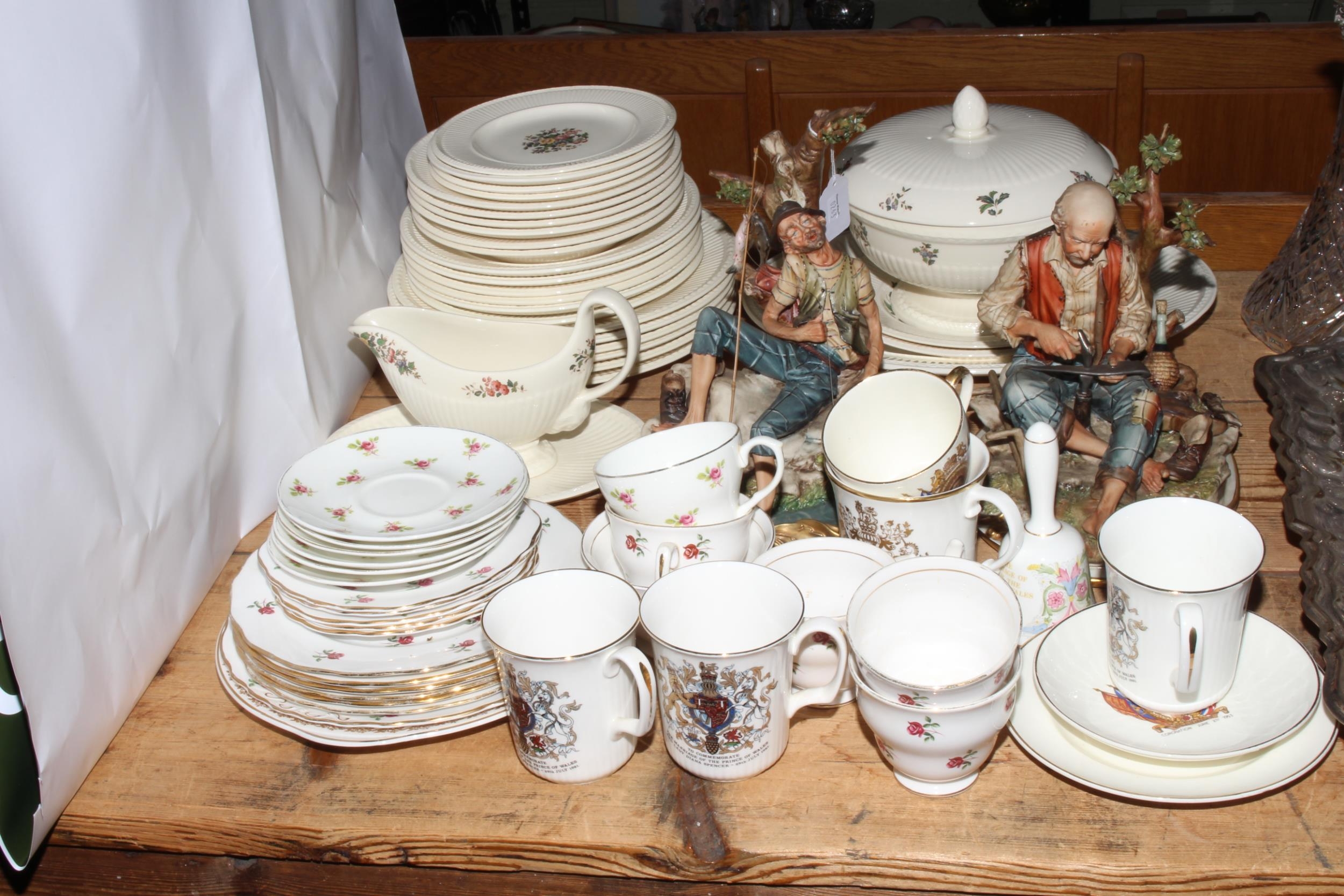Wedgwood 'Conway' part dinner service, two Capo di Monte figures, tea china and commemoratives.