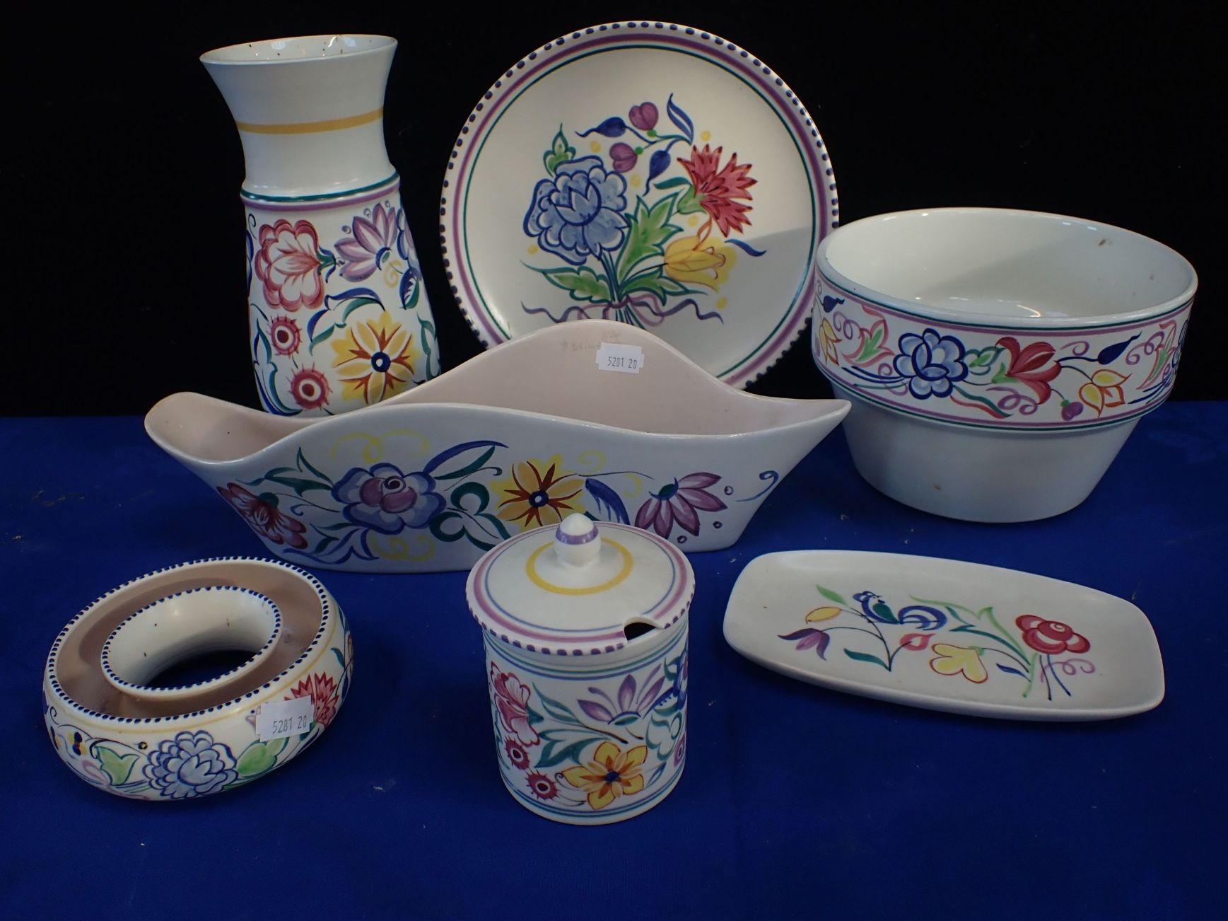 A GROUP OF POOLE POTTERY traditionally painted (7)