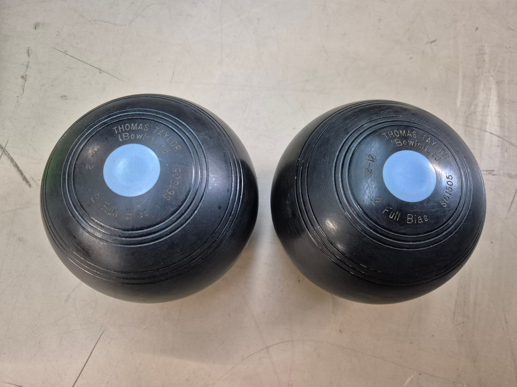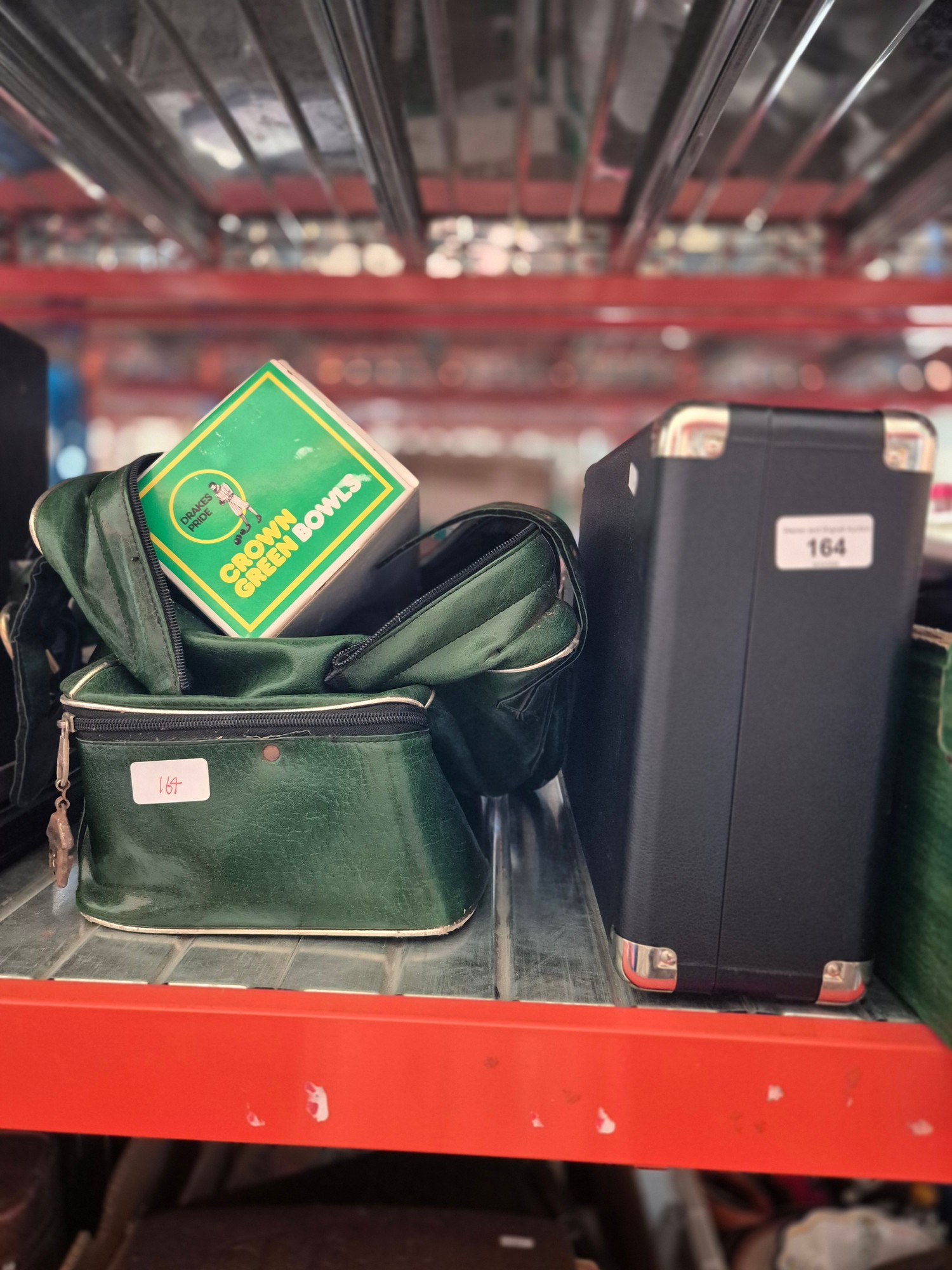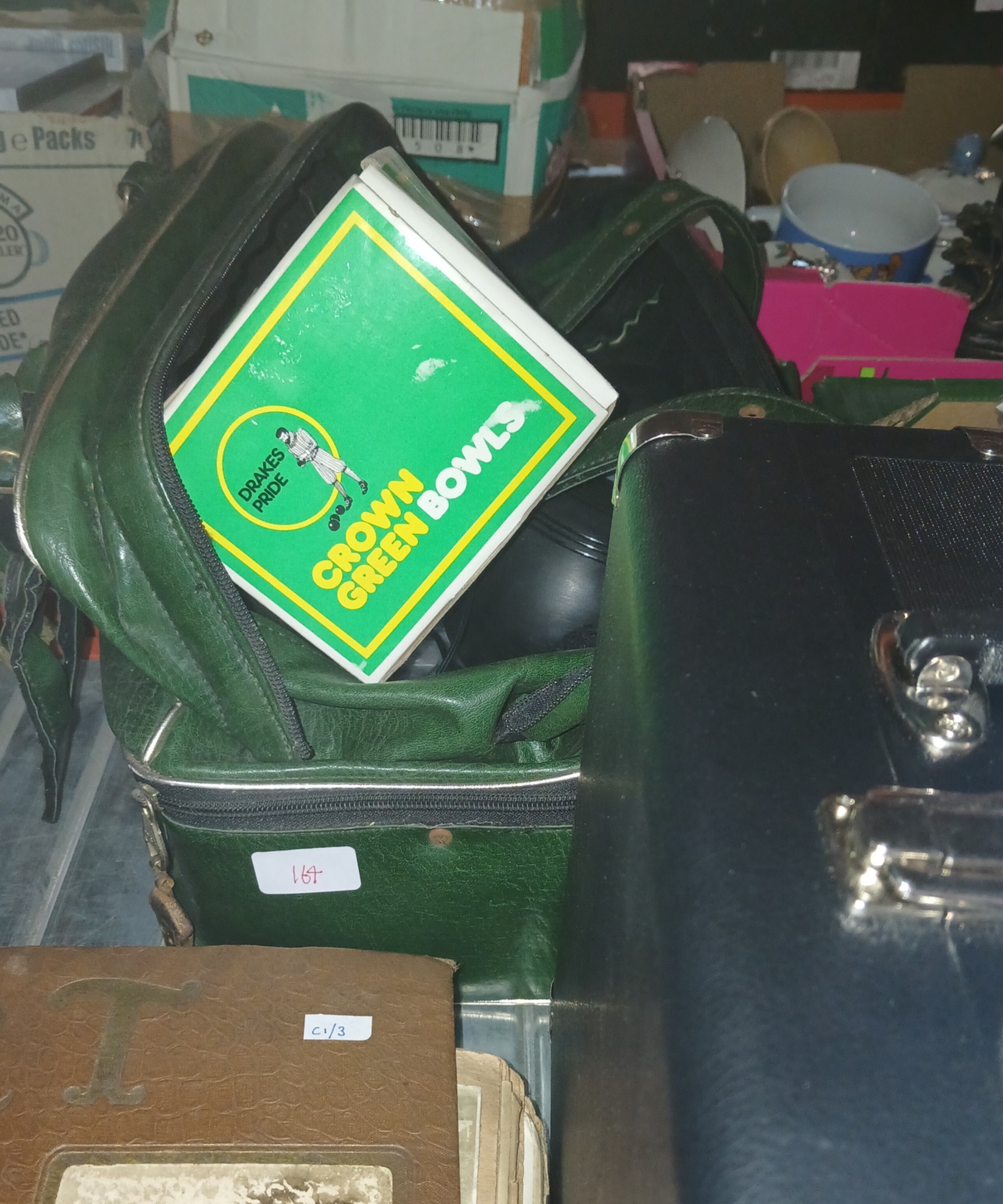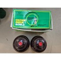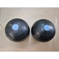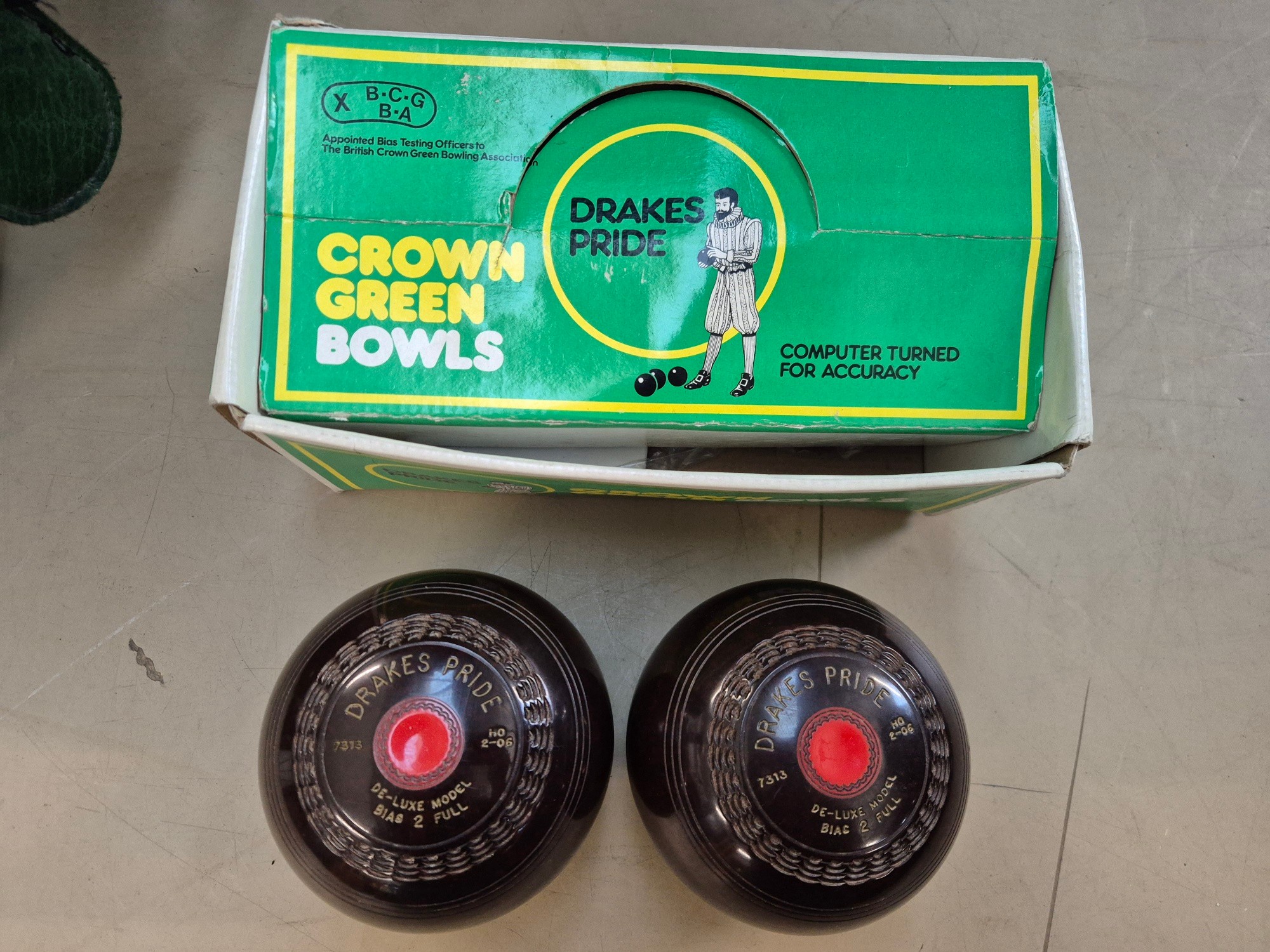 A Bush portable record player, a pair of Drake's Pride crown green bowls, and a pair of Thomas Taylor bowls, both sets 2 Full bias