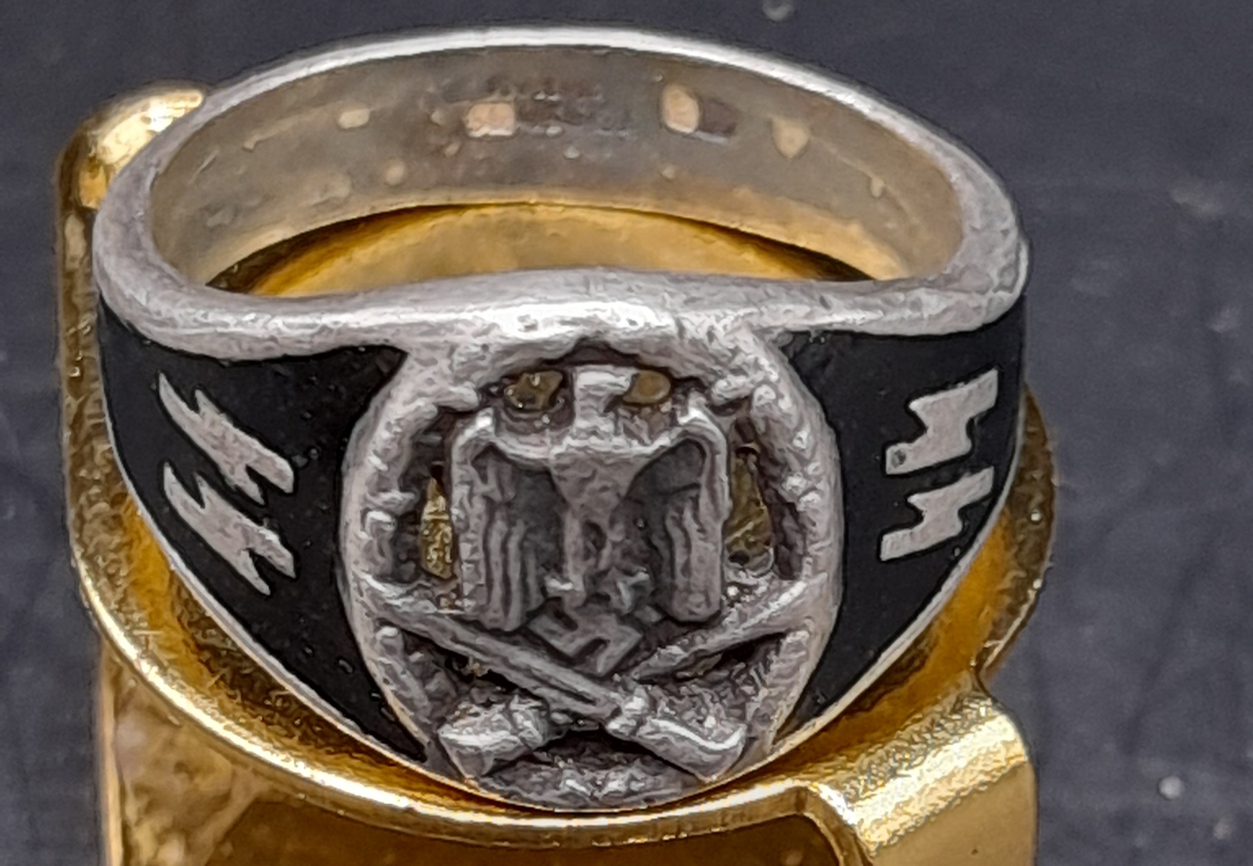 SS Insignia ring in white metal